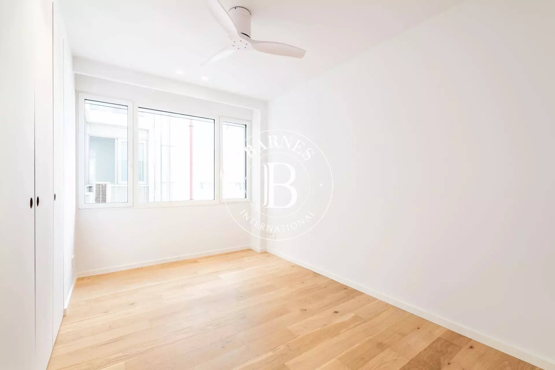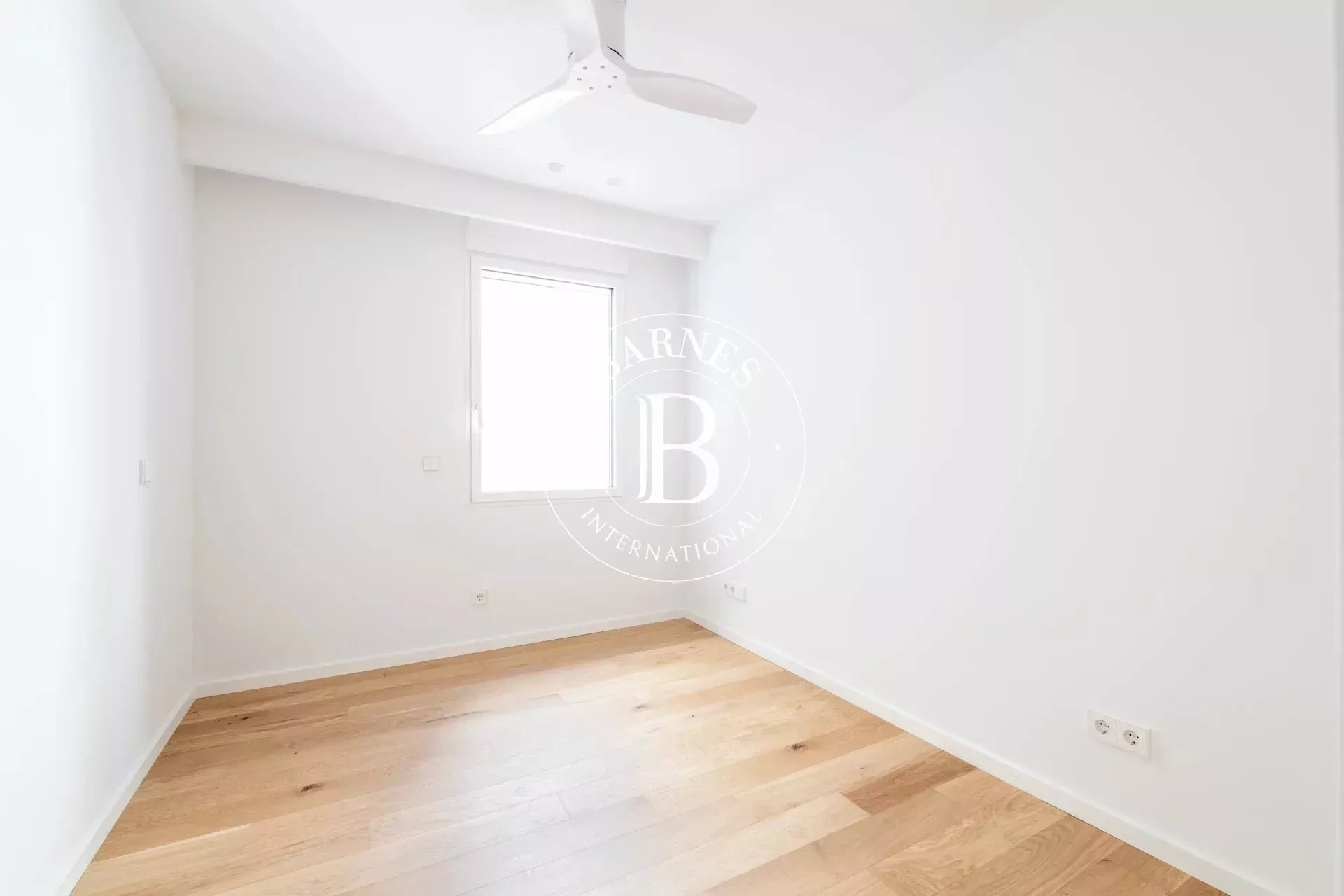 Los otros dos dormitorios, igualmente luminosos, se orientan hacia un amplio patio interior y comparten un espacioso baño con ducha, además de un aseo independiente. La vivienda se completa con una zona de lavandería, baño de cortesía y numerosos armarios empotrados y de ropa blanca distribuidos en los pasillos. La propiedad incluye plaza de garaje en finca y servicio de portería.