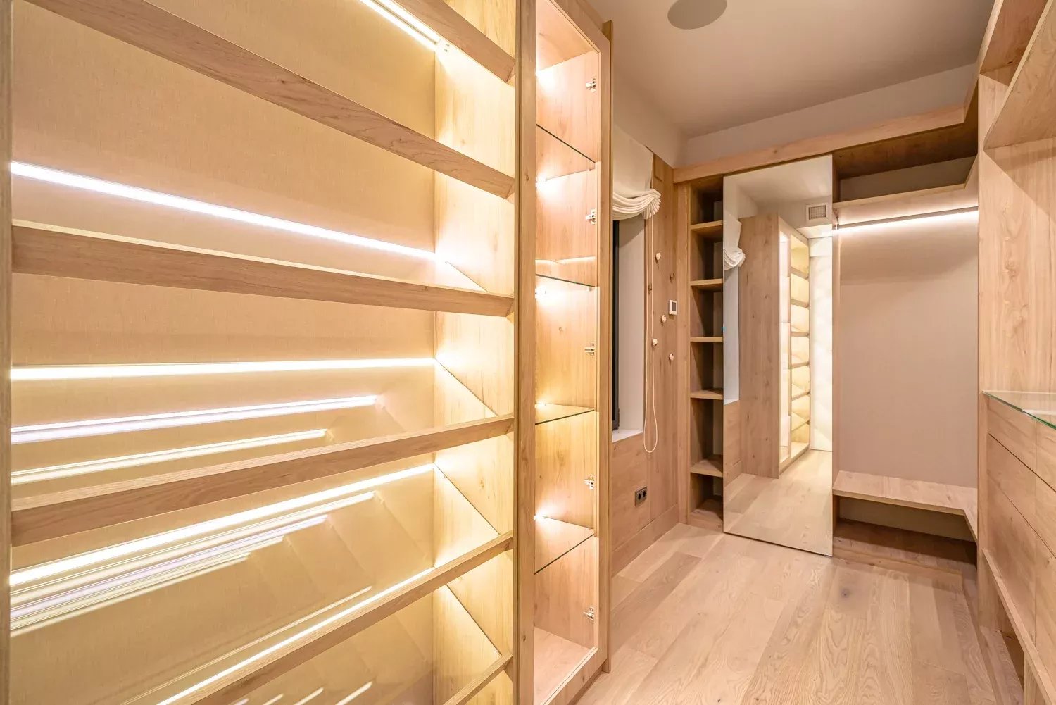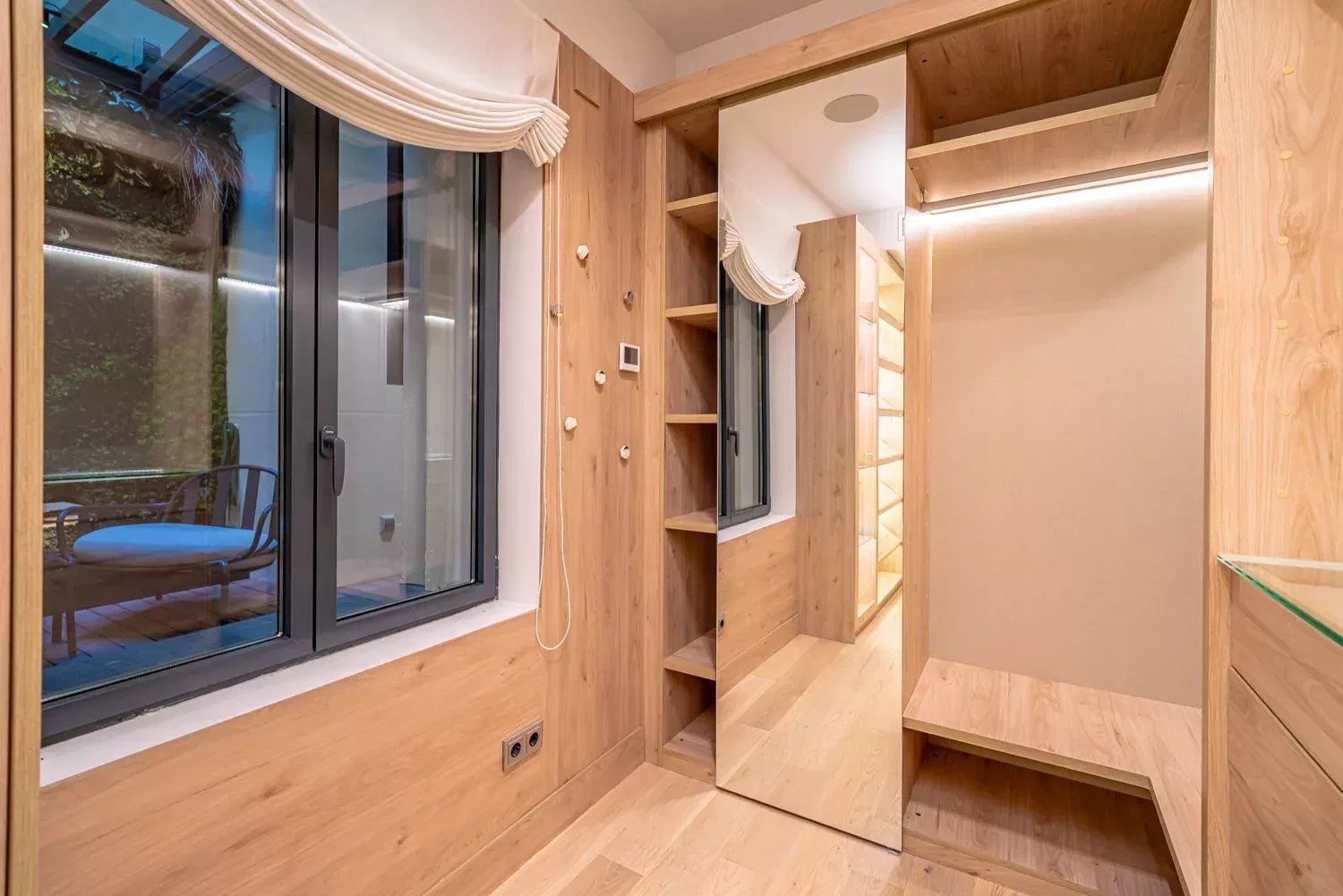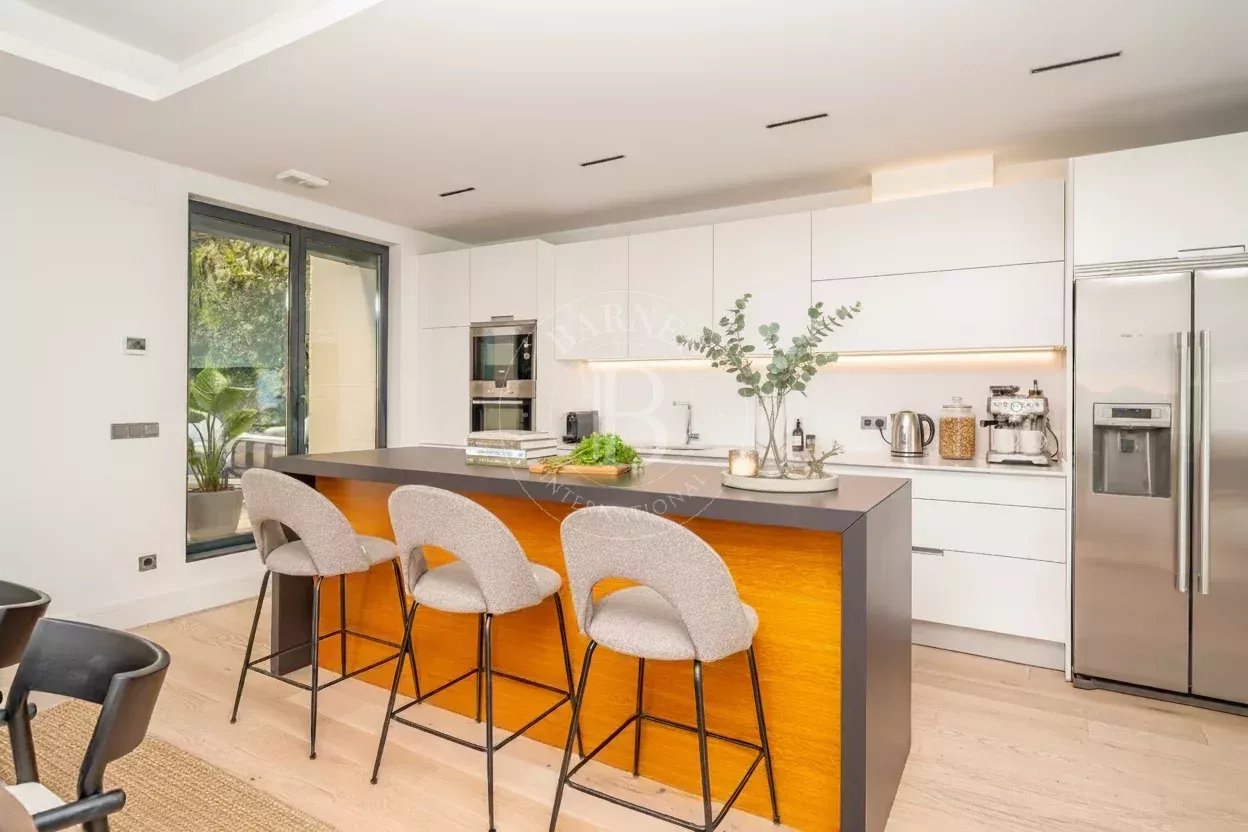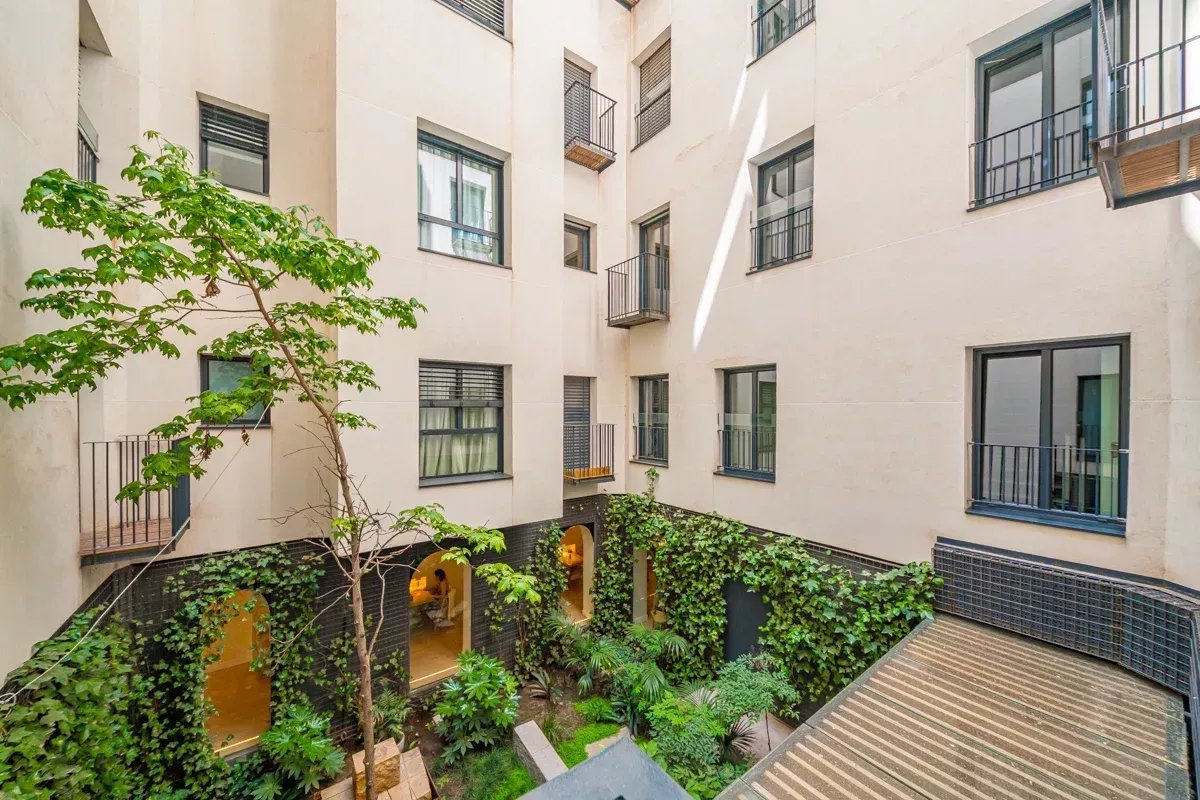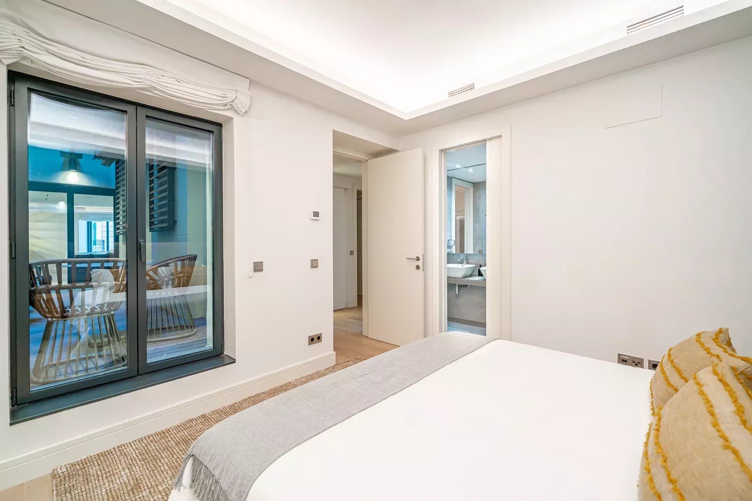 El dormitorio principal dispone de un amplio vestidor, baño en suite y un pequeño balcón con vistas al jardín interior. Actualmente cuenta con dos dormitorios, aunque existe la posibilidad de ampliarlo a tres, manteniendo el equilibrio entre funcionalidad y diseño. Además, dispone de un aseo de cortesía para invitados.
