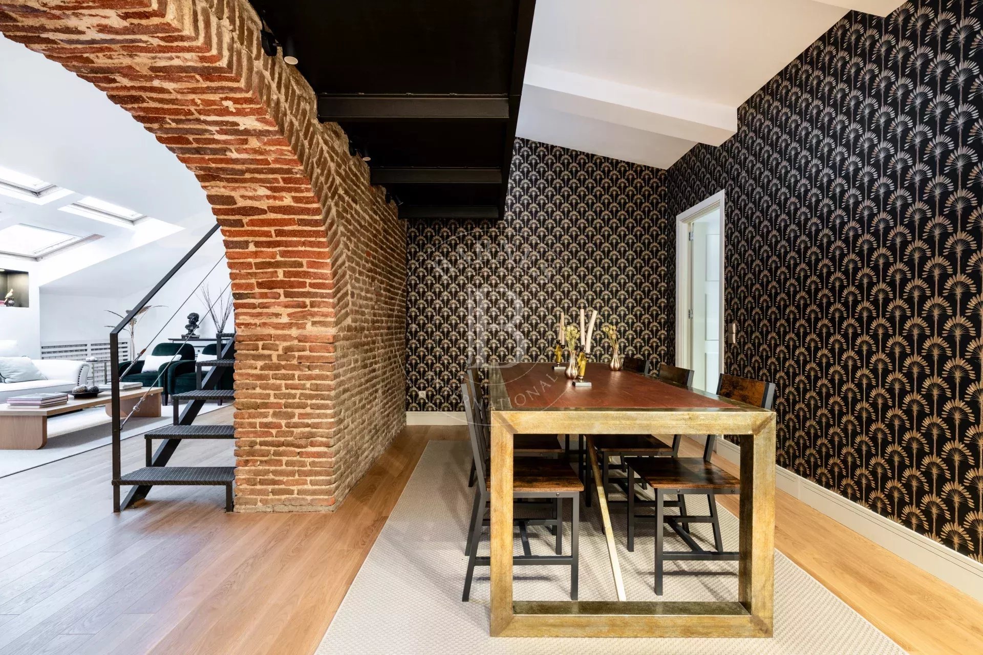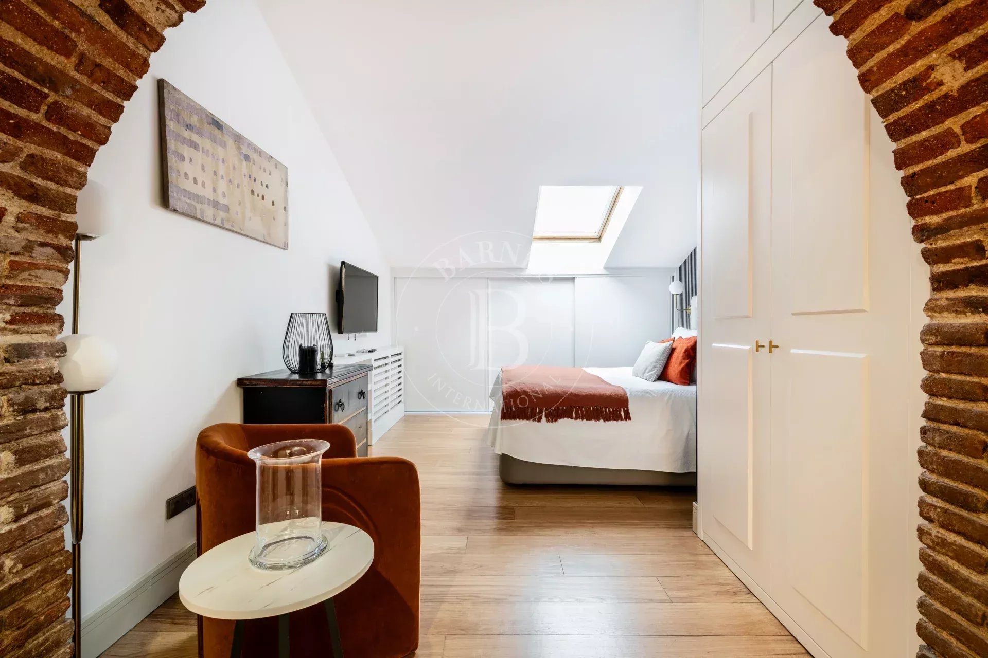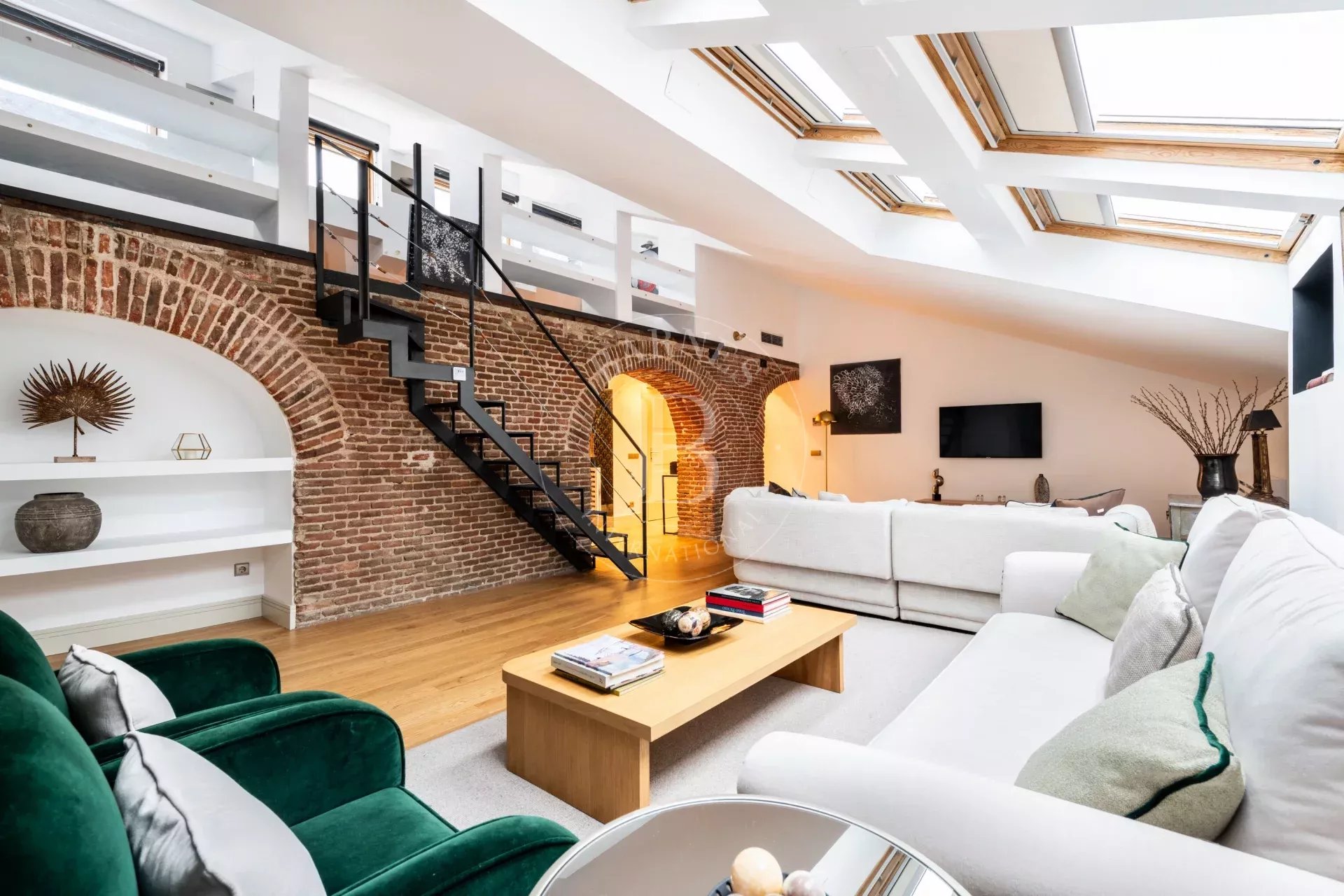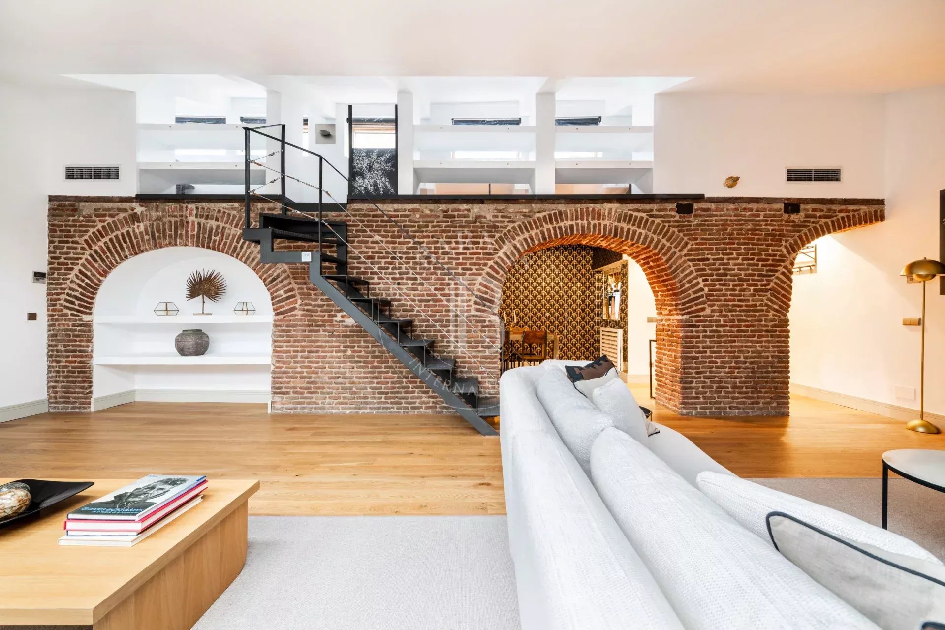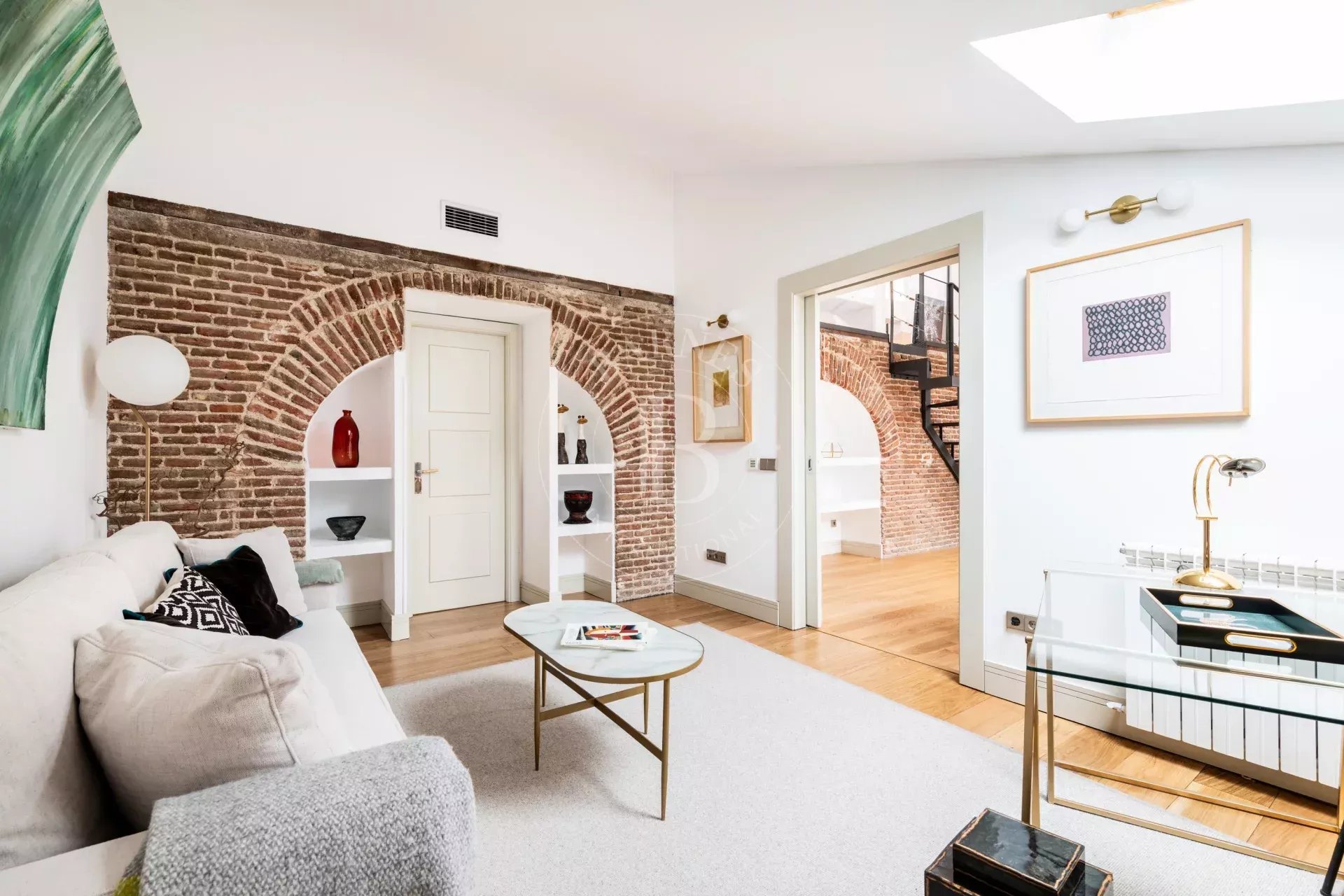 La vivienda destaca por su marcado estilo NY, con arcos estructurales de exposed brick que aportan personalidad y autenticidad a los espacios. El acceso es cómodo y directo mediante ascensor, reforzando la privacidad y el carácter exclusivo del inmueble.