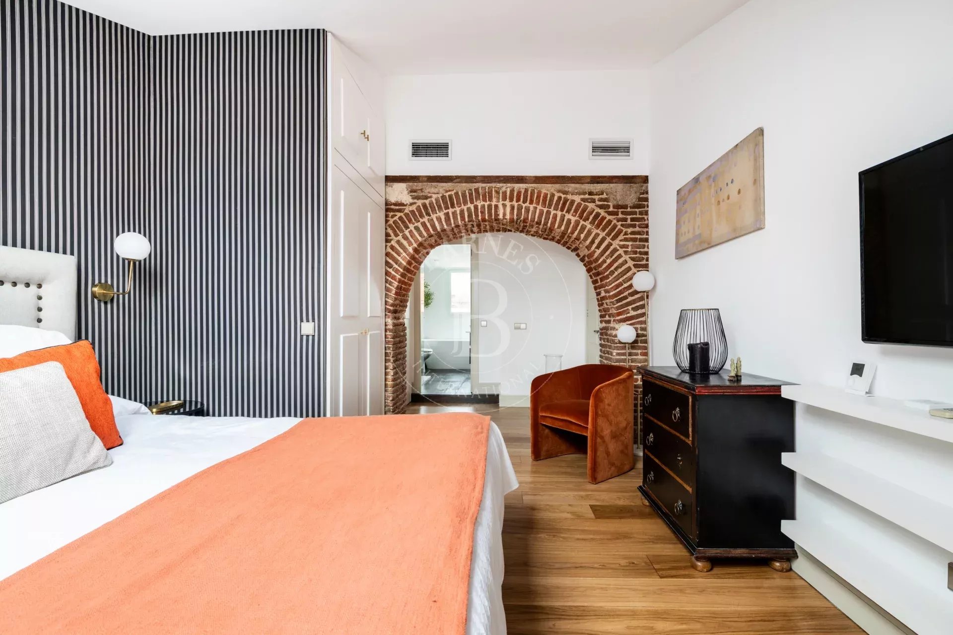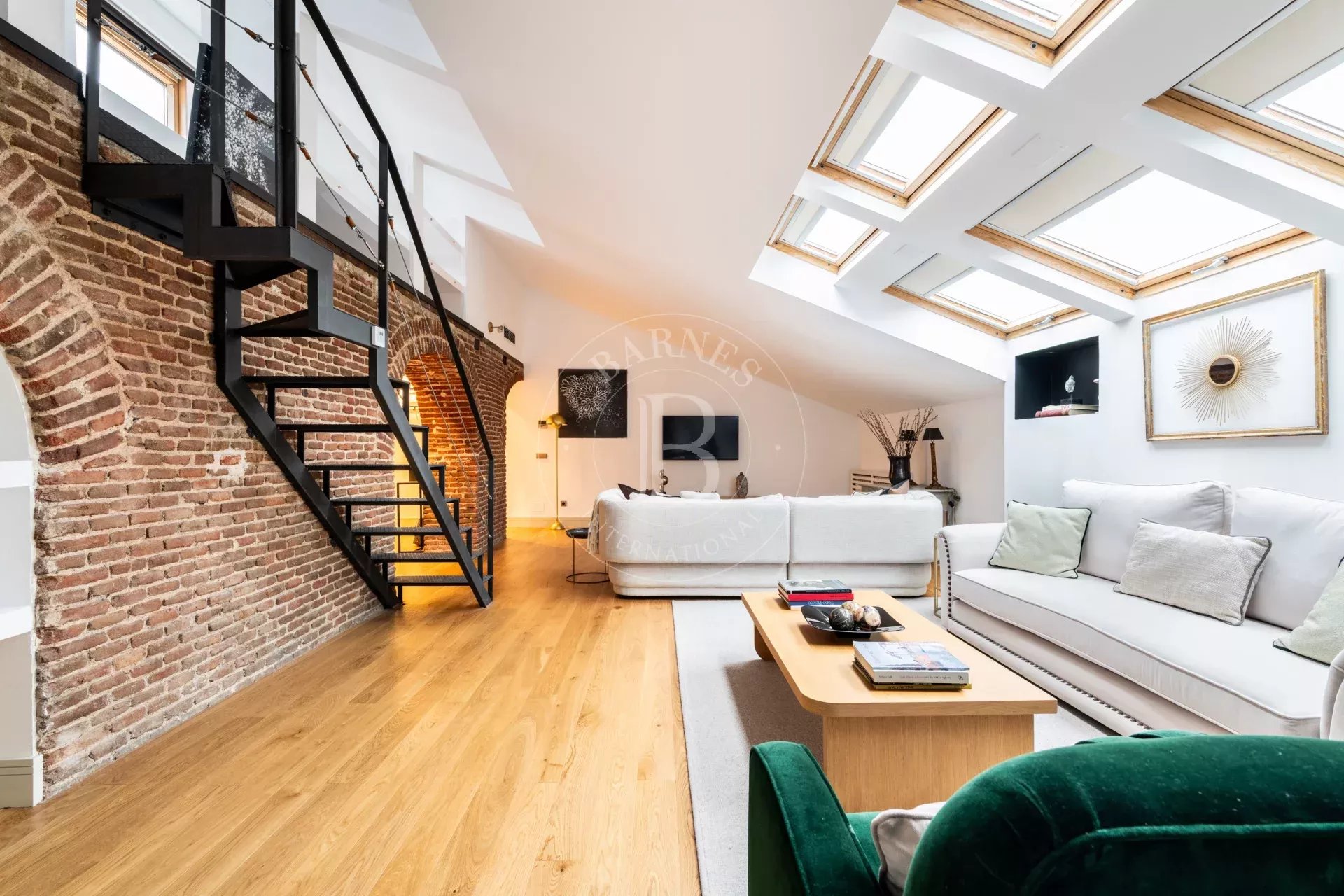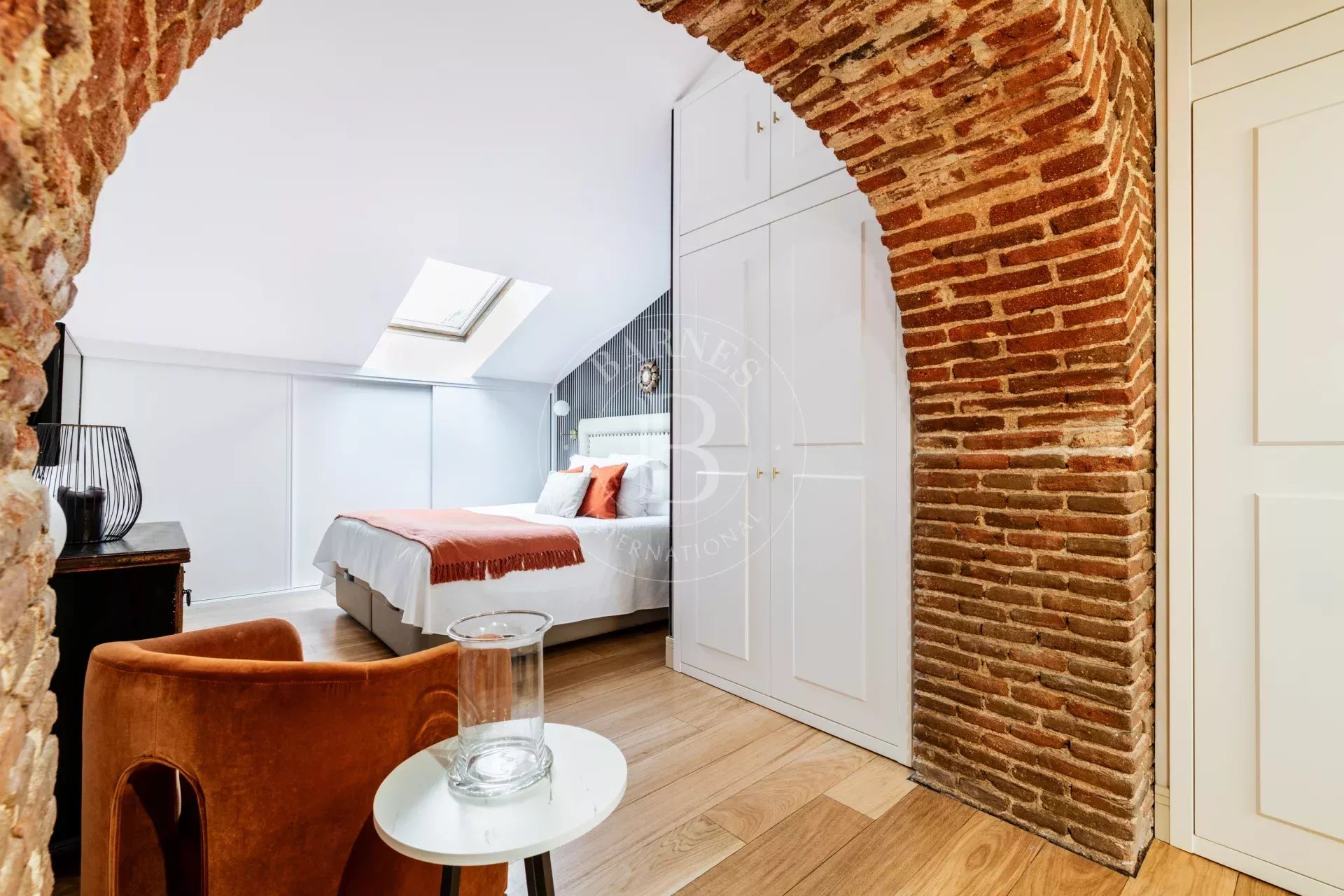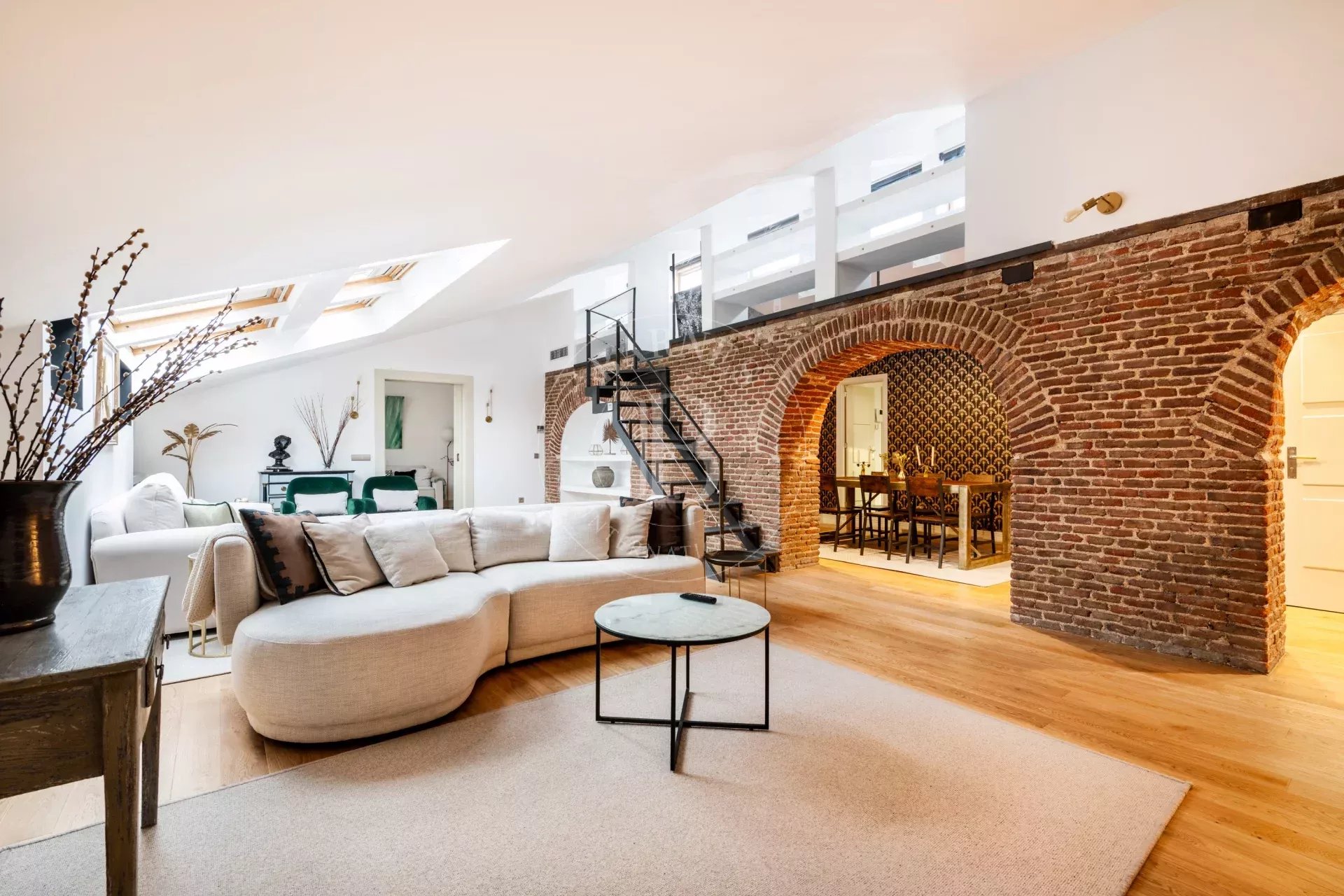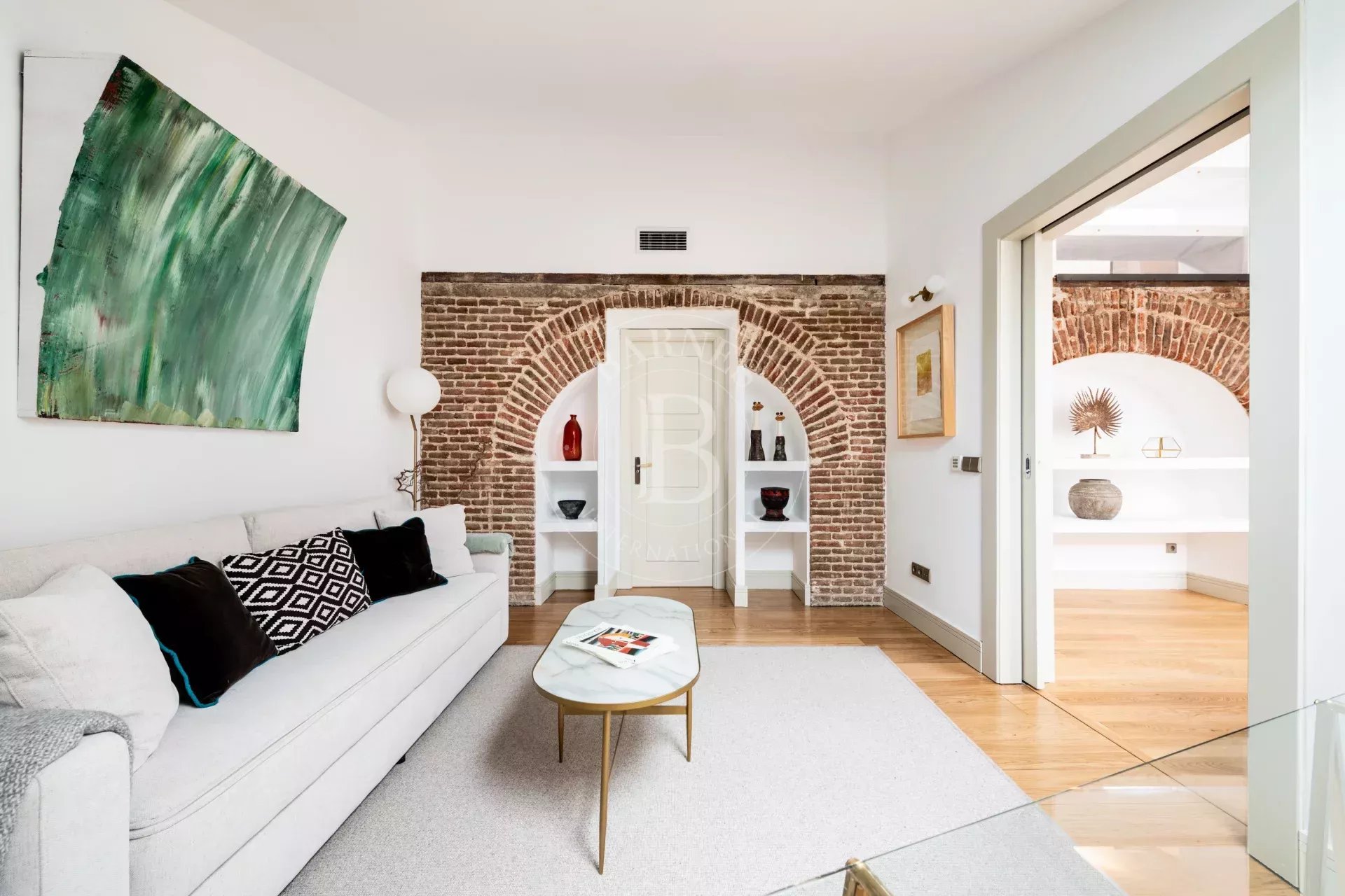 La vivienda destaca por su marcado estilo NY, con arcos estructurales de exposed brick que aportan personalidad y autenticidad a los espacios. El acceso es cómodo y directo mediante ascensor, reforzando la privacidad y el carácter exclusivo del inmueble.