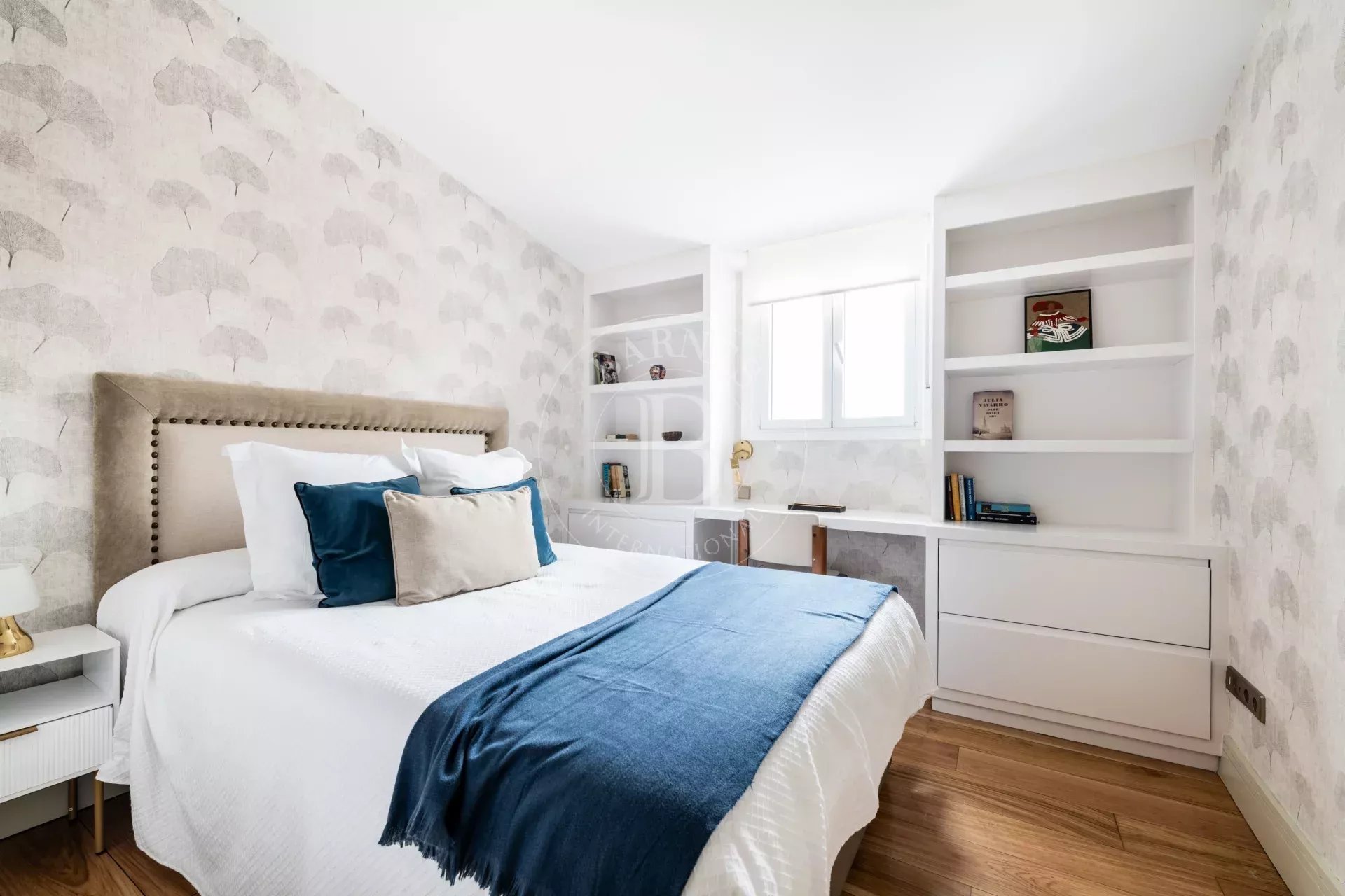 La zona de noche ofrece tres dormitorios completos, todos con baño en suite; los secundarios con ducha y el principal con bañera. Además, la vivienda cuenta con un cuarto espacio actualmente decorado como despacho con sofá cama, fácilmente independizable como cuarta habitación. Completa el conjunto una impresionante zona de doble altura estilo loft, con librería de obra, pequeño escritorio y ventanas al skyline, creando una atmósfera única que evoca ciudades como Nueva York o Londres.