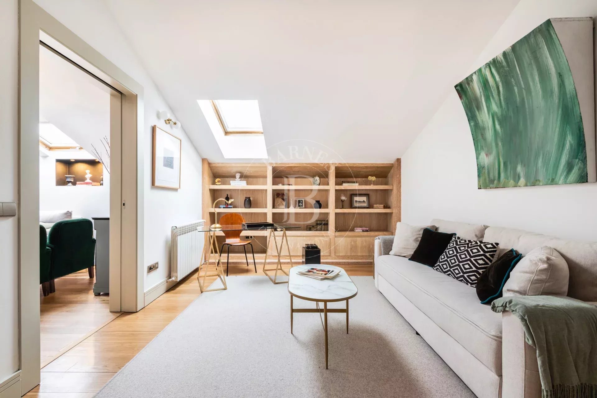 Barnes presenta este exclusivo piso en la última planta de un edificio clásico de la calle José Ortega y Gasset, una propiedad única que combina carácter neoyorquino, luz excepcional y vistas abiertas a los tejados y al skyline de Madrid.