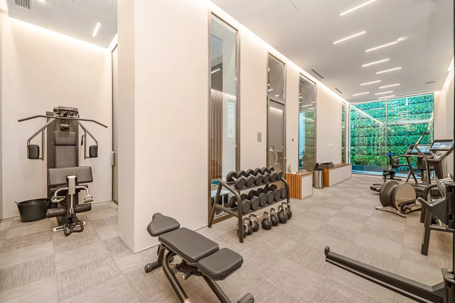 La cocina, de estilo moderno y funcional, se encuentra separada por una delicada puerta de cristal decorativa. Equipada con electrodomésticos de alta gama y amplios espacios de almacenamiento, la cocina se complementa con un bonito comedor, ideal para disfrutar de momentos especiales.