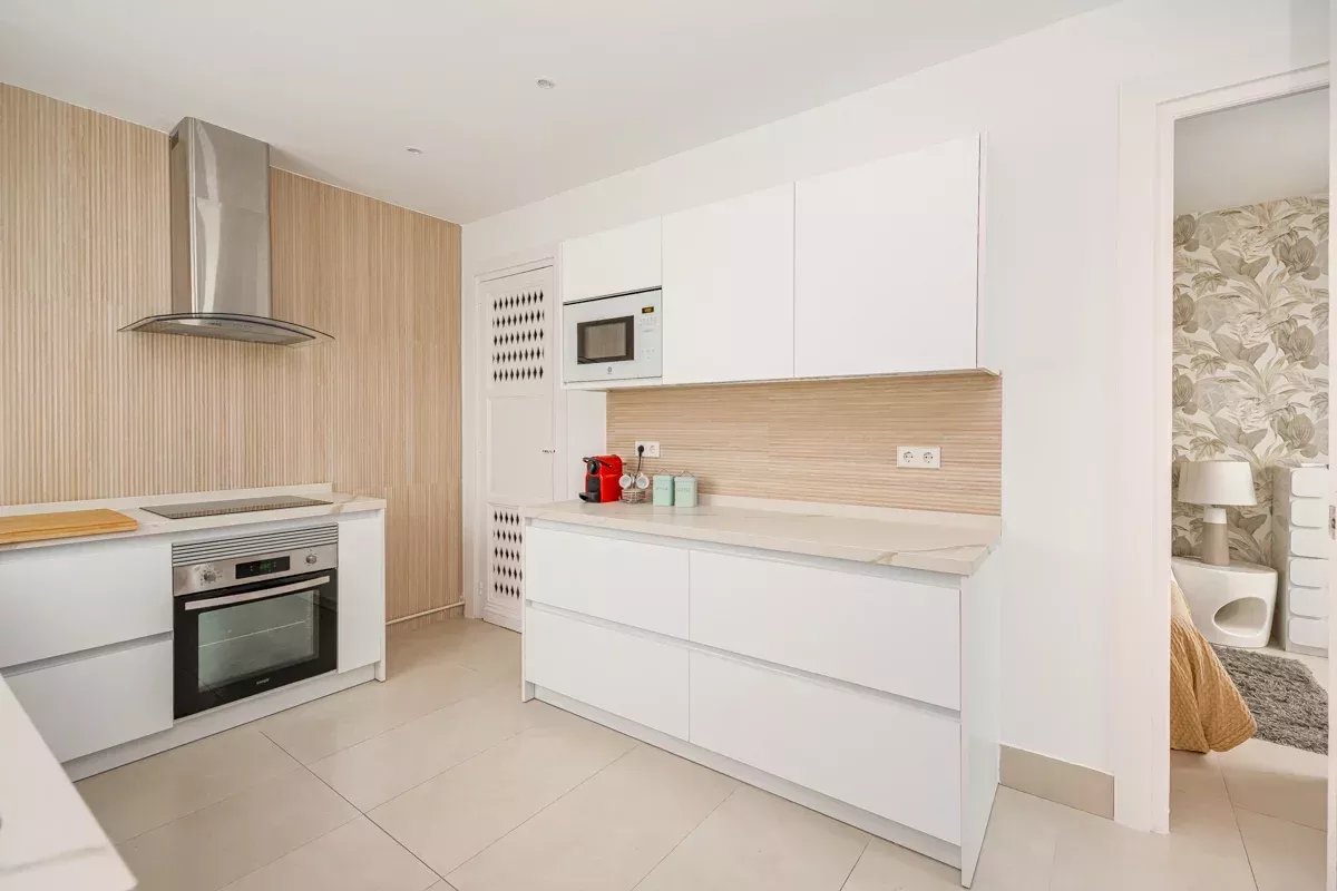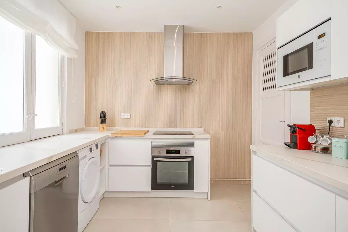 La cocina, independiente, completamente equipada con electrodomésticos de alta gama, combina funcionalidad y diseño en cada detalle.