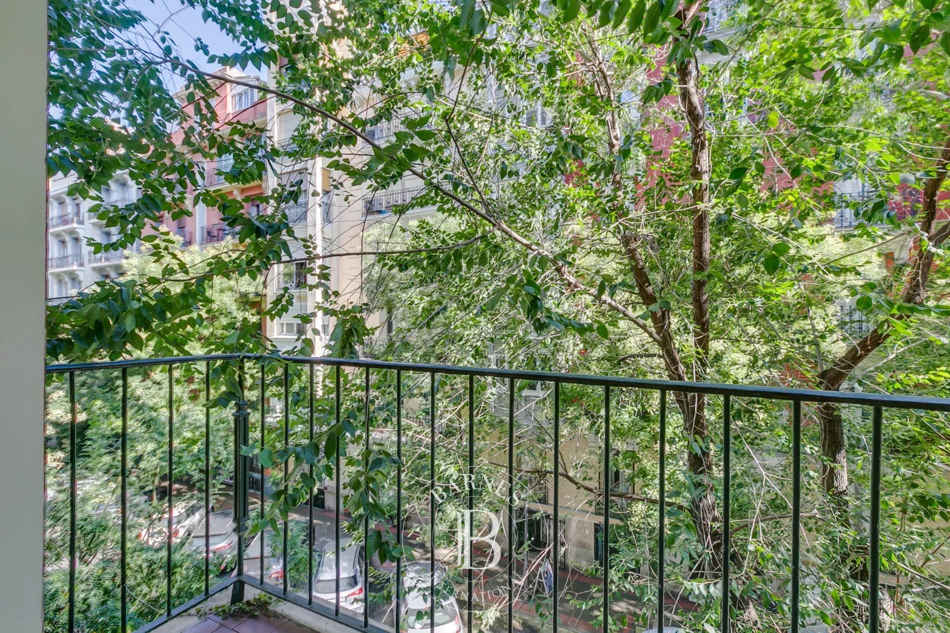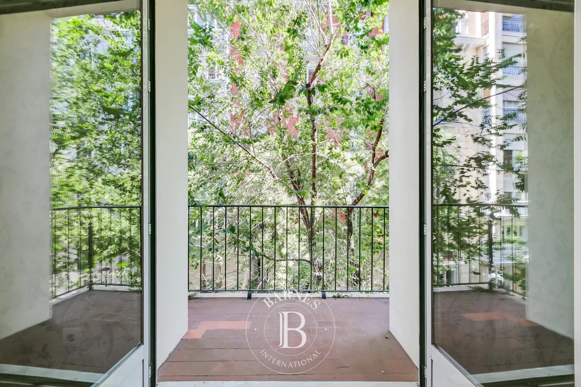 Al cruzar la puerta, la vivienda se abre a una gran zona social concebida como un único espacio fluido y luminoso. El salón, el comedor y la cocina se integran en un ambiente amplio y sofisticado, pensado tanto para el día a día como para recibir. Los grandes ventanales y la salida al balcón permiten que la luz natural inunde la estancia y ofrecen agradables vistas a los árboles de la calle, creando una sensación poco común de amplitud y calma en pleno centro de la ciudad.