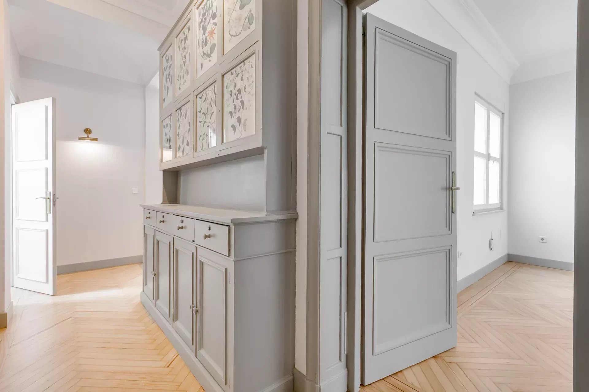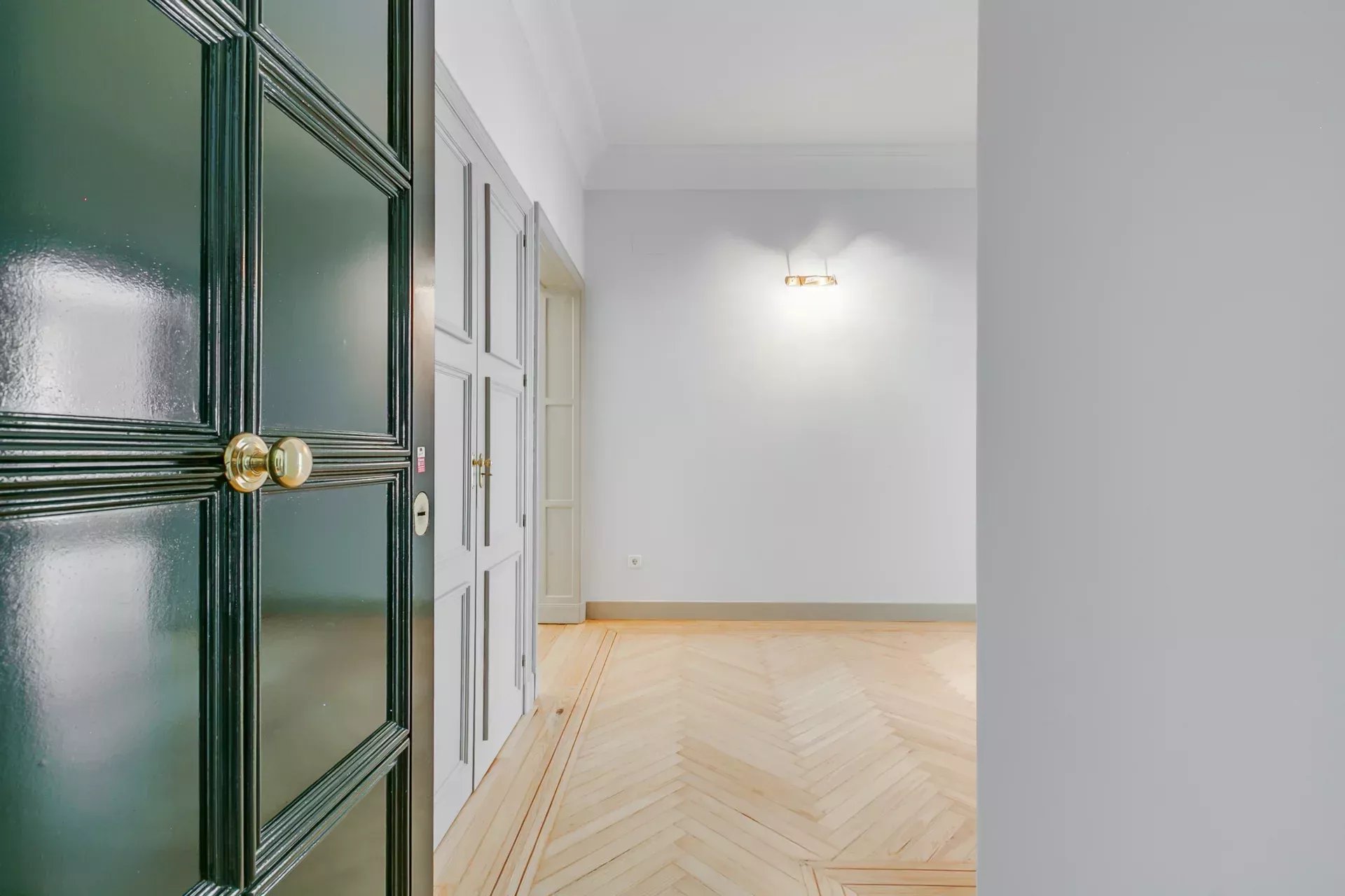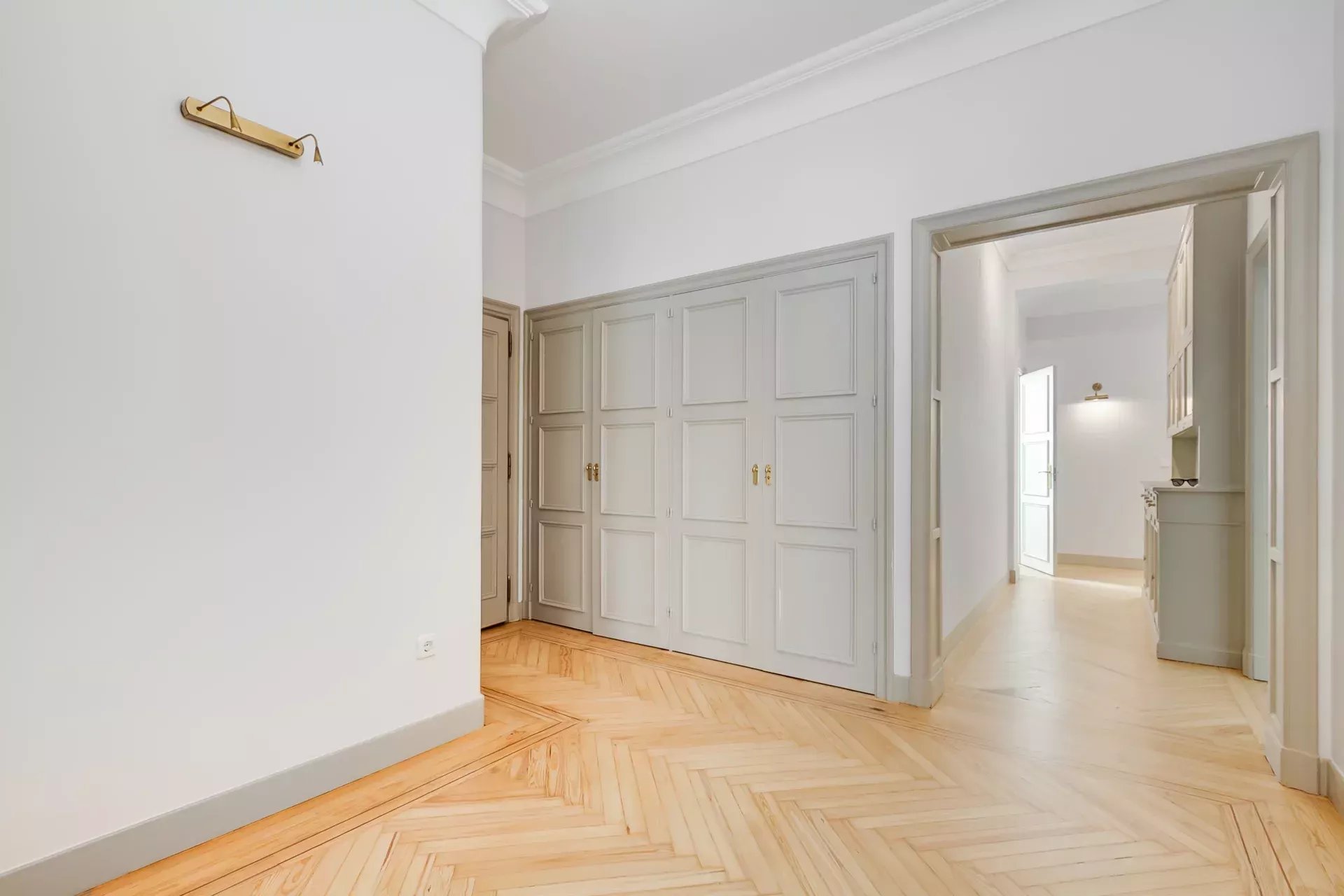 Destacan sus tres enormes salones, todos con amplios ventanales y luz de orientación sur, que ofrecen distintas posibilidades de utilización, como amplio despacho o recepción. El piso cuenta además con un espacioso recibidor, biblioteca, tres dormitorios —dos de ellos en suite— y dormitorio de servicio. La habitación principal dispone de vestidor. Completa la distribución un baño de cortesía y una cocina totalmente equipada.