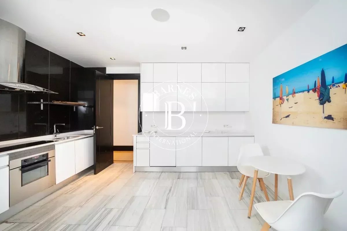 La zona de cocina se articula en dos espacios: una cocina de diario con barra americana, práctica y funcional, y una segunda cocina independiente en la zona de servicio, más amplia, que cuenta además con lavandería y dormitorio de servicio con su propio baño.