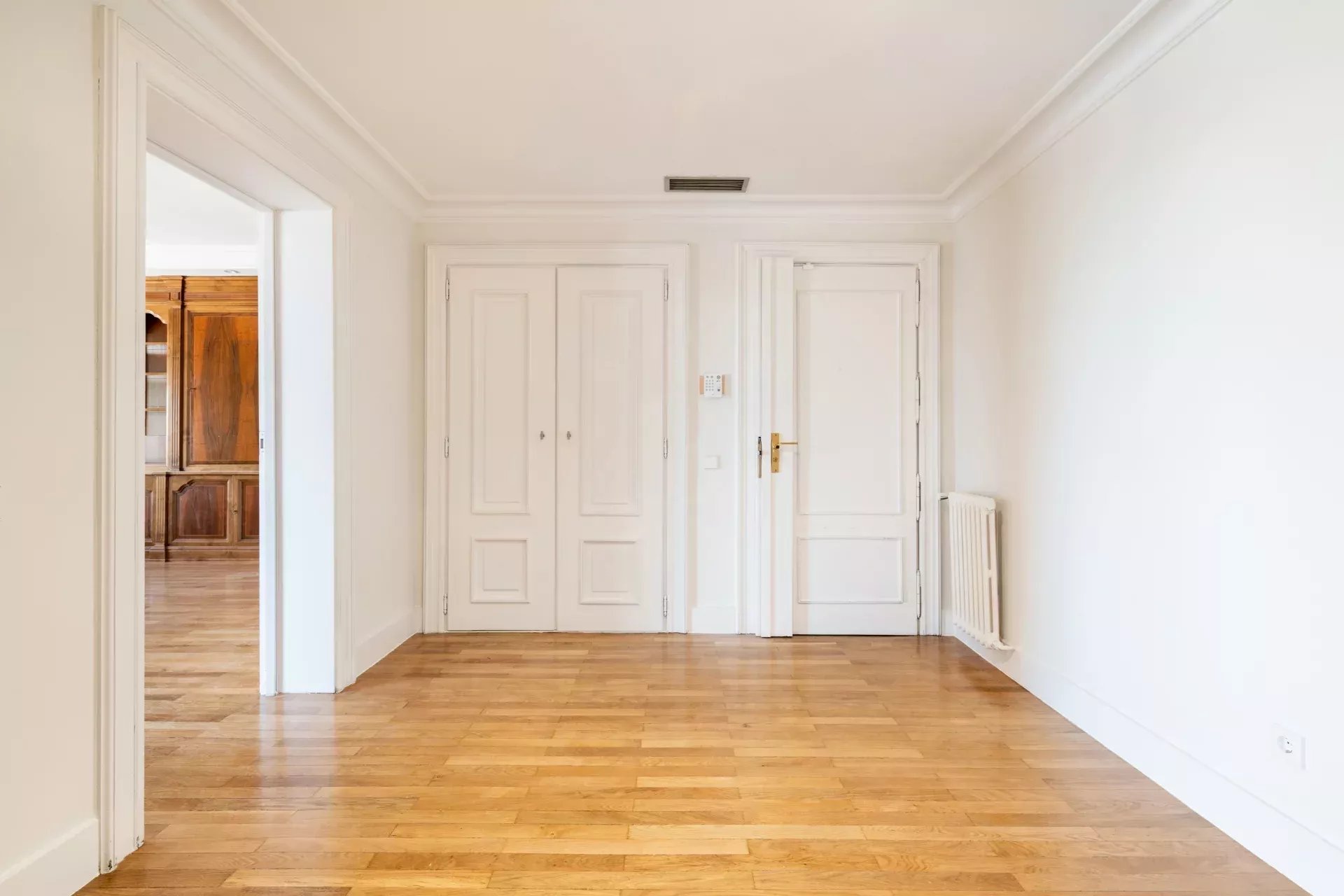 La finca, de arquitectura señorial, se encuentra en un estado de conservación impecable y está atendida por un portero excepcional presente los siete días de la semana. Tres plazas de garaje en el propio edificio, trastero privado, chimenea, suelos de madera, armarios empotrados, calefacción central a gas y aire acondicionado por conducto en toda la vivienda completan una oferta sin parangón en el mercado. Se admiten mascotas.