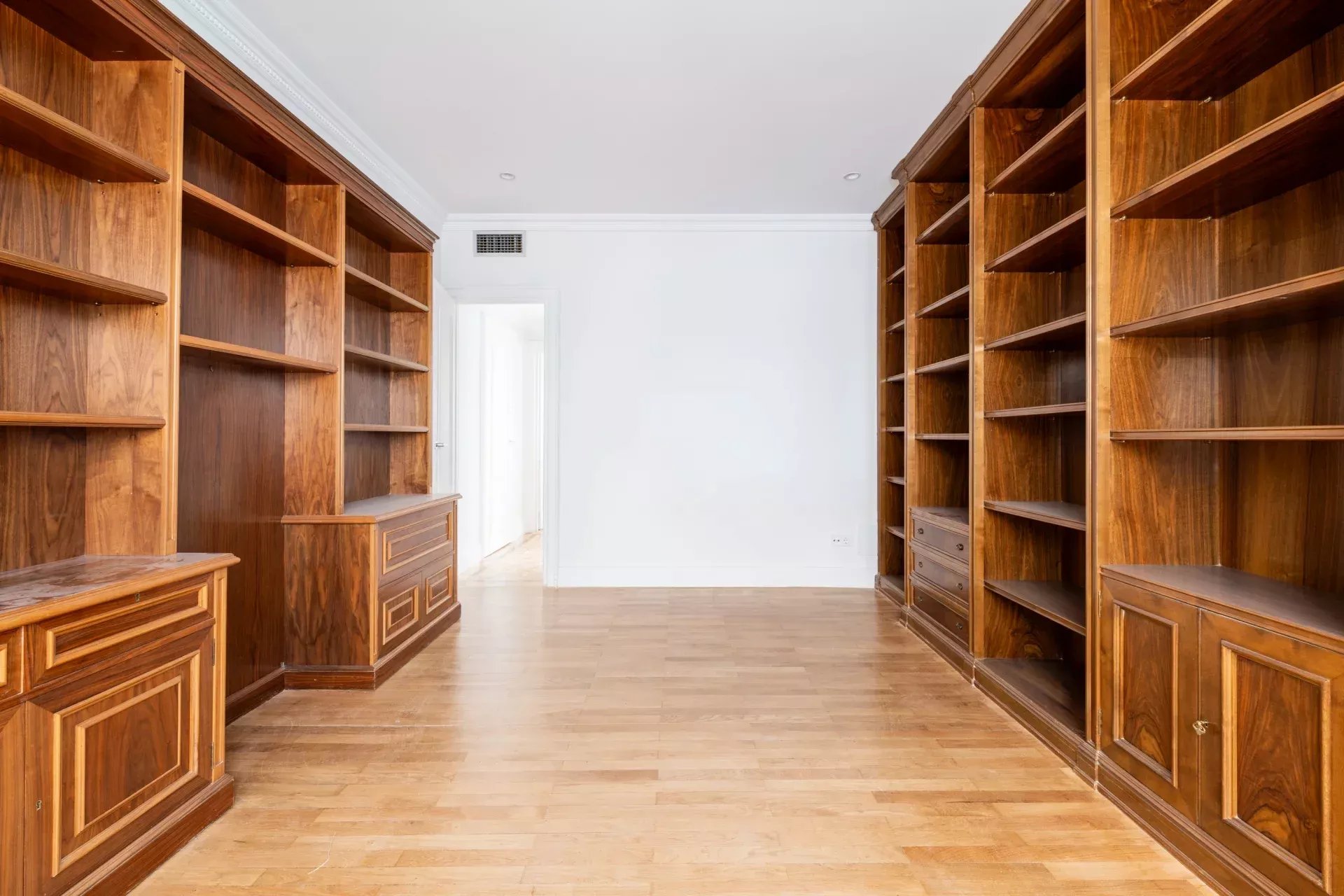 El salón, articulado en tres ambientes diferenciados, fluye naturalmente hacia una terraza exterior de carácter excepcional con vistas abiertas al Parque del Oeste: el privilegio de vivir frente al verde más exclusivo de Madrid. Además de los tres salones, la vivienda cuenta con comedor independiente, despacho privado y zona living, configurando una vida social de primer nivel.