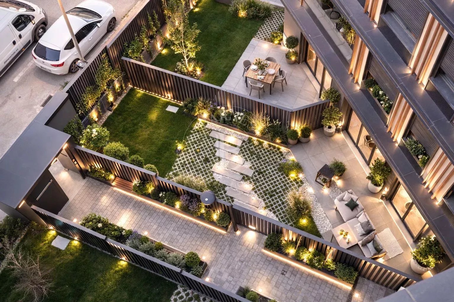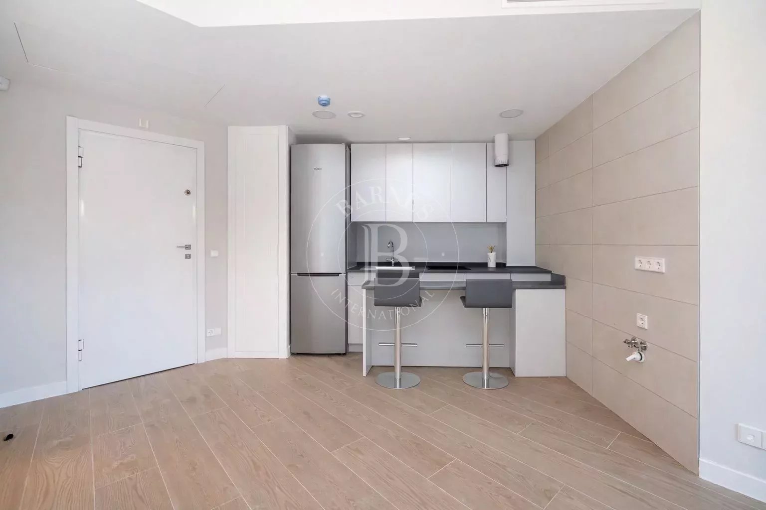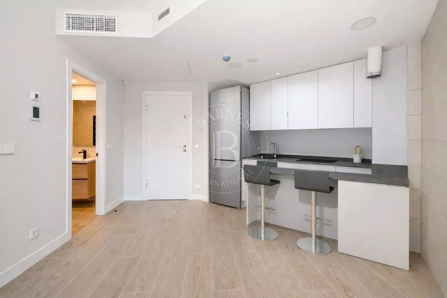 La zona de día se concibe como un espacio open-plan moderno y luminoso, donde la cocina —equipada con electrodomésticos de primera gama— se integra armoniosamente con el salón y el comedor. La cocina cuenta con una práctica isla central que funciona como barra de desayuno, perfecta para el día a día o para recibir invitados. Desde el salón se accede directamente al jardín privado, orientado al sur, lo que garantiza abundante luz natural durante todo el año. Para el descanso, la vivienda dispone de persianas domotizadas que permiten conseguir un blackout total si se desea disfrutar de un sueño profundo sin que la luz de la ciudad interrumpa la noche.