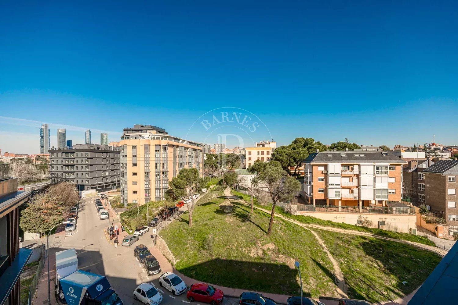 El jardín privado incluye un acogedor porche descubierto, ideal para instalar una zona de barbacoa, así como un área de césped donde ubicar una mesa de comedor exterior para las veladas de verano o varias hamacas para relajarse al sol. La propiedad forma parte de una urbanización de nueva construcción altamente eficiente, con excelentes zonas comunes que incluyen piscina, sauna y gimnasio equipado con maquinaria de primera gama. El precio incluye además una amplia plaza de garaje interior y un trastero de aproximadamente 5 m², así como acceso a la azotea comunitaria con magníficas vistas. Su ubicación, muy próxima a Arturo Soria y con acceso directo a la M-30, ofrece una conexión rápida con el resto de la ciudad.