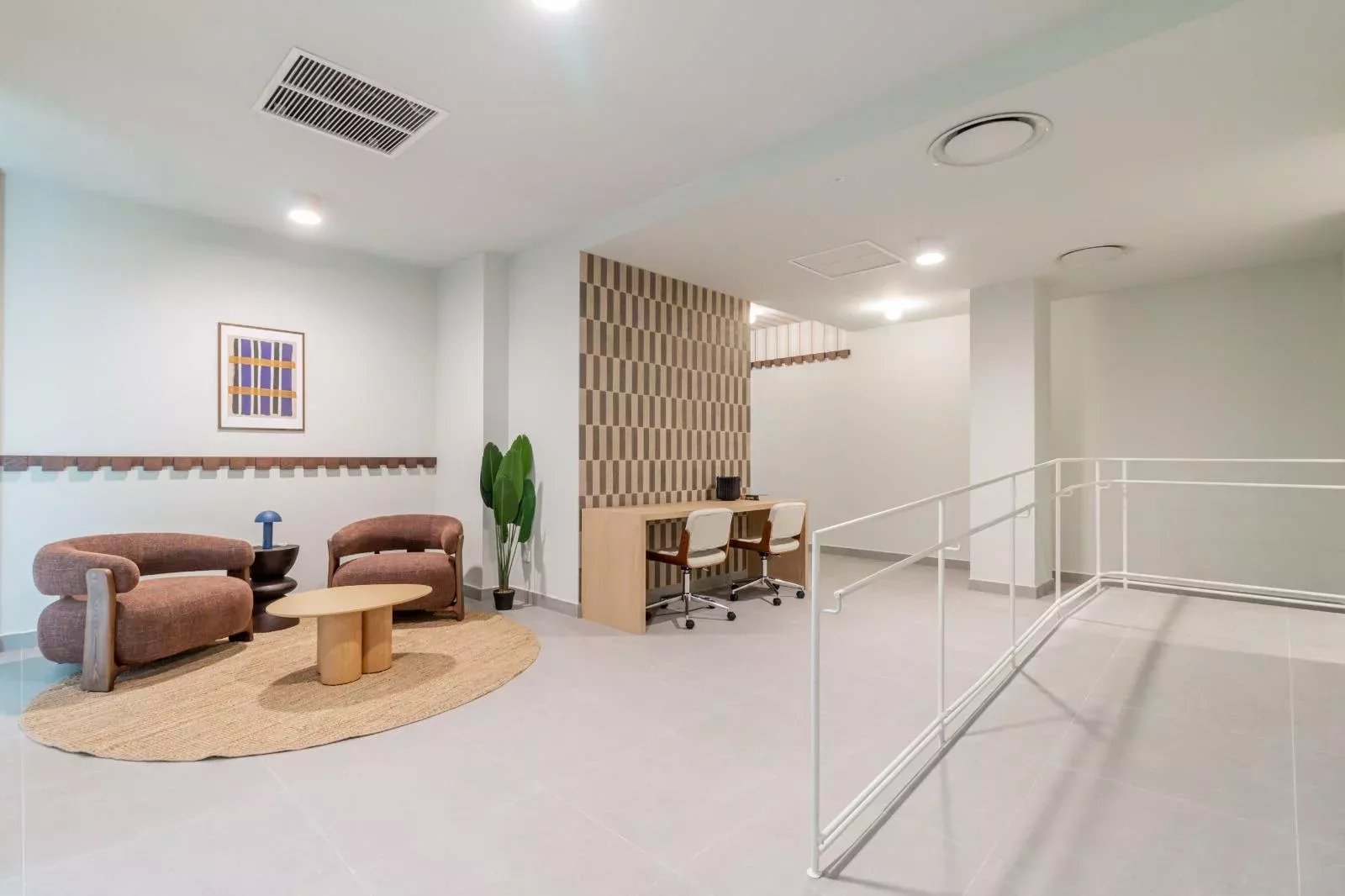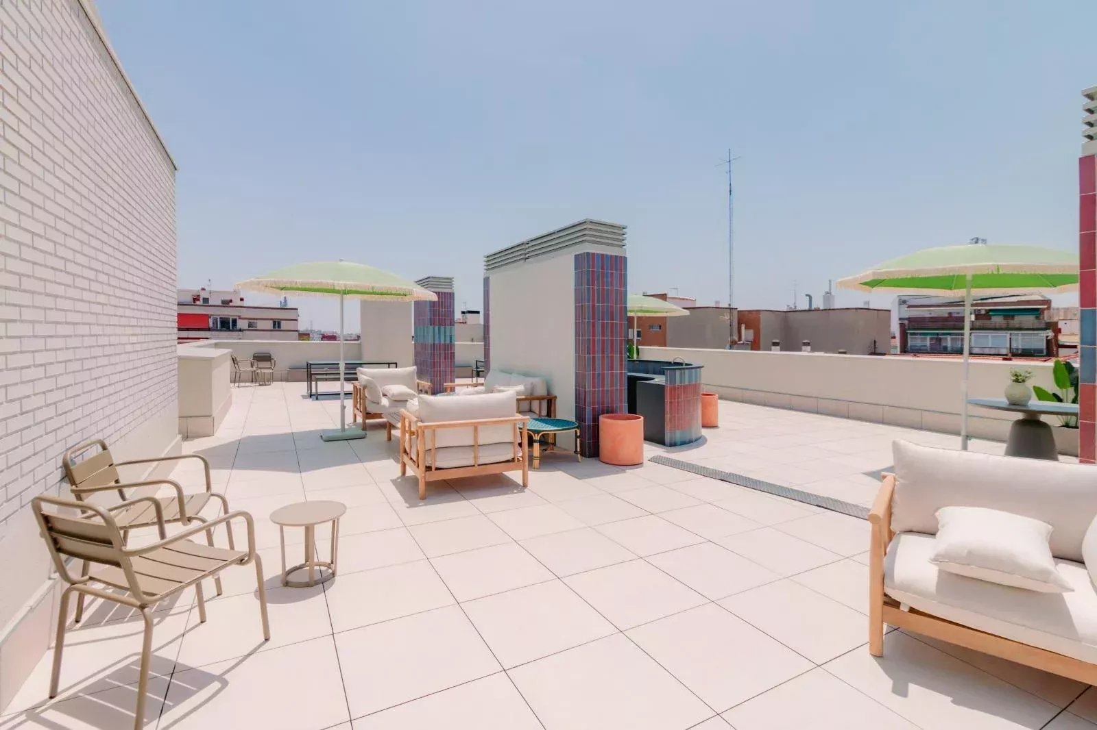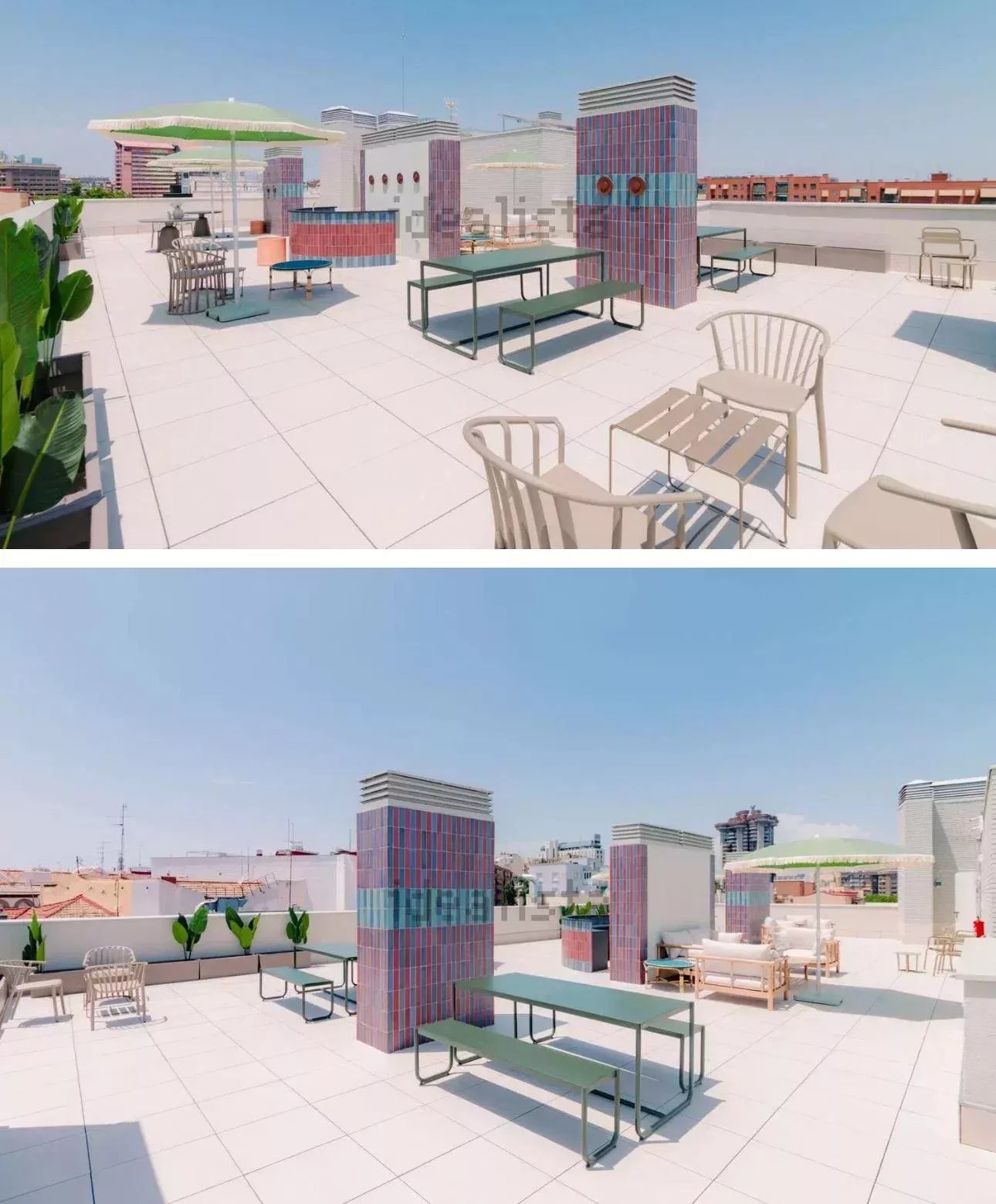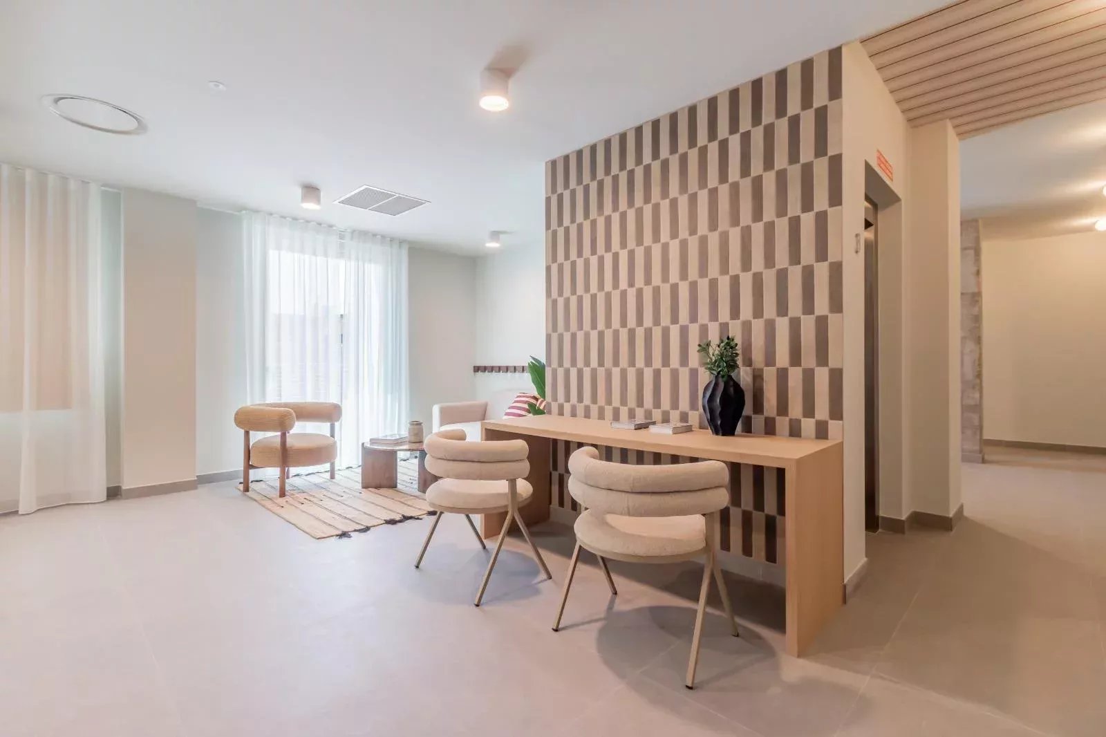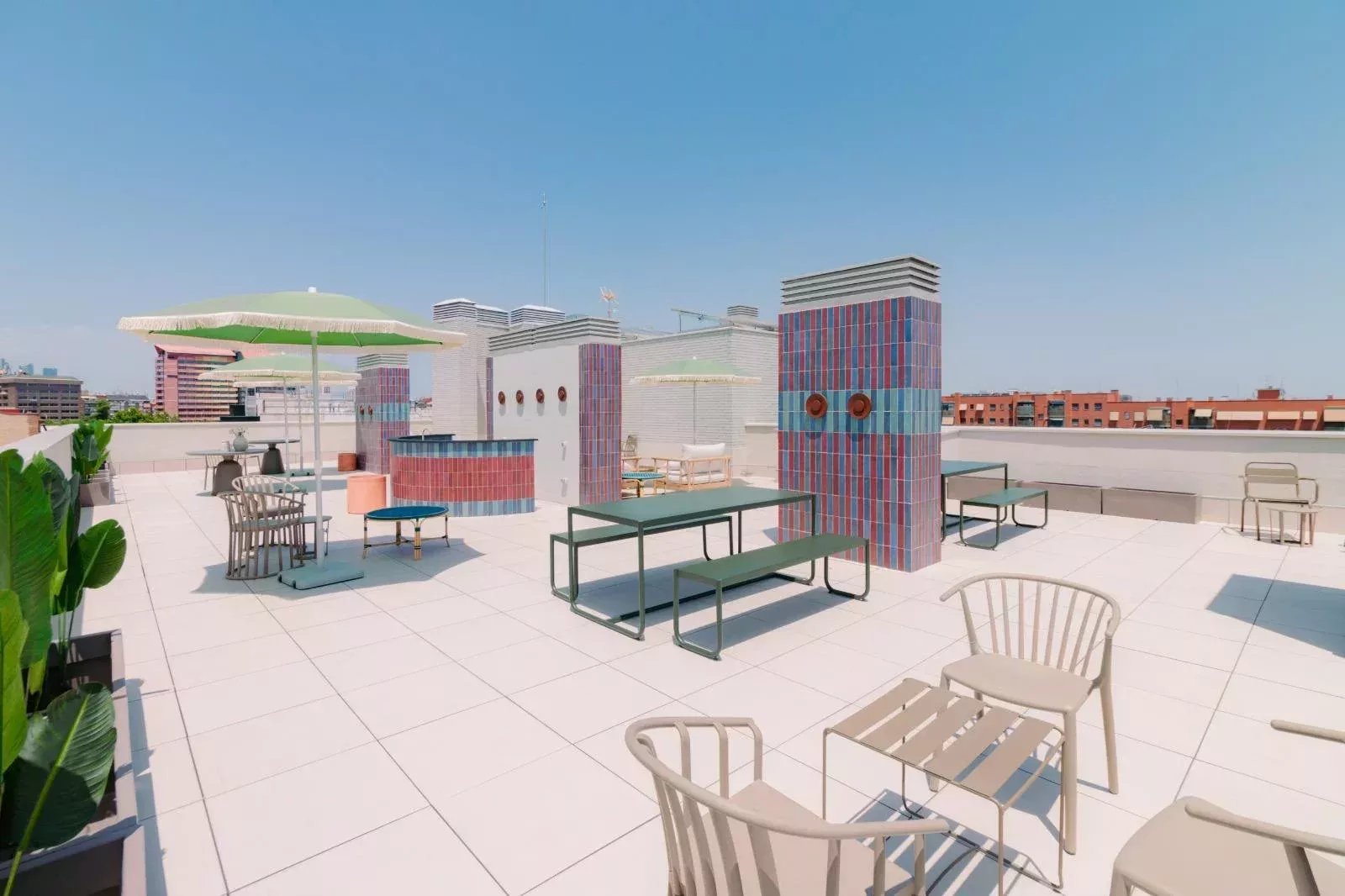 El edificio ofrece zonas comunes excepcionales, como una zona de coworking con coffee station y un espectacular solárium en la quinta planta de 300 m², perfecto para relajarse, trabajar o disfrutar de encuentros en un entorno agradable y moderno.