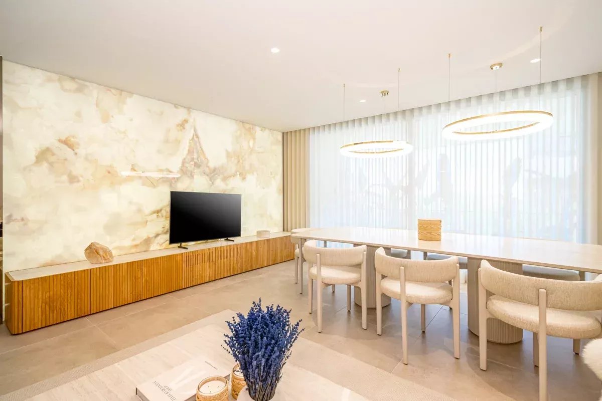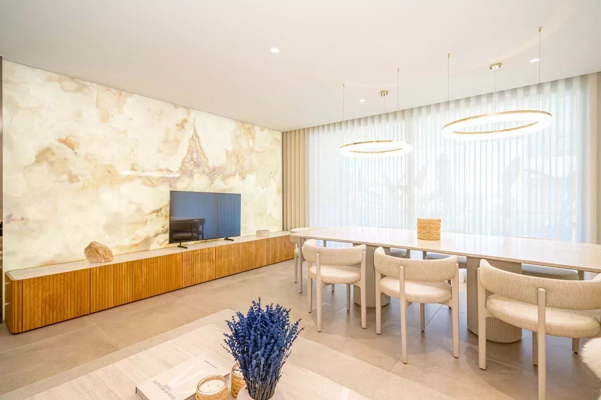 Este piso de lujo en Pozuelo ofrece una distribución ideal: hall de entrada, un amplio salón-comedor con acceso directo a una magnífica terraza privada, y una cocina independiente totalmente equipada, acompañada de una práctica zona de lavandería. La vivienda moderna en Pozuelo cuenta con tres dormitorios.