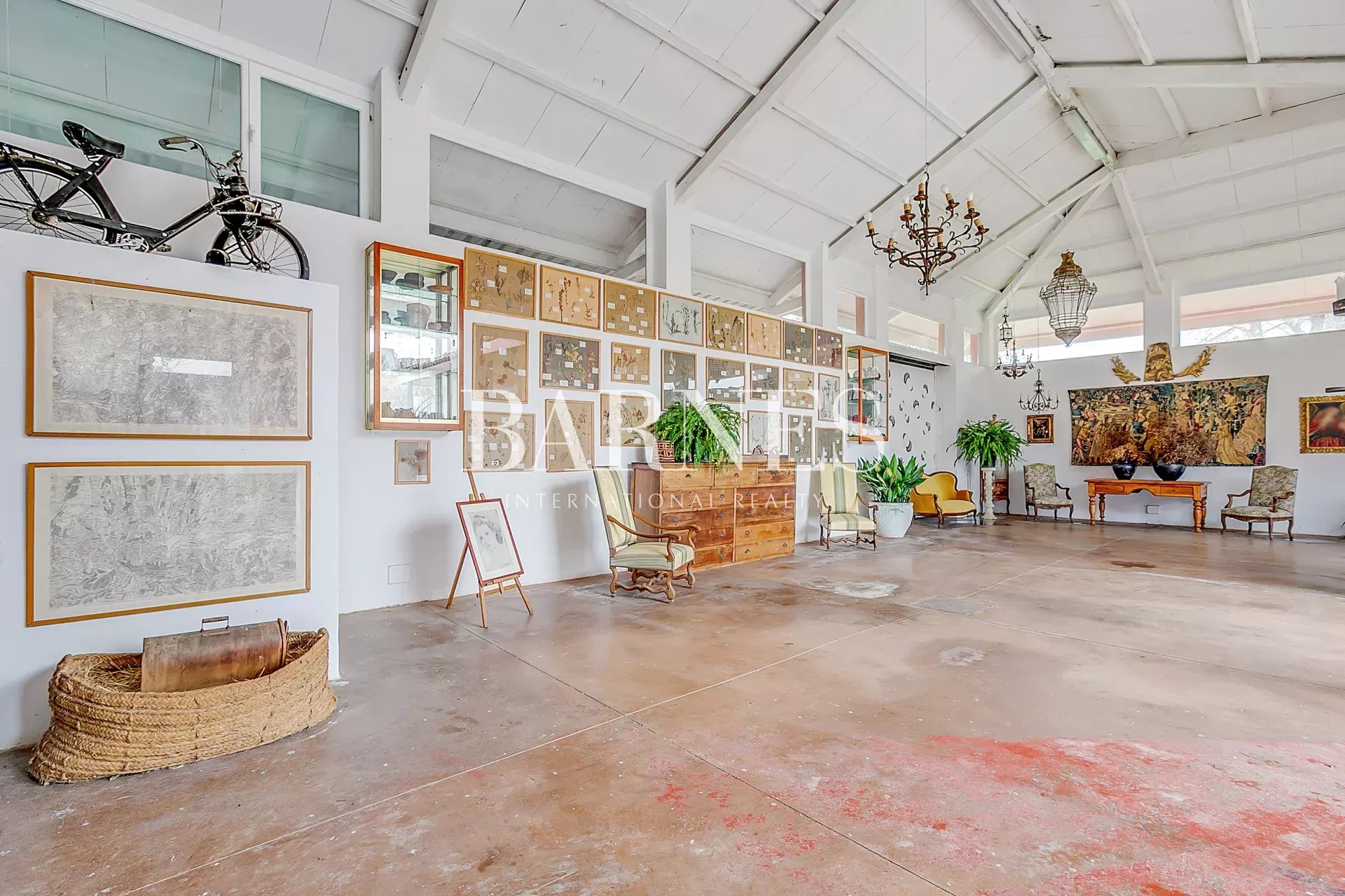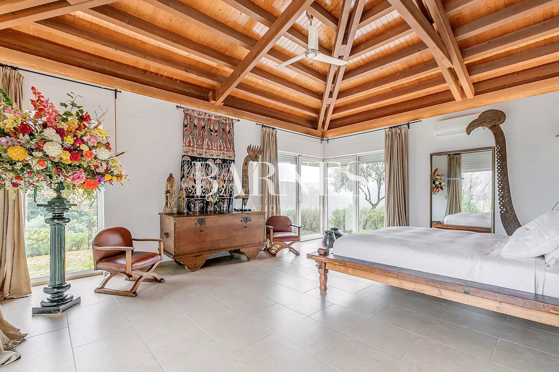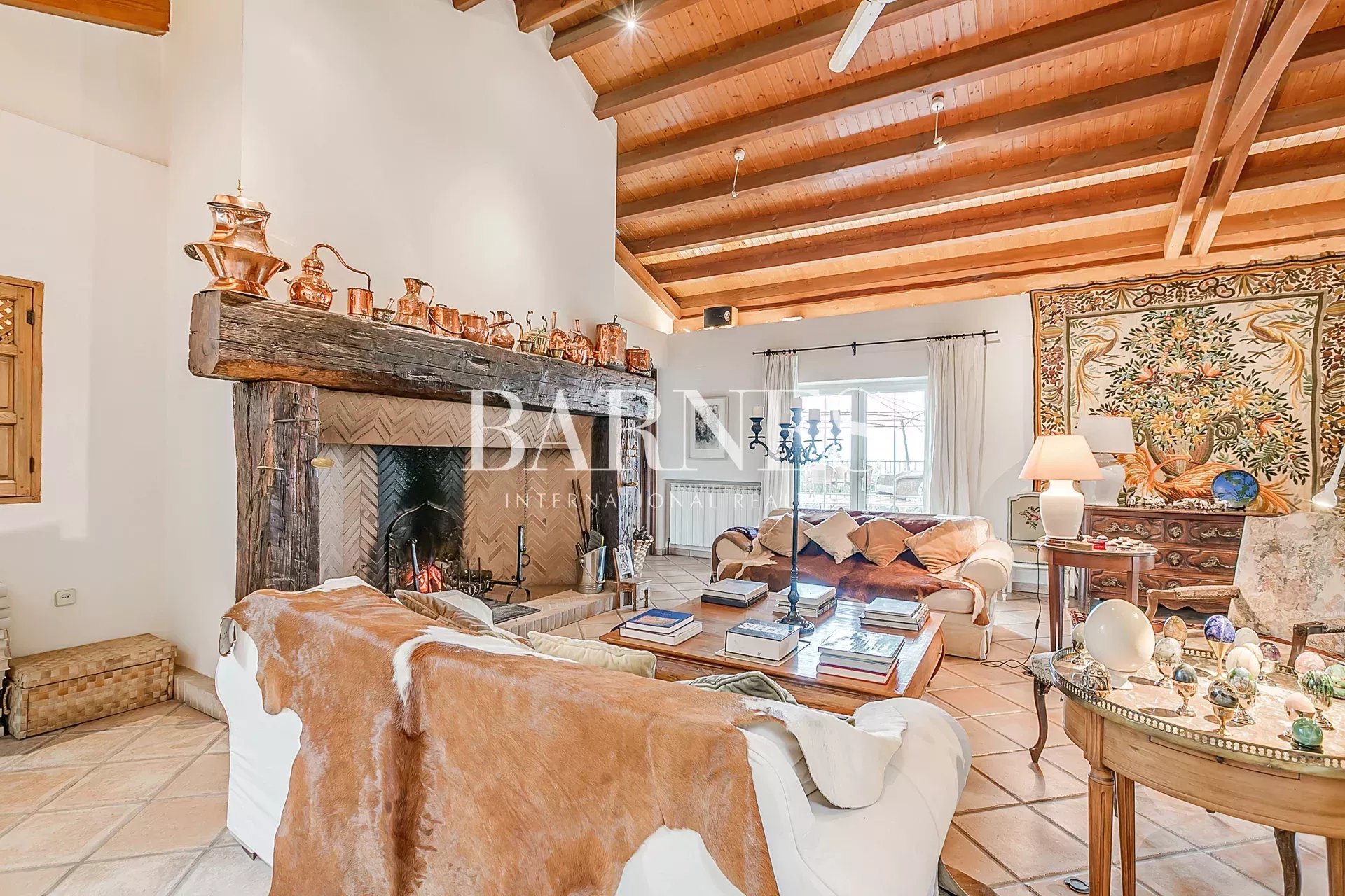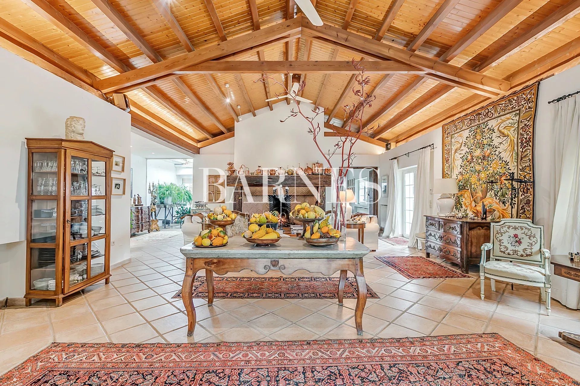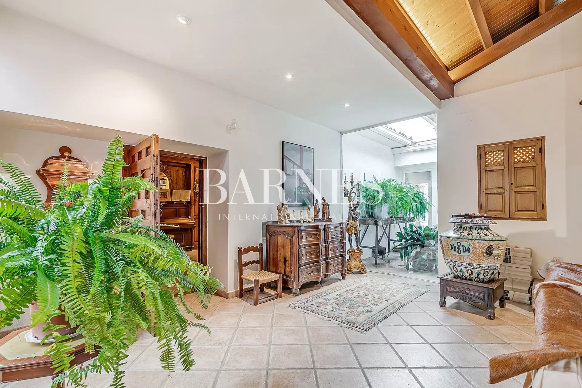 La lujosa vivienda principal está dividida en dos volúmenes: la antigua casa alberga una biblioteca revestida con maderas exóticas, cuarto de estar y despacho, comunicando con una construcción posterior de mayor amplitud y confort contemporáneo.