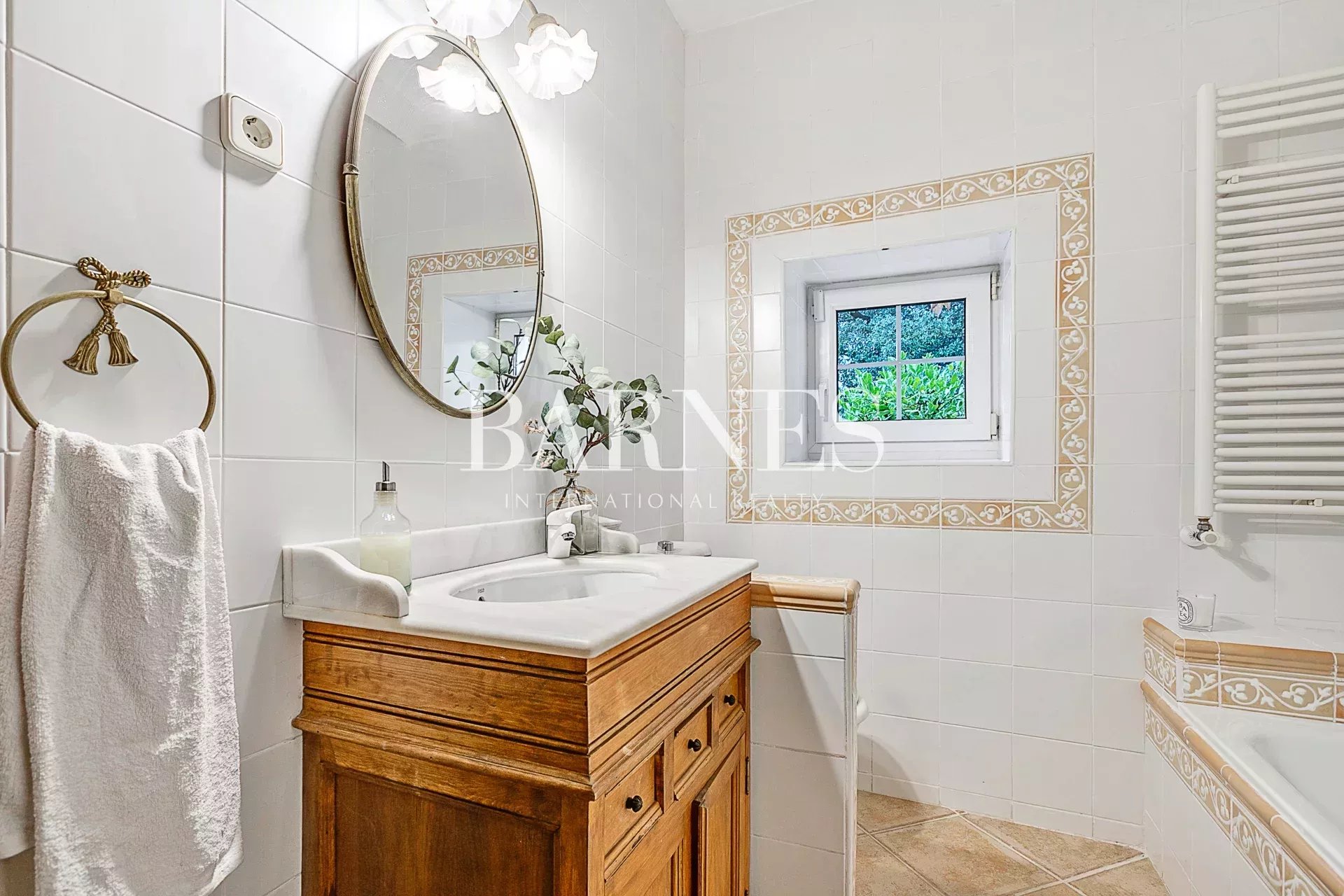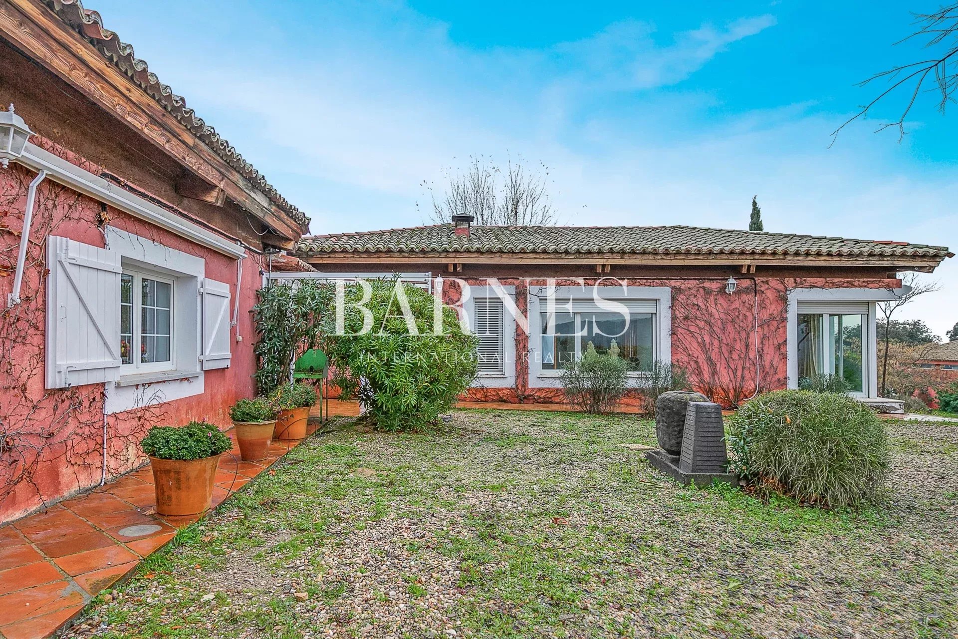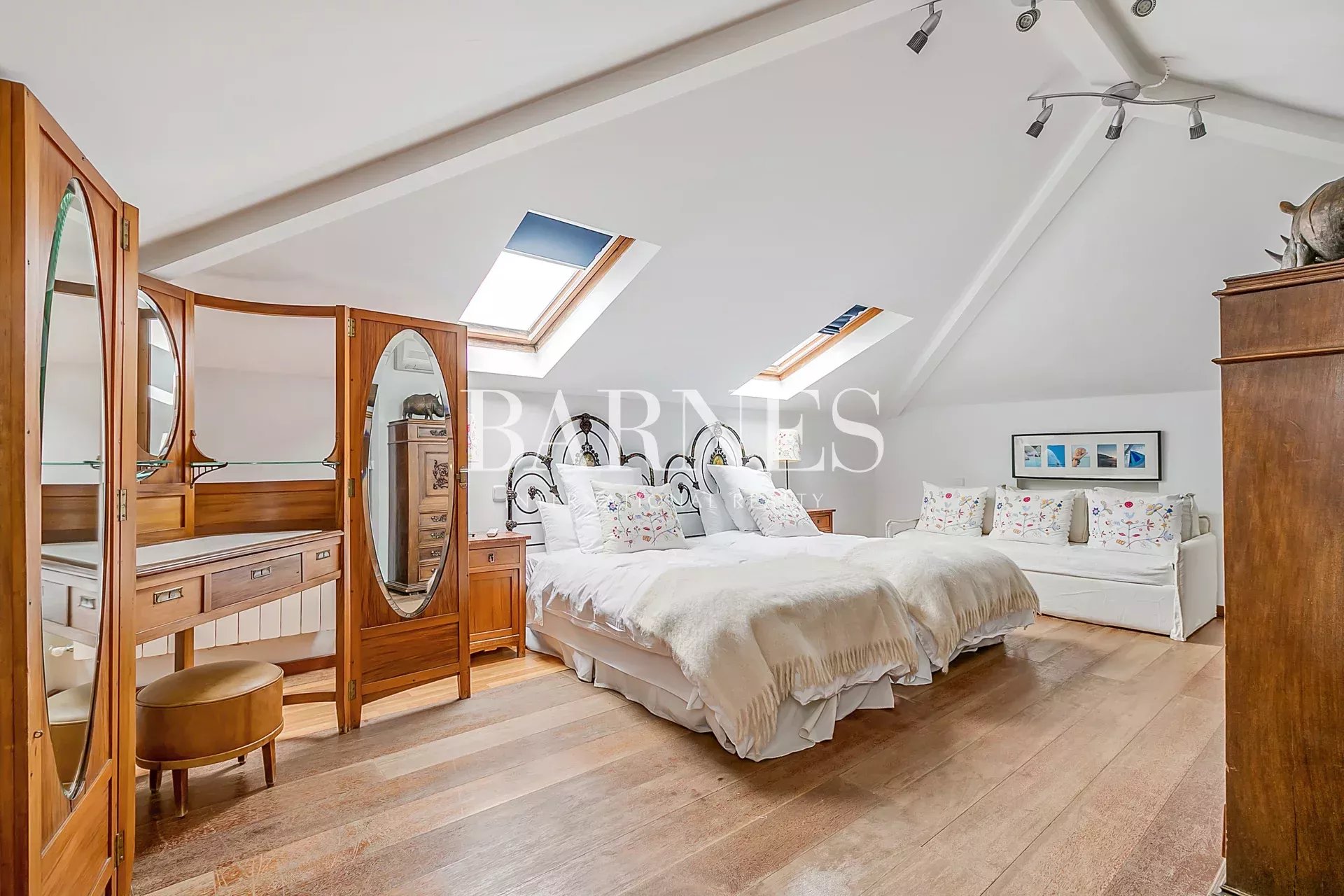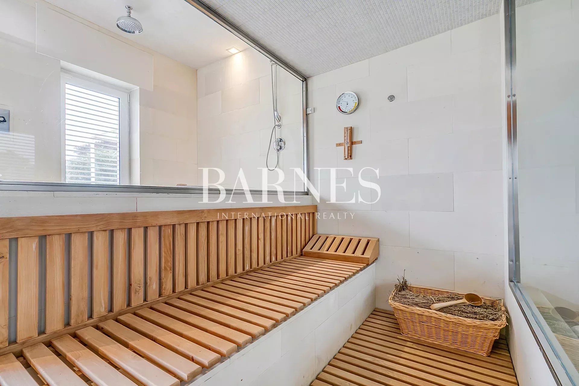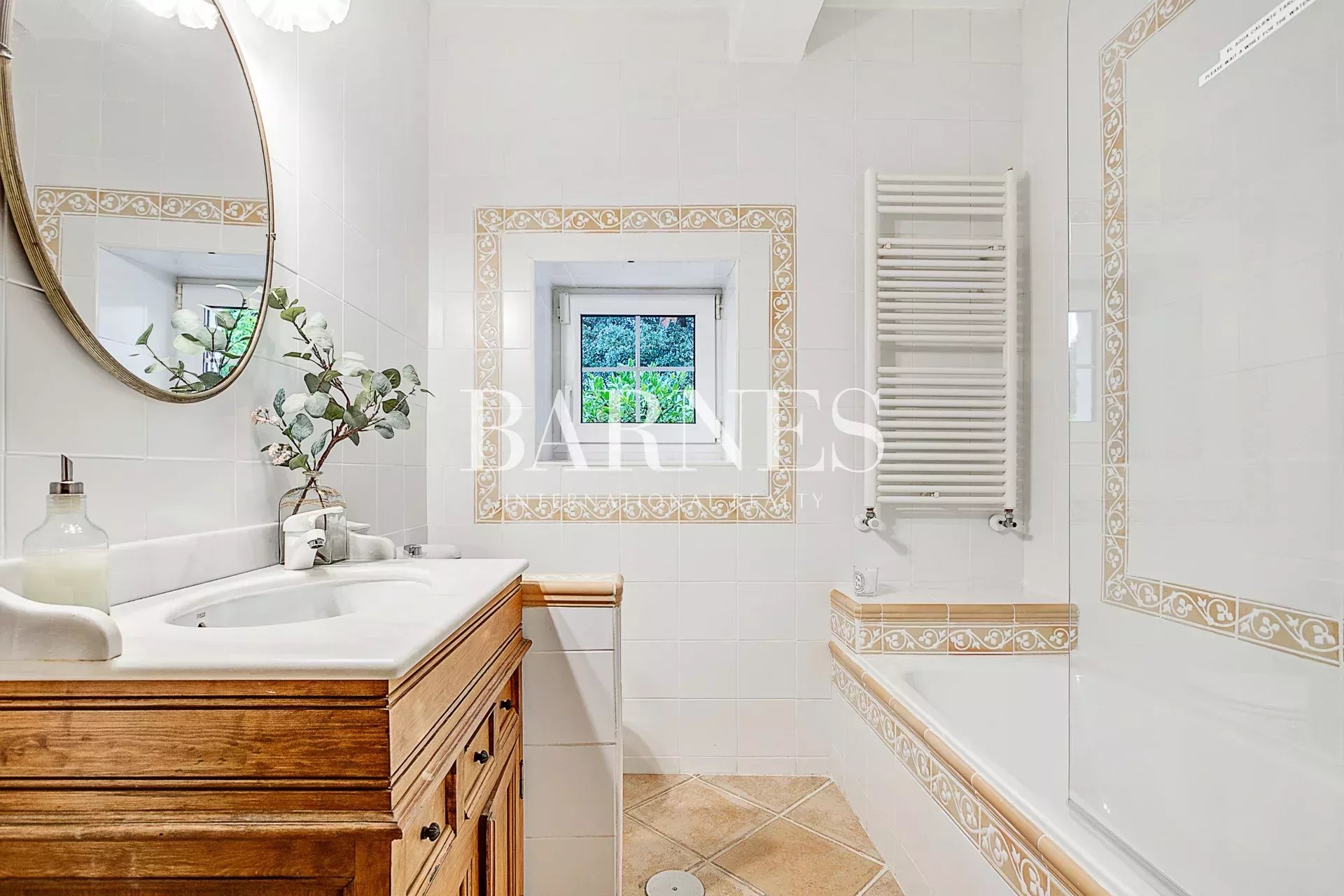 La lujosa vivienda principal está dividida en dos volúmenes: la antigua casa alberga una biblioteca revestida con maderas exóticas, cuarto de estar y despacho, comunicando con una construcción posterior de mayor amplitud y confort contemporáneo.
