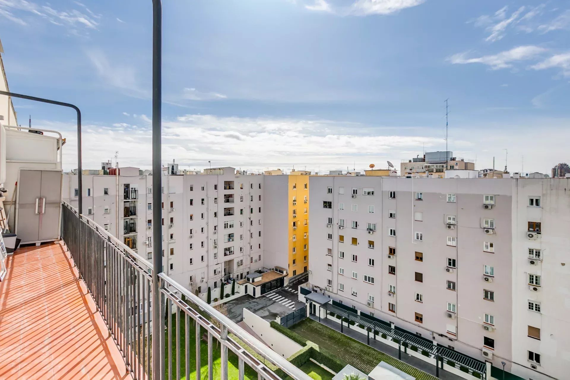 Dispone de un amplio salón comedor que se conecta directamente con una terraza de 10 m² orientada al sur, crea un ambiente luminoso y agradable. Desde la terraza se disfrutan vistas al espacioso patio de manzana y una gran entrada de luz natural.