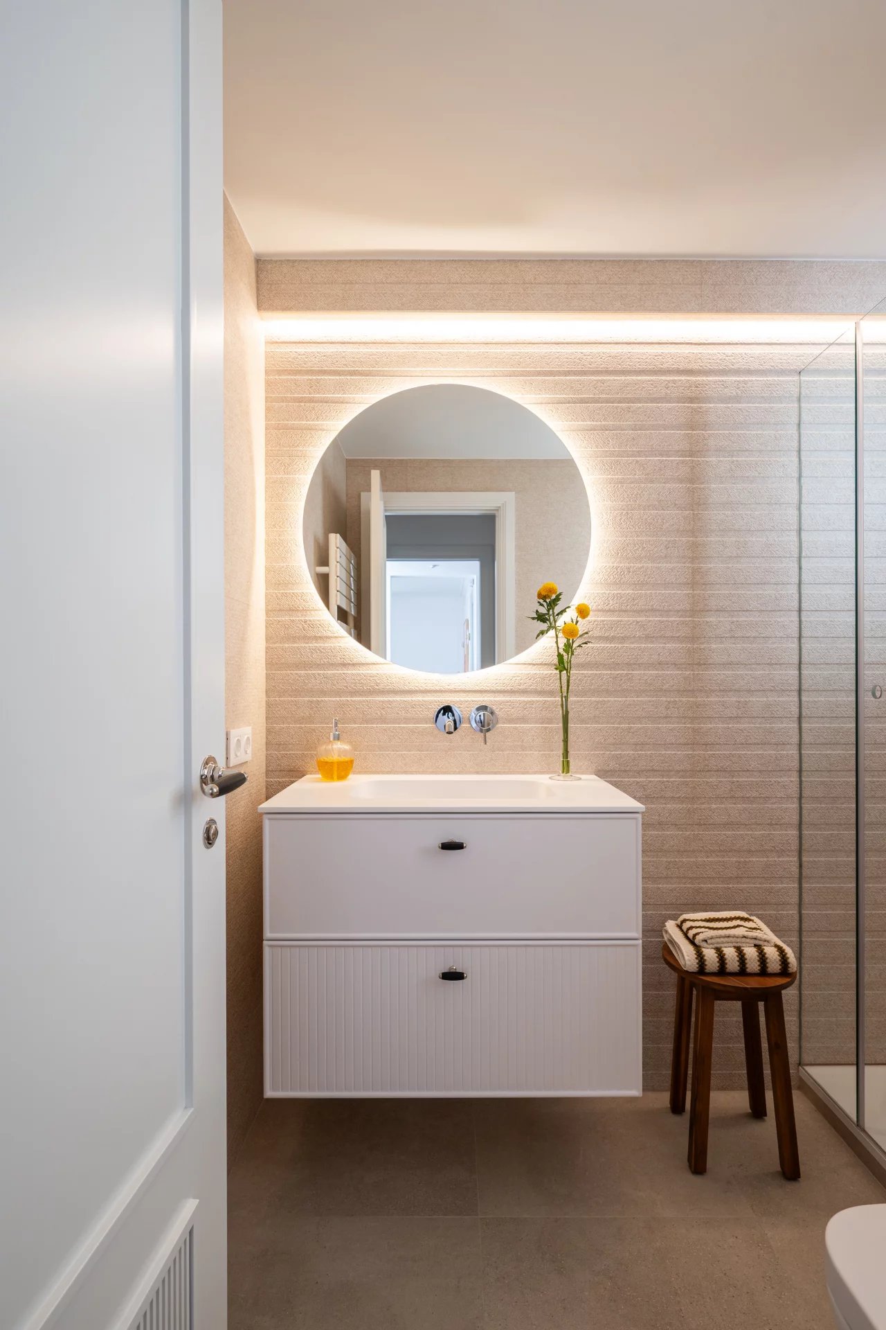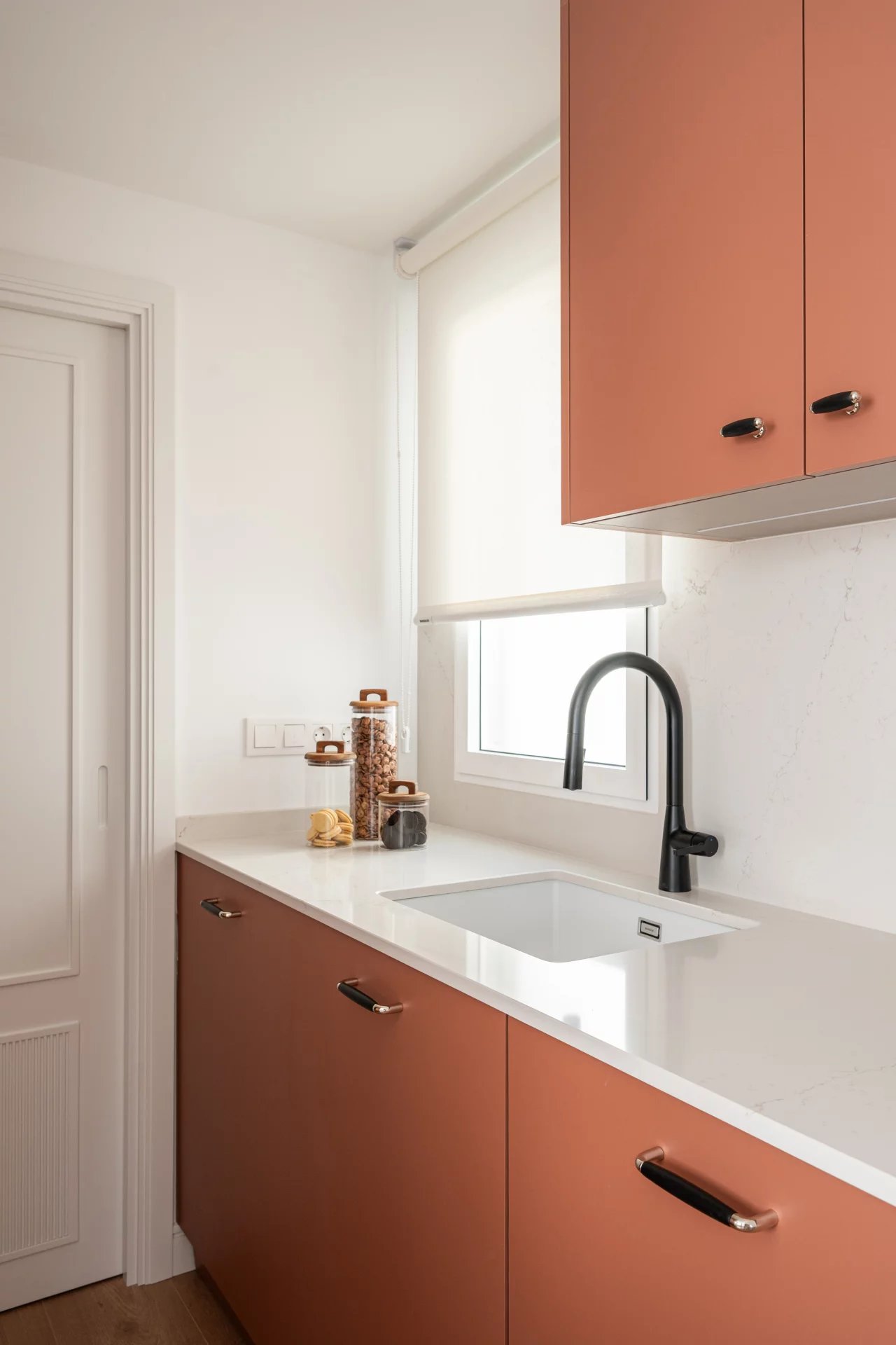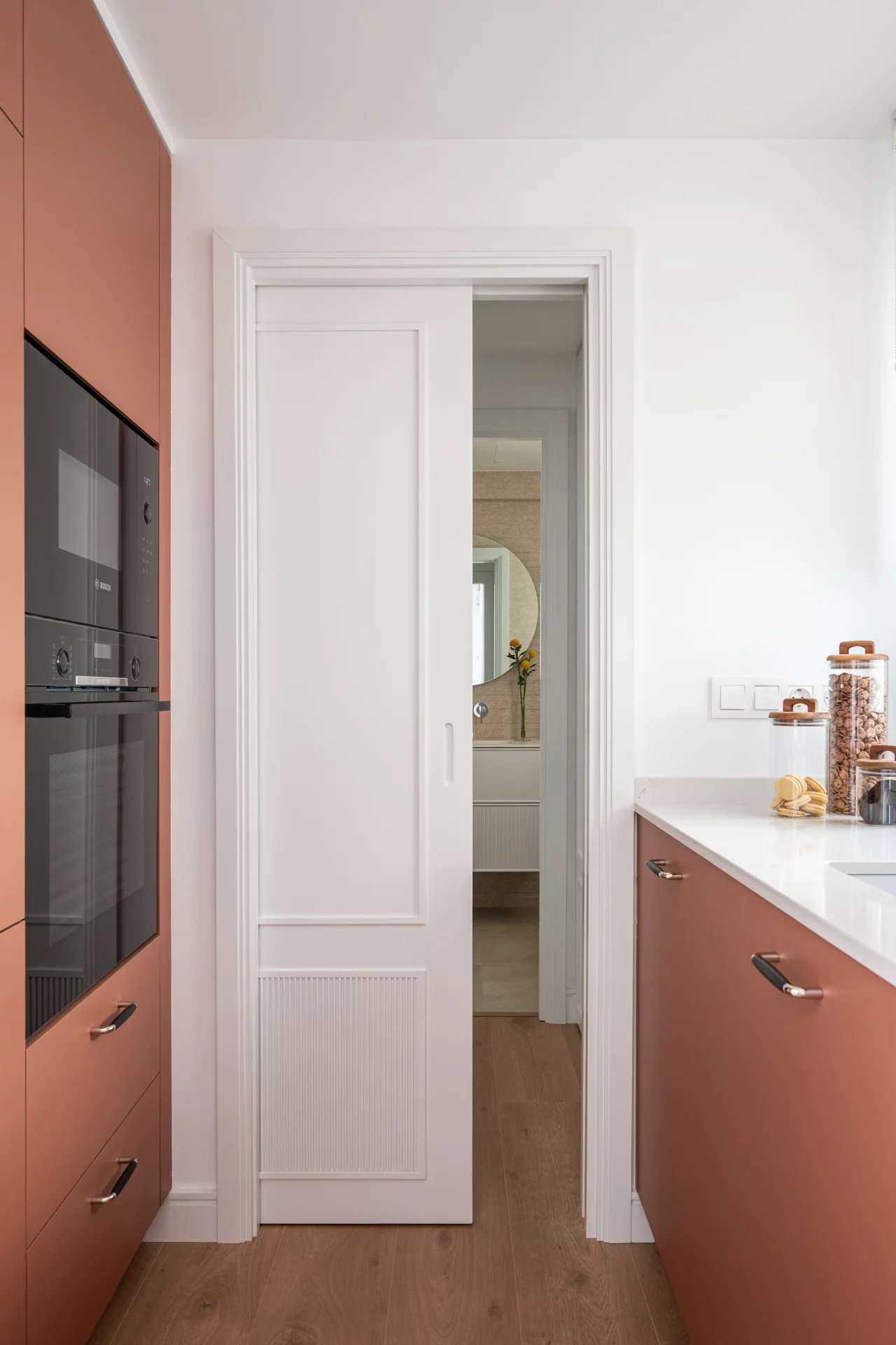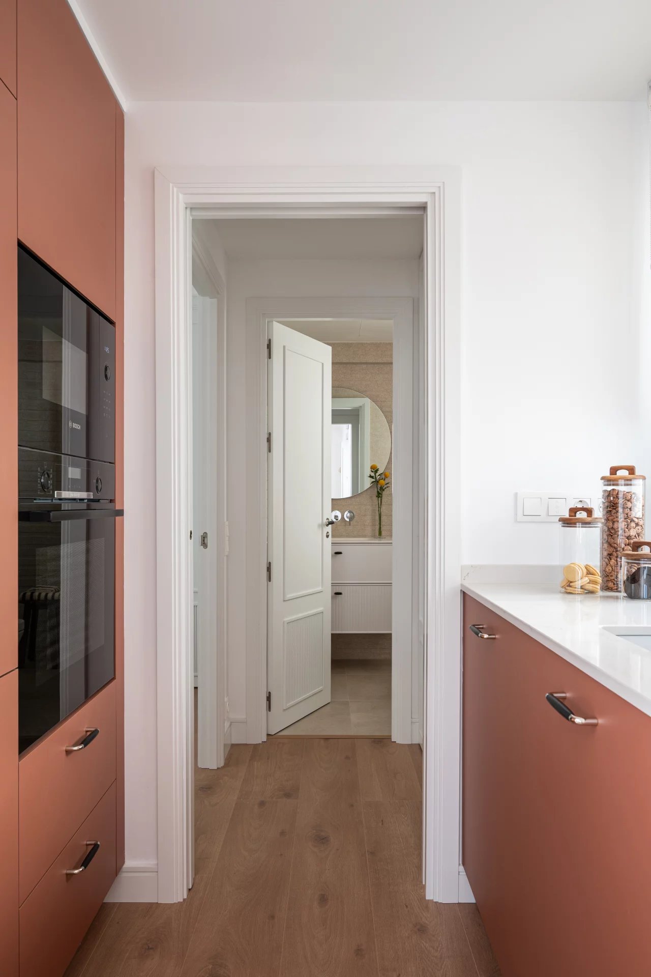 La reforma integral ha sido concebida con un enfoque contemporáneo y elegante, seleccionando materiales nobles y soluciones de diseño de primer nivel. El suelo de tarima laminada de roble natural recorre toda la vivienda, aportando calidez y continuidad visual. La carpintería interior a medida, los armarios empotrados y los acabados de alta gama reflejan una ejecución impecable y una atención minuciosa al detalle.