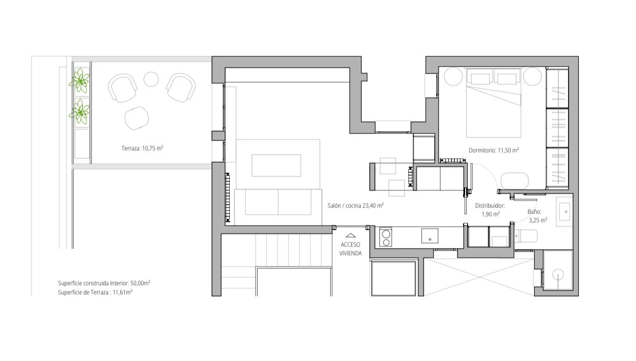 El interiorismo, cuidadosamente diseñado, combina funcionalidad y estética, con una selección de mobiliario de diseño que se integra armoniosamente en cada espacio. La cocina, de líneas limpias y sofisticadas, incorpora mobiliario a medida, encimeras de materiales premium y electrodomésticos de primeras marcas, completamente integrados. Los baños han sido concebidos como auténticos espacios de bienestar, con revestimientos de alta calidad, griferías de diseño y sanitarios de gama superior.