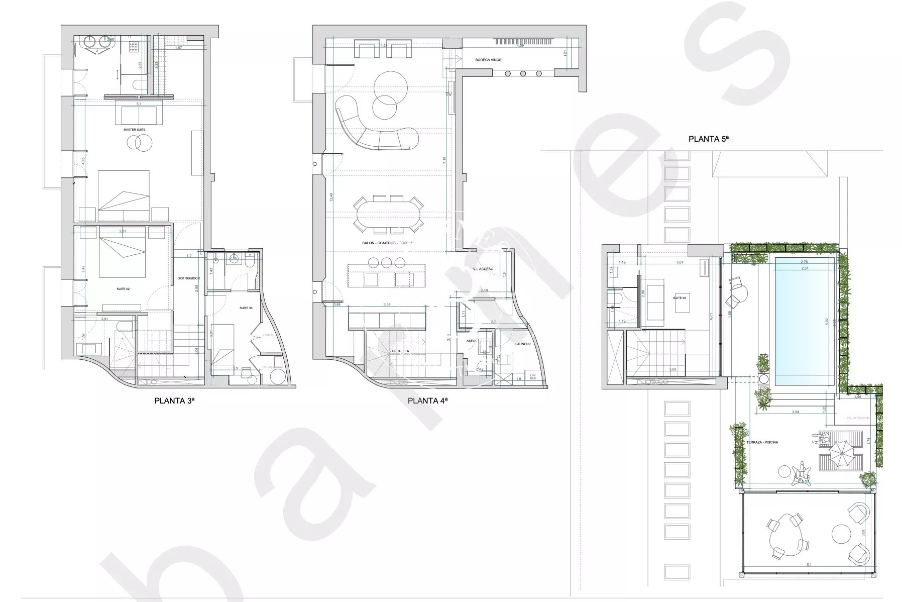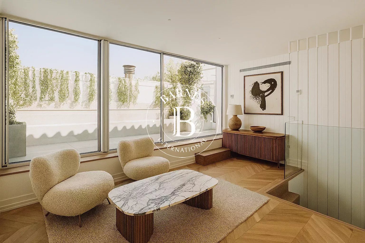 Dispone de una azotea privada de 100 m², que transforma por completo el concepto de vida urbana. Este lujoso tríplex al aire libre alberga una elegante zona de piscina privada, rodeada de un jardín cuidadosamente diseñado, ideal para relajarse. Además dos estudios en suite con amplias cristaleras correderas y vistas despejadas, espacios versátiles que pueden convertirse en una cocina exterior, un despacho de alto nivel o incluso un estudio artístico.