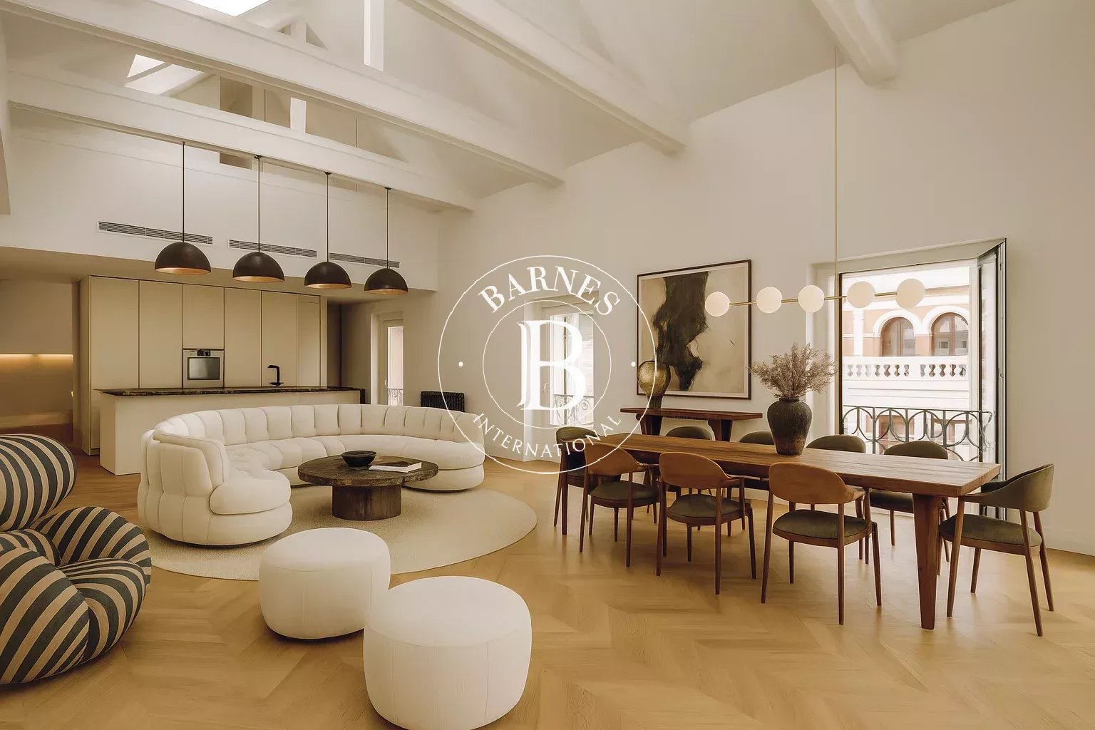 El exclusivo tríplex se beneficia de una excelente orientación sur, garantiza abundante luz natural durante todo el día. Cuenta con seis balcones exteriores y ventanas Velux estratégicamente ubicadas, que inundan los espacios de luz y realzan los techos altos y los detalles arquitectónicos originales, cuidadosamente restaurados.