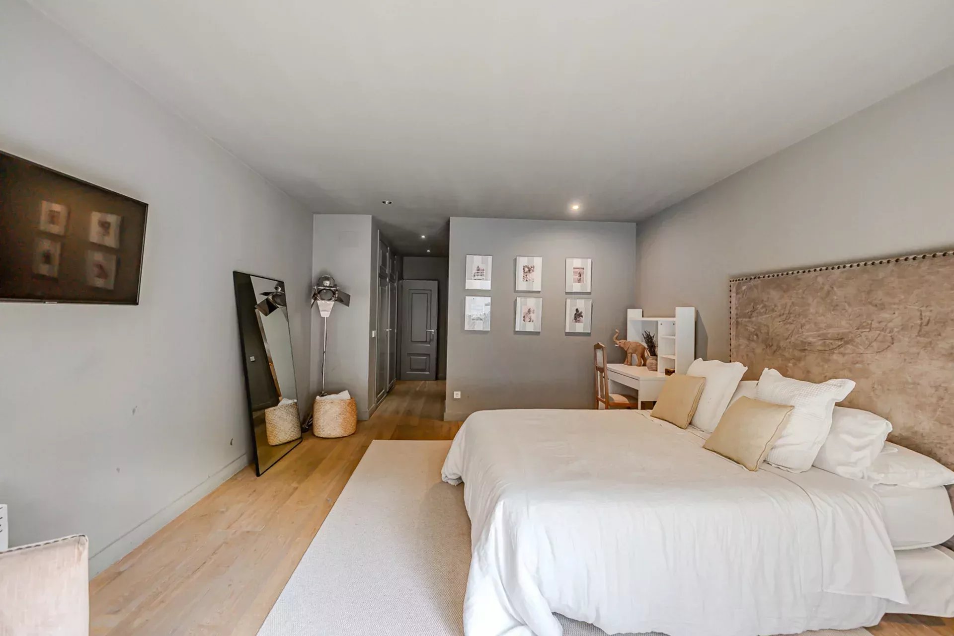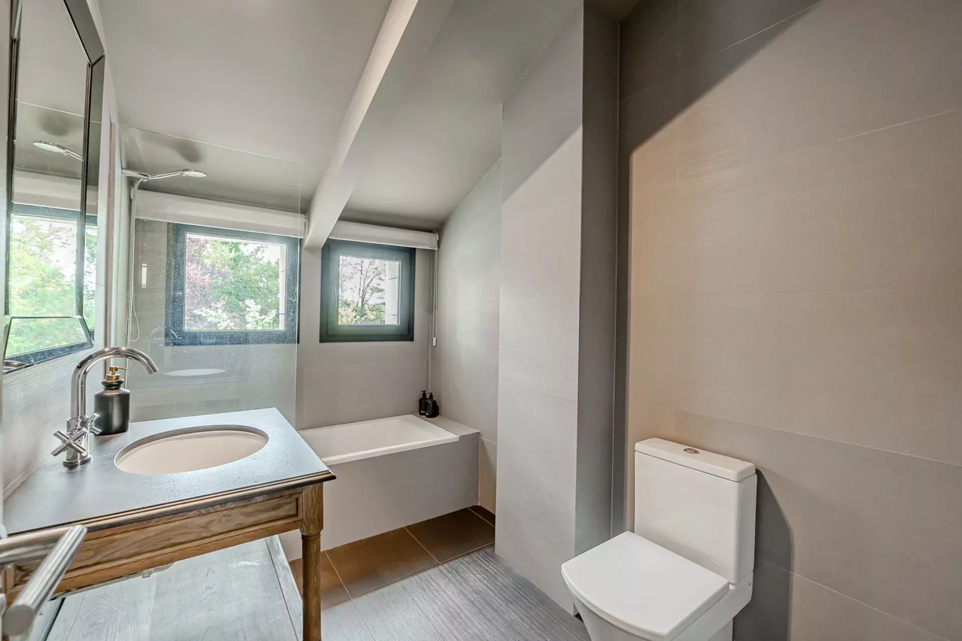 La planta inferior alberga zonas de ocio y descanso, ideales para reuniones familiares, cine en casa o gimnasio privado.