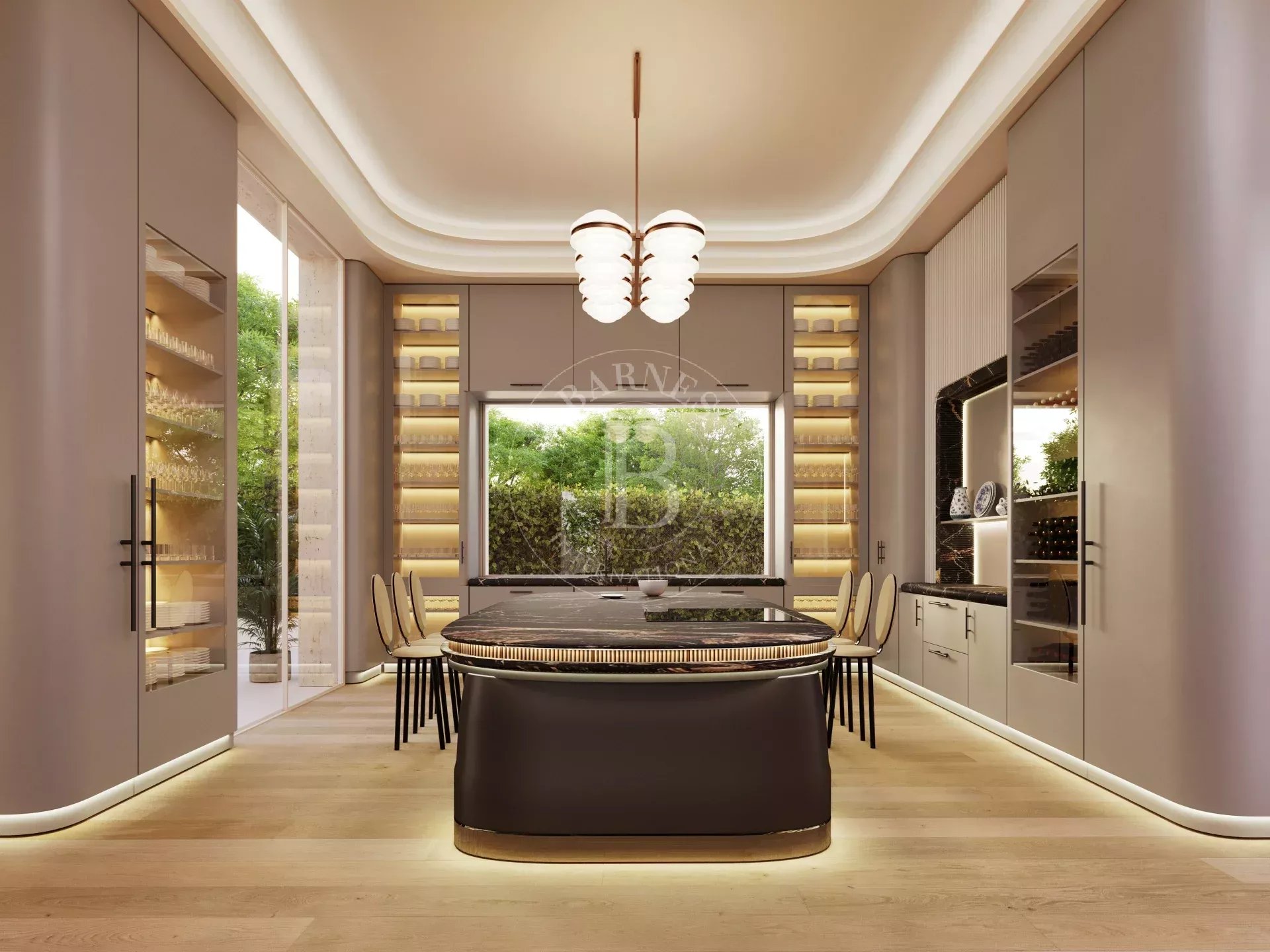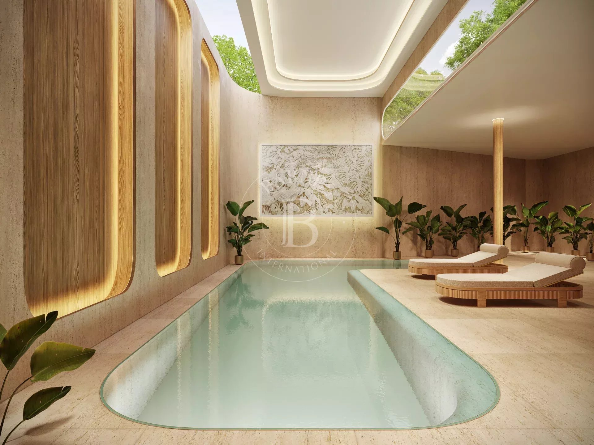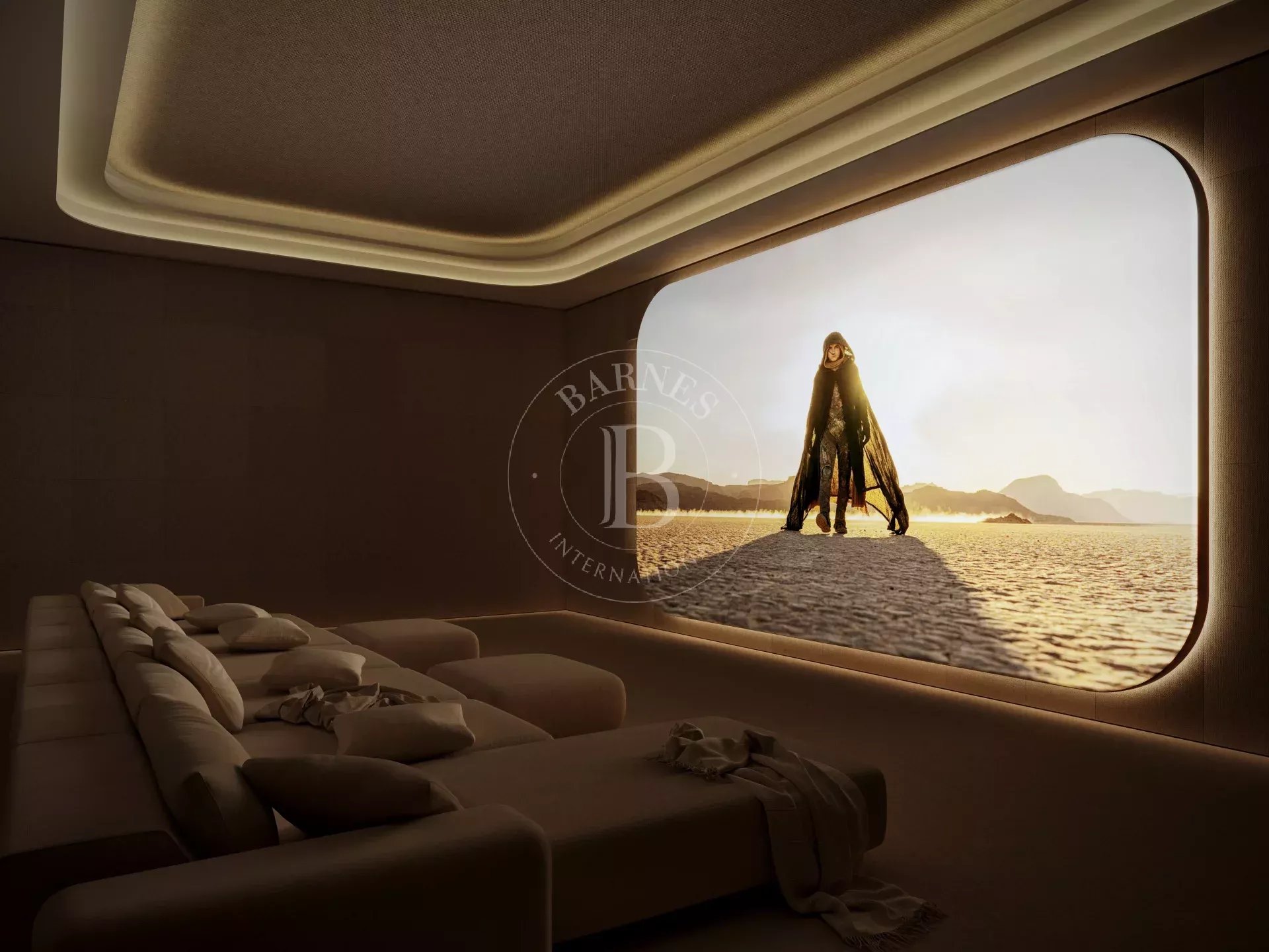 Destacan su impresionante salón de más de 100 m² con vistas al jardín, la cocina de diseño equipada con electrodomésticos de alta gama y las áreas de ocio y bienestar, que incluyen piscina exterior rodeada de vegetación, piscina interior de grandes dimensiones con luz natural, gimnasio, zona wellness, sala de cine y bodega. El conjunto se completa con solárium, áreas de comedor y descanso al aire libre, chimenea exterior, ascensor de diseño y capacidad para hasta ocho vehículos con garaje subterráneo y elevador privado. Todo ello se integra en un entorno paisajístico cuidado al detalle, donde el agua y la vegetación aportan privacidad, serenidad y una experiencia residencial excepcional.