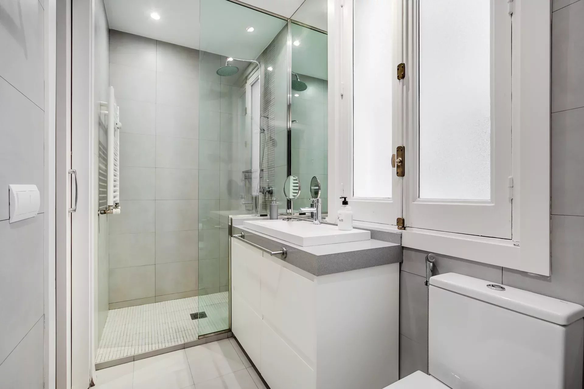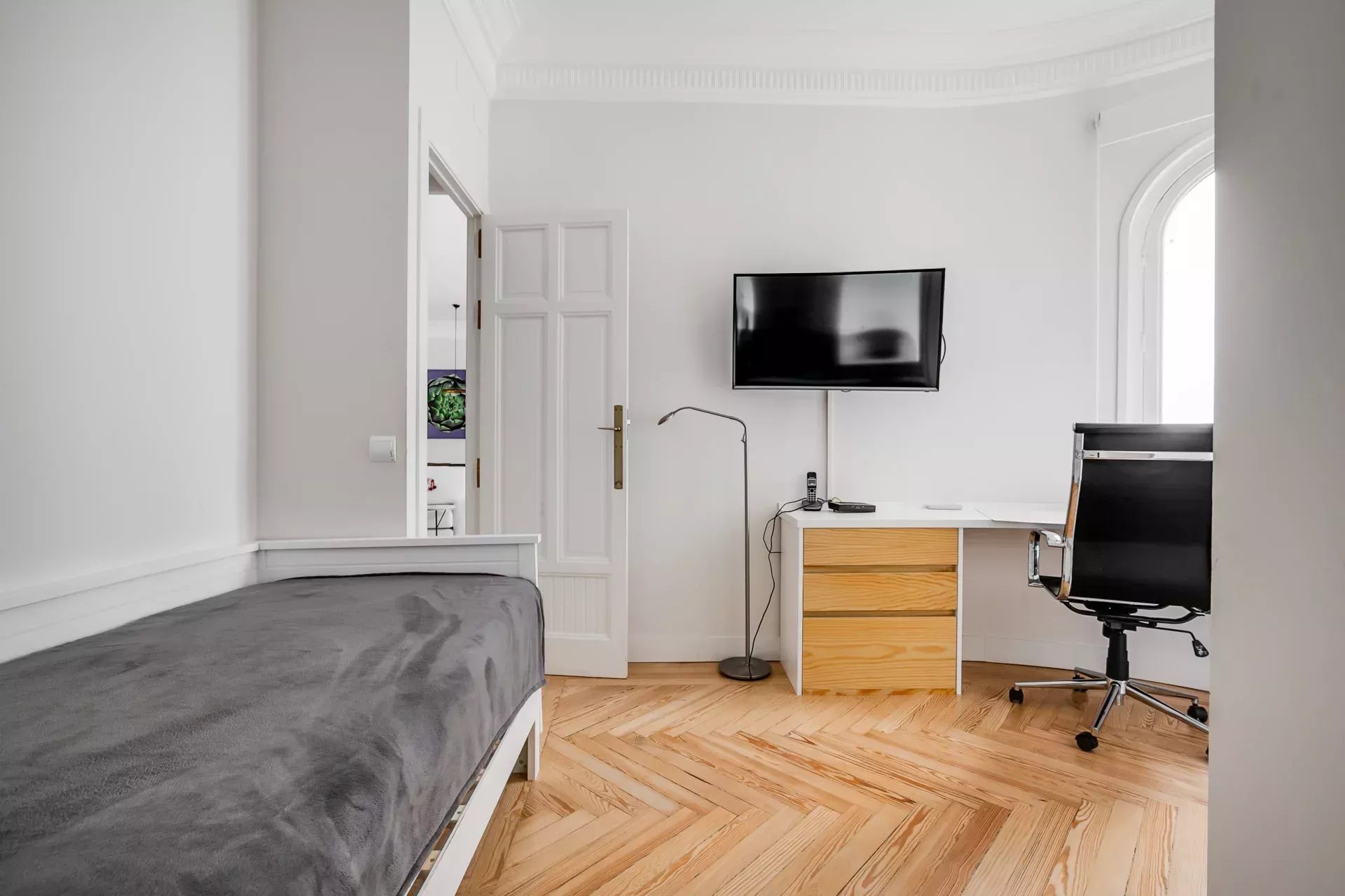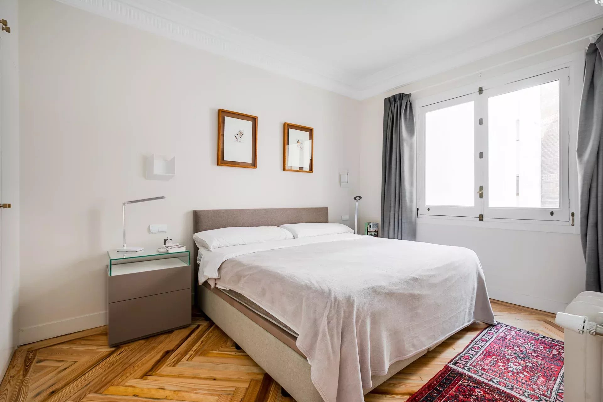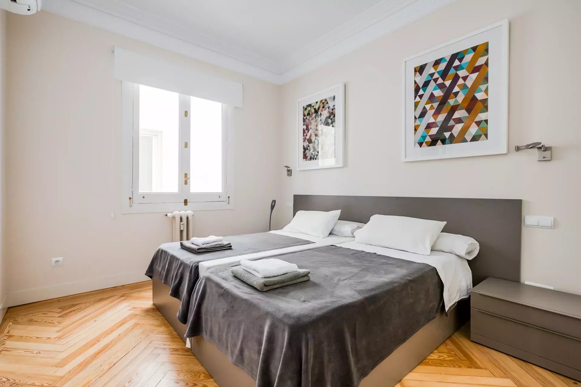 Tras la zona social aparecen los otros dos dormitorios. Comparten un baño completo, con acceso independiente desde cada habitación, aportando privacidad y practicidad a partes iguales. Esta distribución, equilibrada y eficiente, encaja con lo que muchos compradores buscan en viviendas de lujo en venta en el Barrio de Salamanca: confort, luminosidad y una ubicación prime.