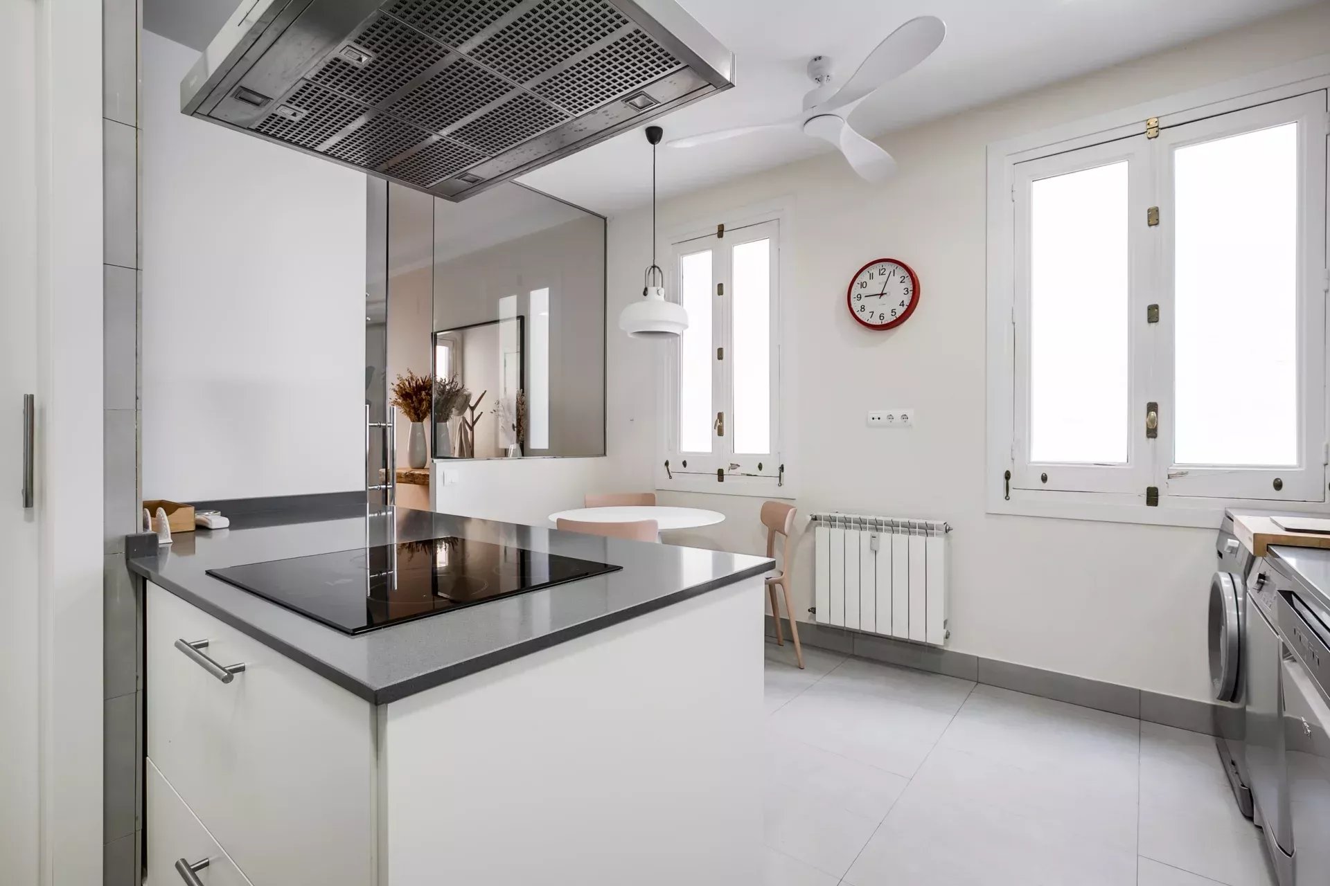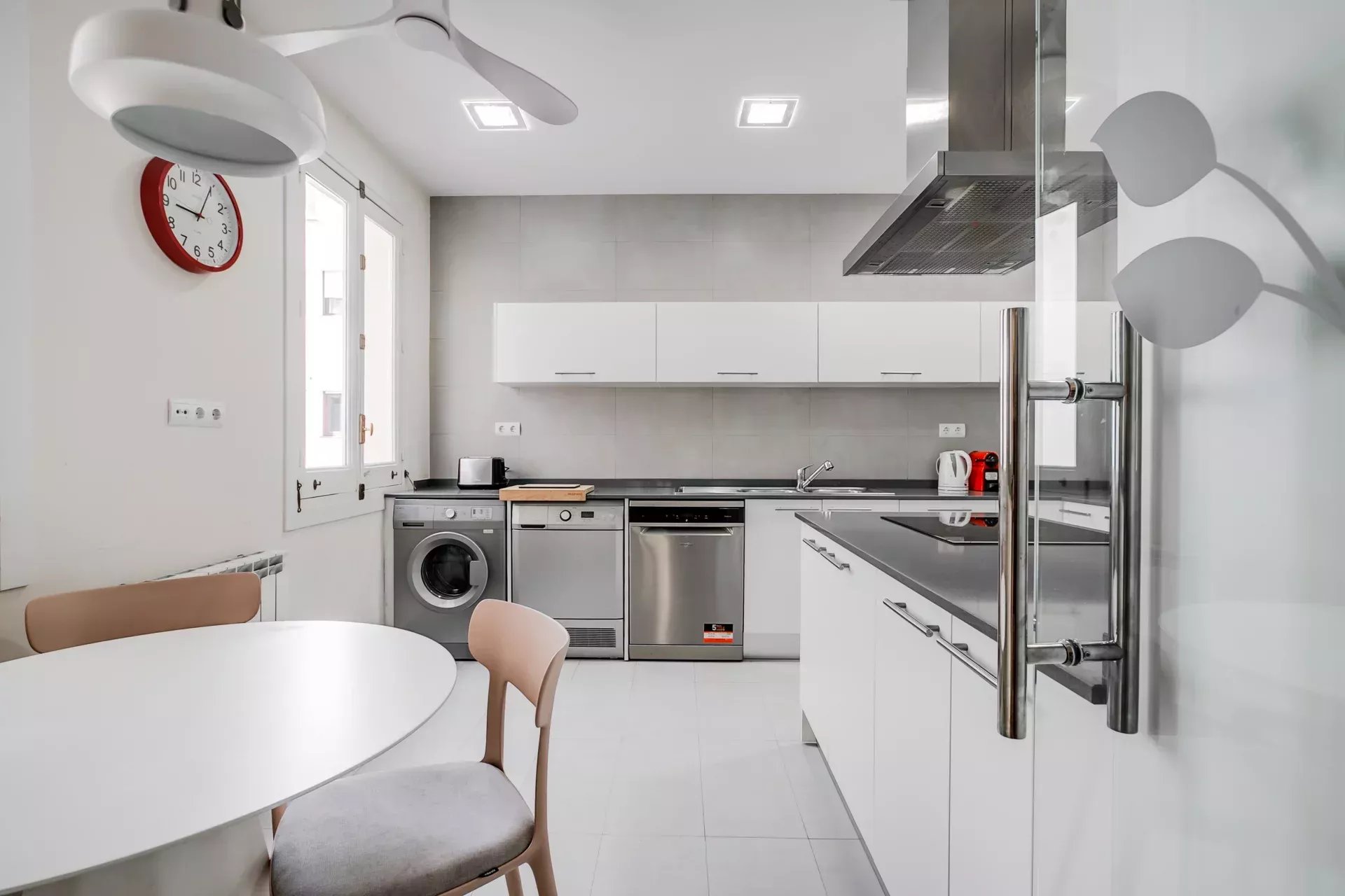 Nada más entrar, a la derecha se encuentra la cocina, completamente equipada con electrodomésticos de alta calidad y un práctico comedor auxiliar. Como en el resto de la casa, la luz natural está muy presente, generando un espacio cómodo para el día a día. Junto al recibidor se ubica el baño de cortesía y, a continuación, el acceso al dormitorio principal en suite y al amplio salón-comedor, perfecto para reuniones y vida familiar.