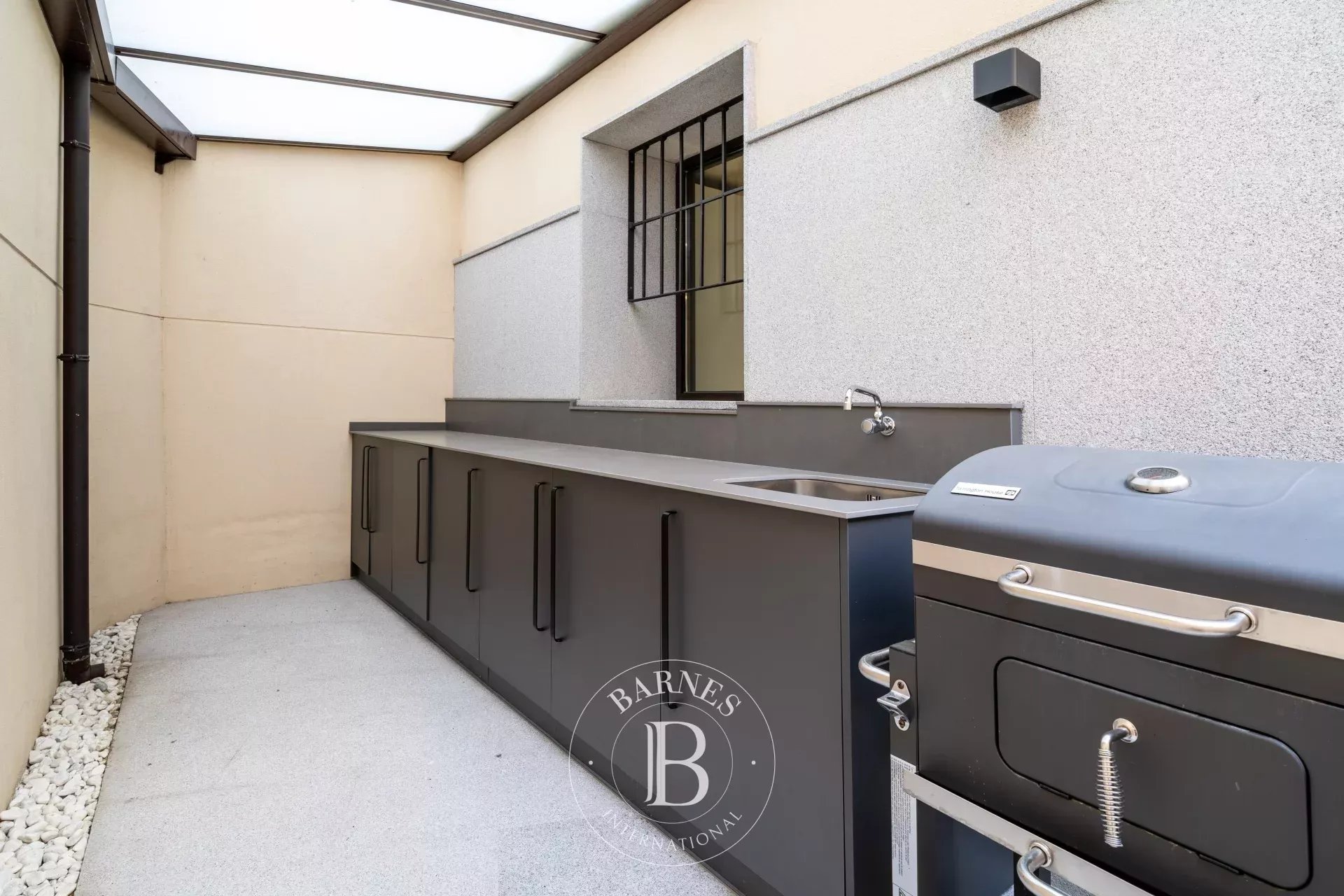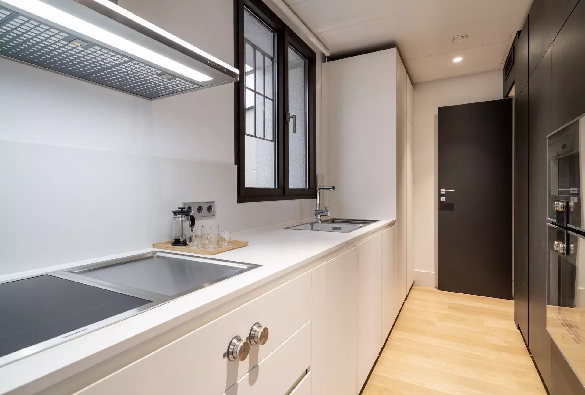 Este magnífico dúplex de 194 metros construidos consta en planta baja de un amplio y luminosos salón gracias a los ventanales que dan al jardín privado; la cocina abierta con electrodomésticos Gaggenau, incluyendo una cava de vinos y una máquina de hielos y un aseo de cortesía.
