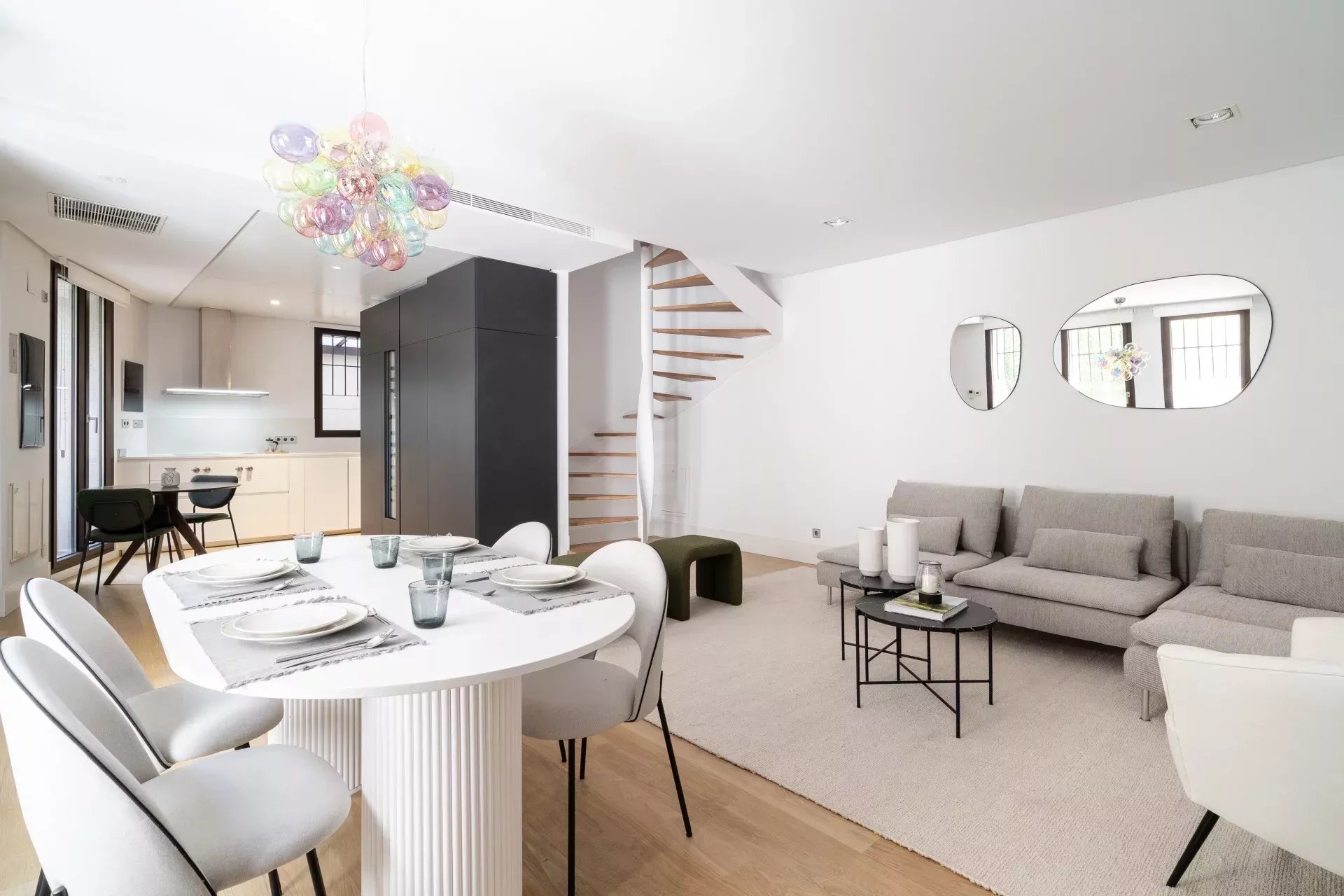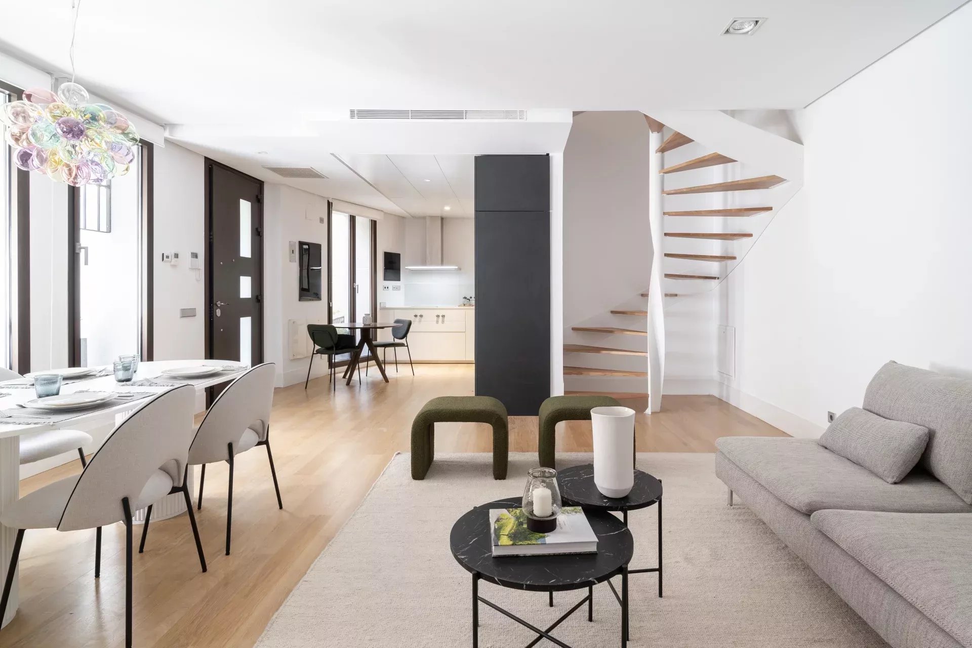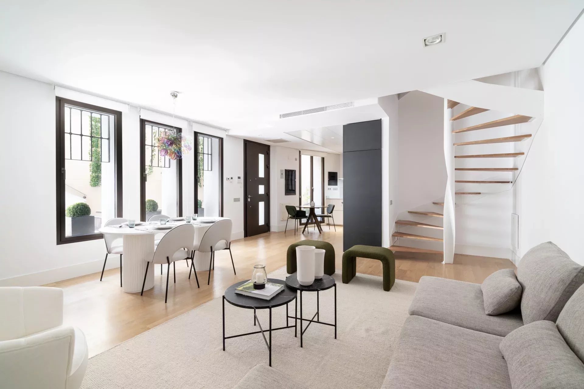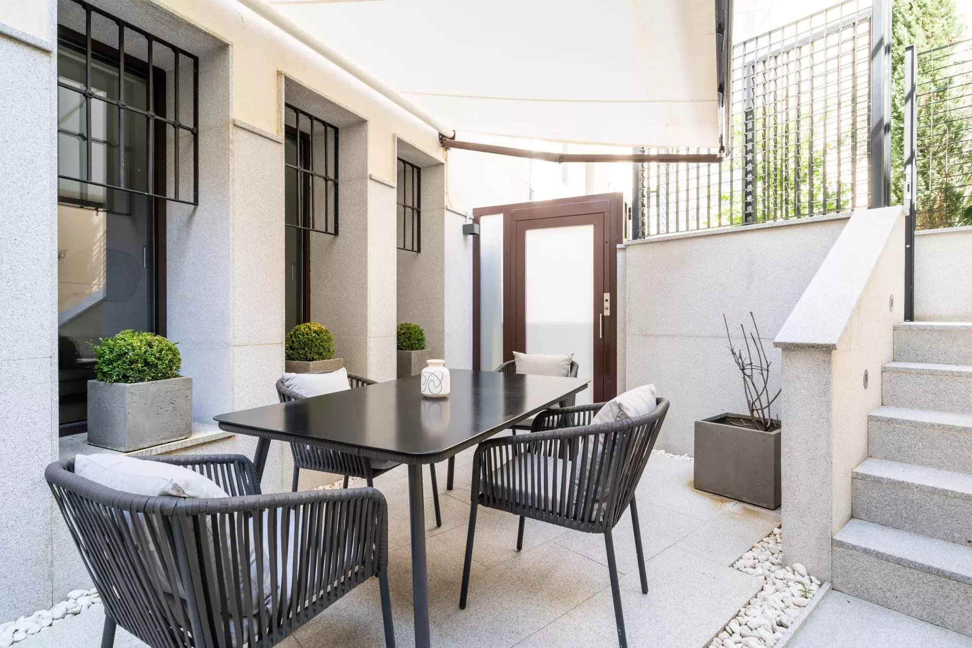 BARNES Madrid presenta este dúplex de obra nueva con jardín, en el restaurado Palacete de Ramón y Cajal. Una construcción histórica que ha sido renovada por completo, manteniendo los elementos arquitectónicos de la época.