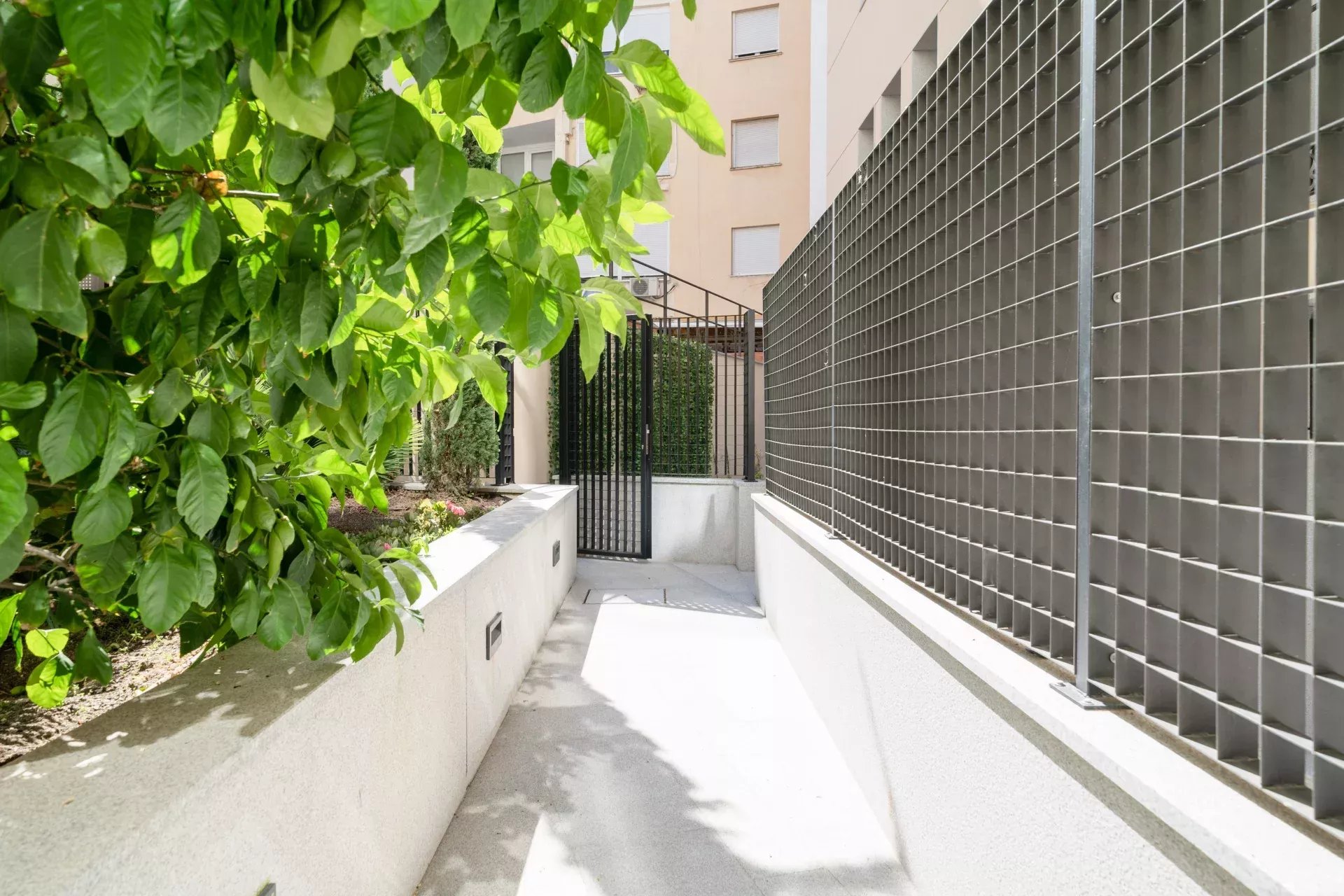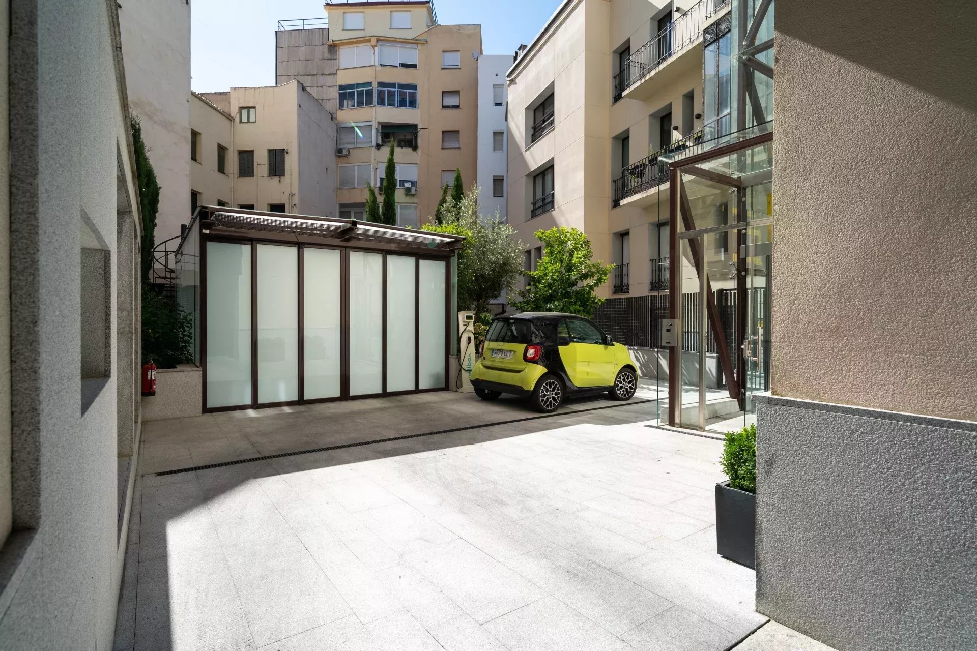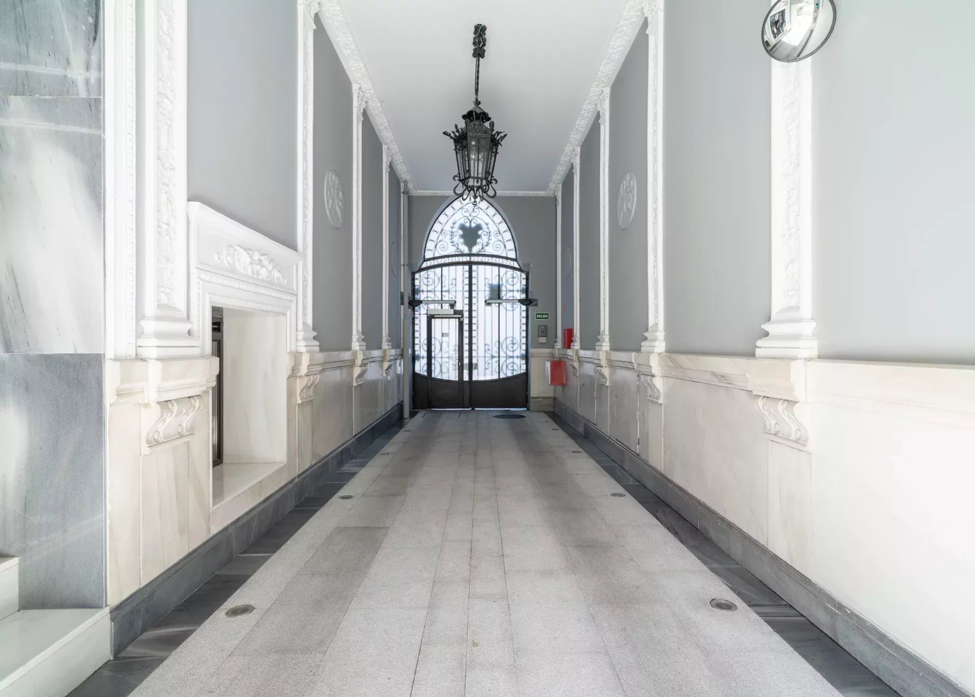 Al edificio se accede por un espectacular portal de principios del siglo XX que ha sido completamente rehabilitado, llegando al patio comunitario, donde se encuentra la entrada del parquin robotizado.