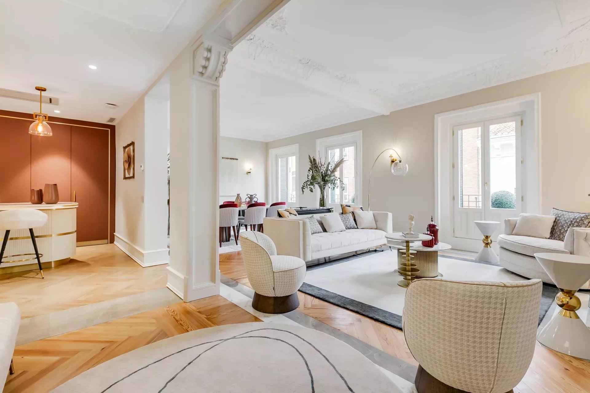 Este refinado piso de techos altos, recientemente reformado por un destacado despacho de arquitectura, es un auténtico tesoro moderno.
