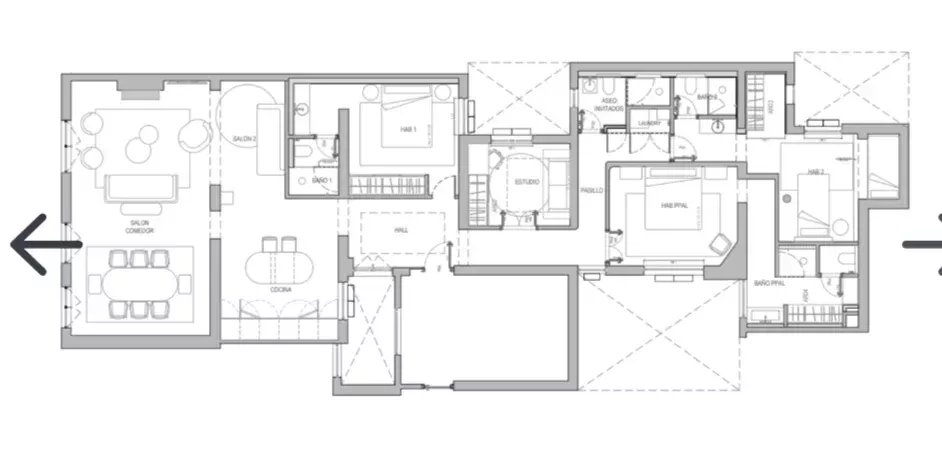 Desde aquí, podrás acceder a una amplia zona de recibo, compuesta por un luminoso salón con tres balcones a la calle que inundan el espacio de luz natural. Este salón ha sido dividido, estratégicamente, en diferentes zonas de estar y comedor, proporcionando un ambiente acogedor y versátil.