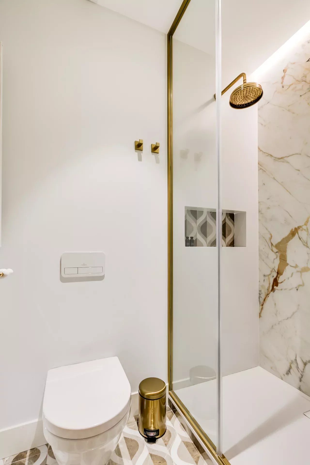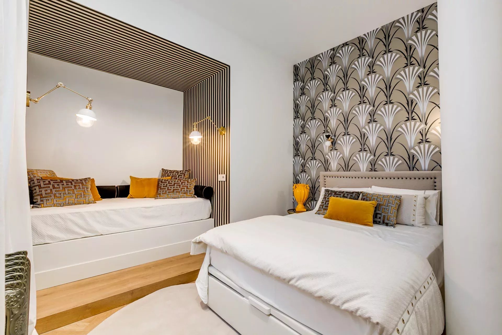 Tiene aire acondicionado por conductos, molduras modernistas rehabilitadas, suelo de pino original, persianas eléctricas, iluminación indirecta por led, cocina con electrodomésticos de alta gama.