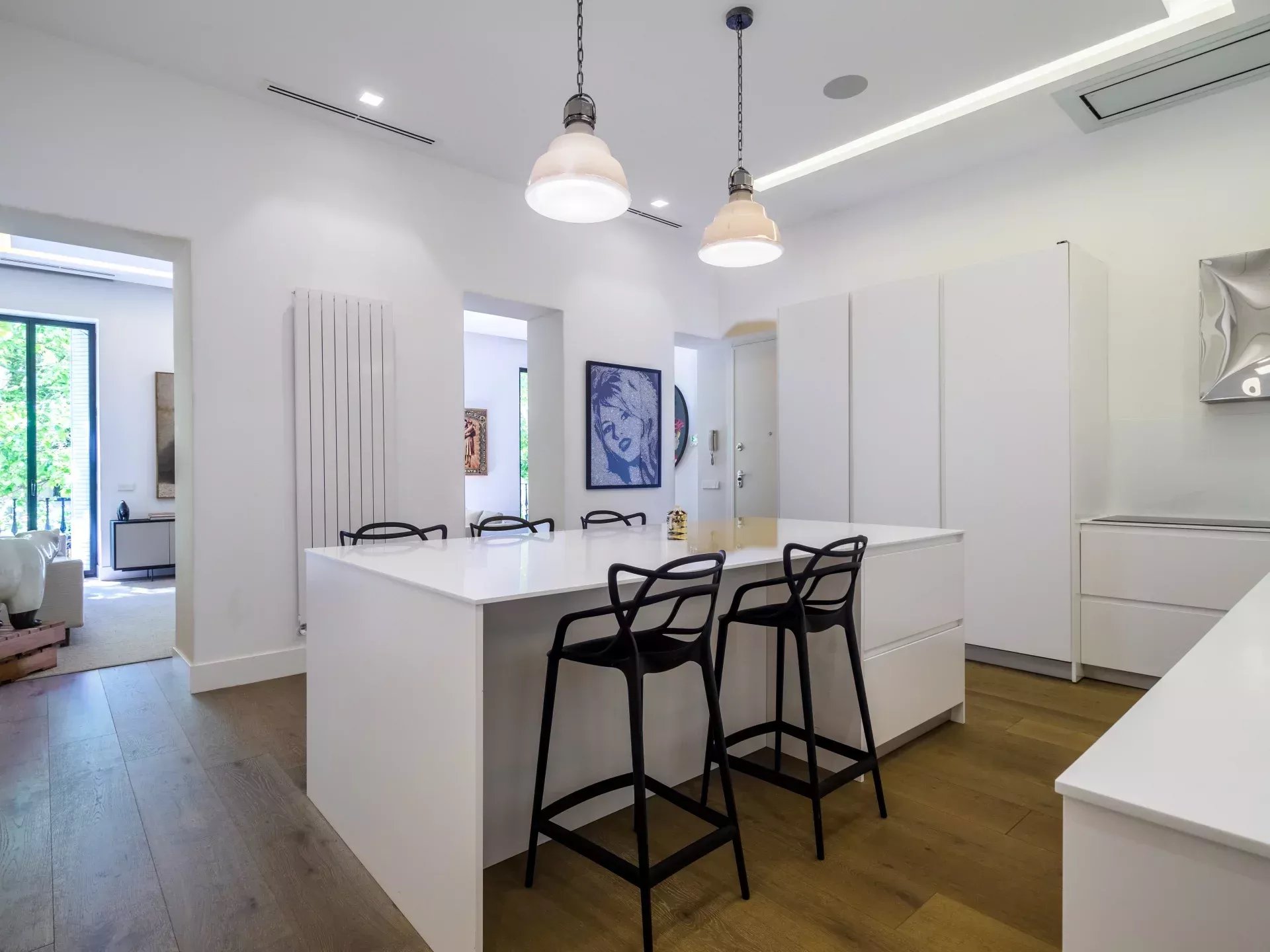 BARNES Madrid presenta este elegante piso exterior reformado de 204 m² en el prestigioso Barrio de Salamanca, zona Castellana. La vivienda se entrega lista para entrar a vivir, con acabados contemporáneos, líneas limpias y una cuidada selección de materiales que aportan sofisticación, amplitud y gran luminosidad. Dispone de tres dormitorios en suite, aseo de cortesía, amplio salón con vistas a la calle Serrano y cocina americana totalmente equipada con electrodomésticos premium, configurando un espacio funcional y representativo para la vida diaria y el entretenimiento.