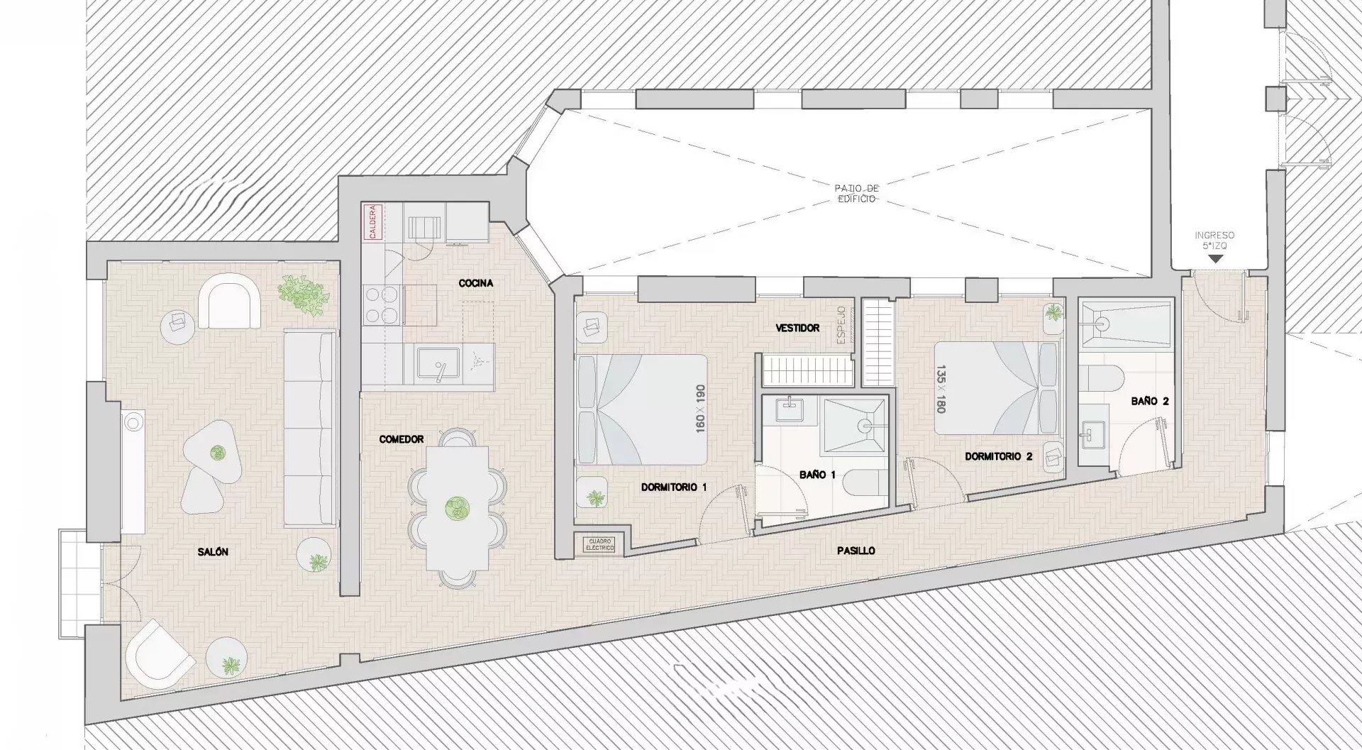 Su orientación y altura permiten una excelente entrada de luz natural durante todo el día, creando un ambiente cálido y acogedor. La zona, rodeada de comercios exclusivos, restaurantes, servicios y espacios culturales, está perfectamente comunicada por transporte público.