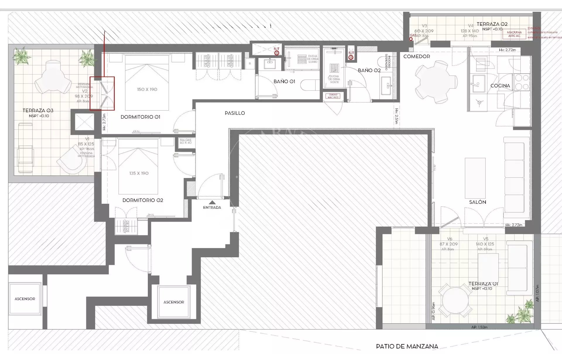 El inmueble se orienta a un amplio patio de manzana, lo que garantiza tranquilidad y silencio, y cuenta con espacios exteriores ideales para disfrutar del aire libre en un entorno urbano consolidado. Su orientación noroeste aporta una luz suave y agradable durante el día.