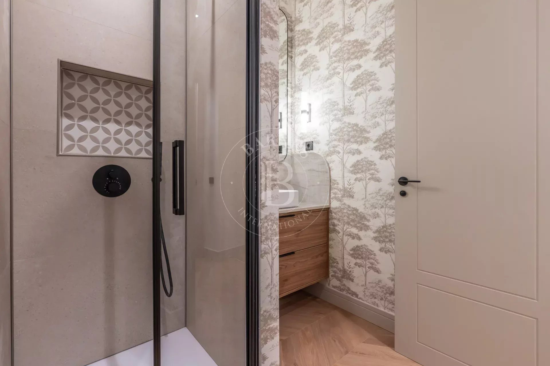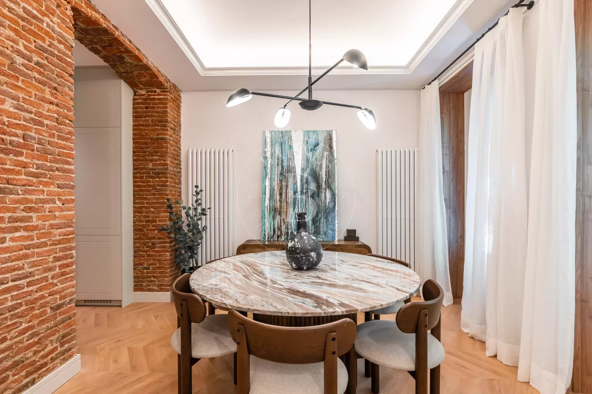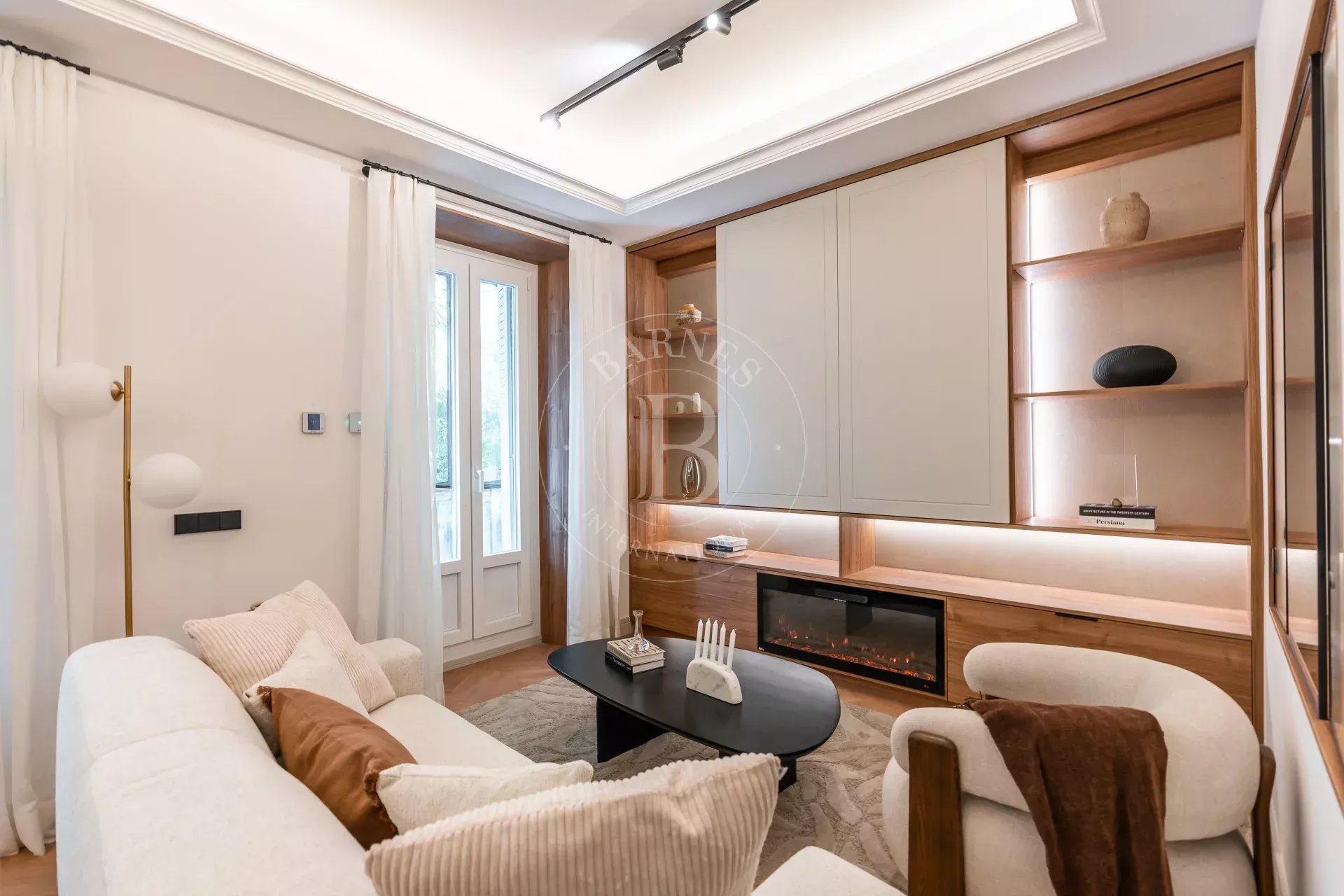 El piso ha sido diseñado con una distribución moderna y funcional, ofreciendo un amplio salón con cocina americana integrada y equipada con isla, creando un espacio abierto ideal tanto para el día a día como para recibir invitados. Dispone de dos dormitorios y dos baños completos, incluyendo una suite principal con baño privado. La reforma, de alta calidad, combina elementos clásicos con un estilo contemporáneo, dando lugar a un ambiente sofisticado y acogedor.