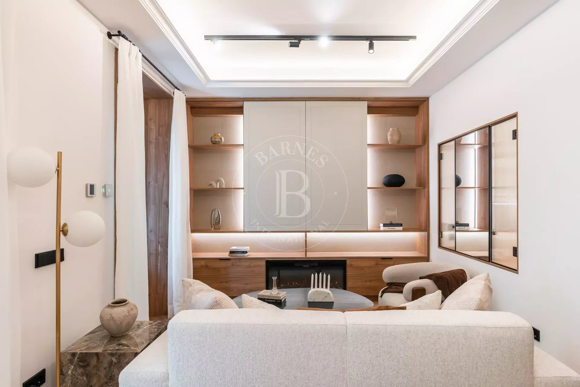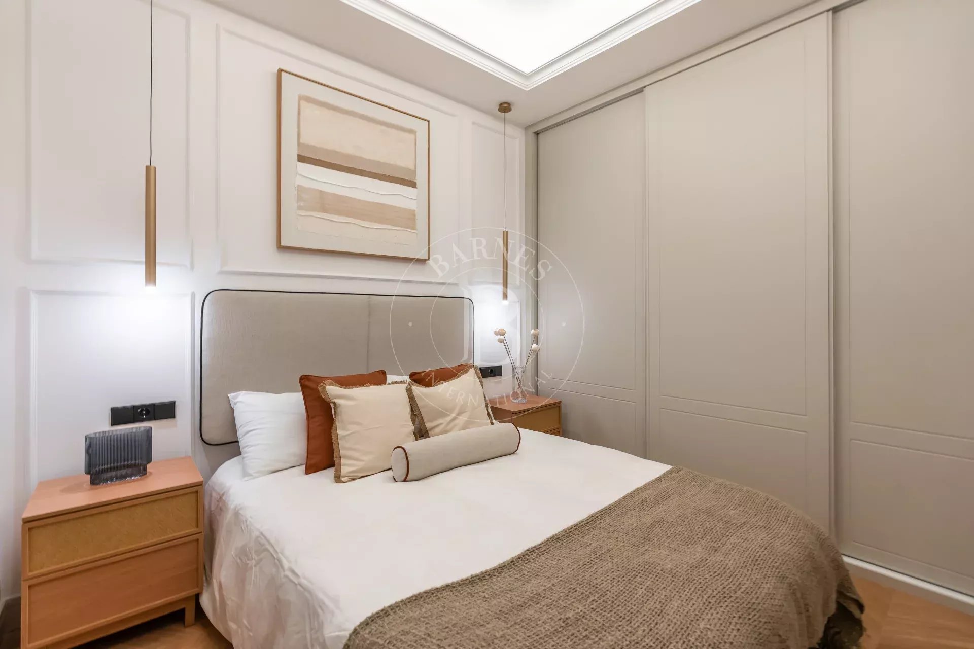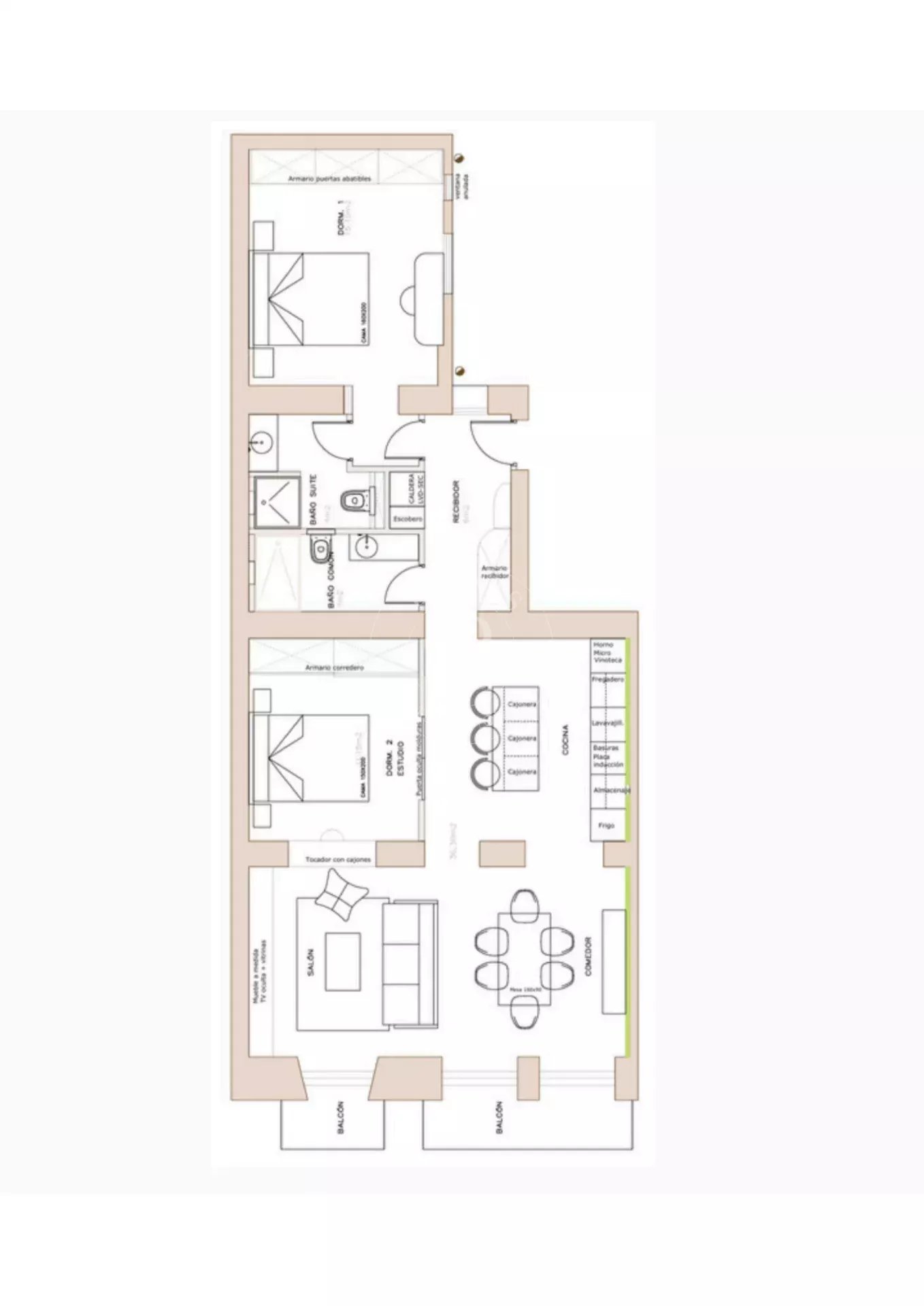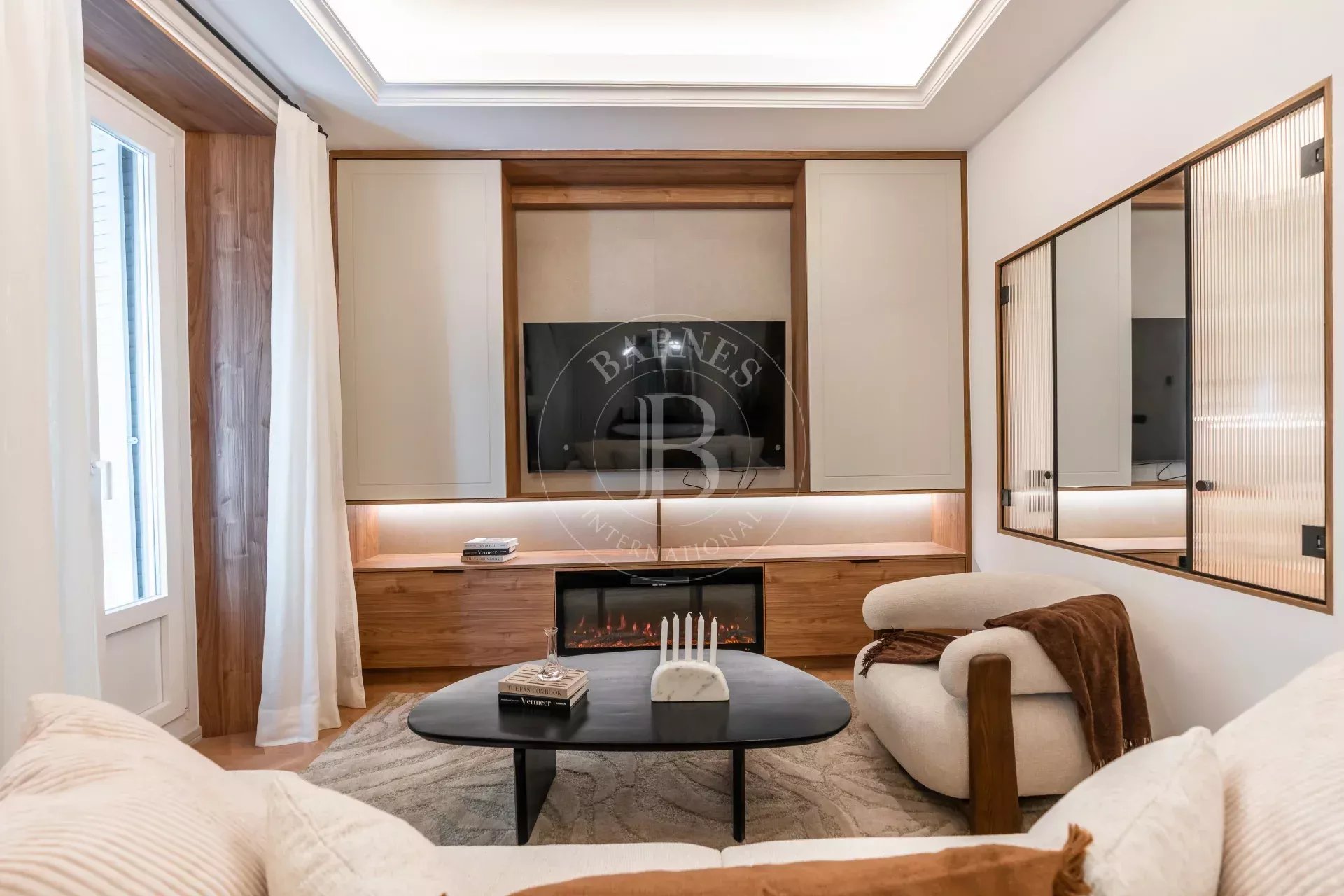 El piso ha sido diseñado con una distribución moderna y funcional, ofreciendo un amplio salón con cocina americana integrada y equipada con isla, creando un espacio abierto ideal tanto para el día a día como para recibir invitados. Dispone de dos dormitorios y dos baños completos, incluyendo una suite principal con baño privado. La reforma, de alta calidad, combina elementos clásicos con un estilo contemporáneo, dando lugar a un ambiente sofisticado y acogedor.