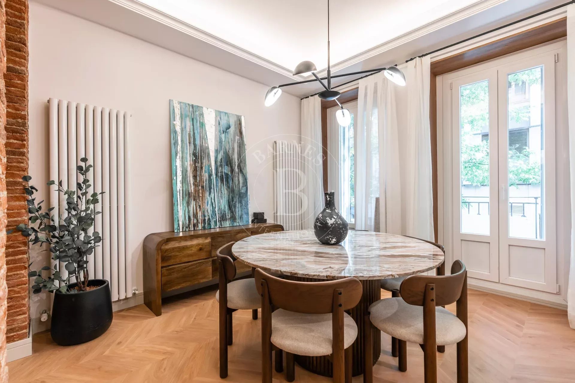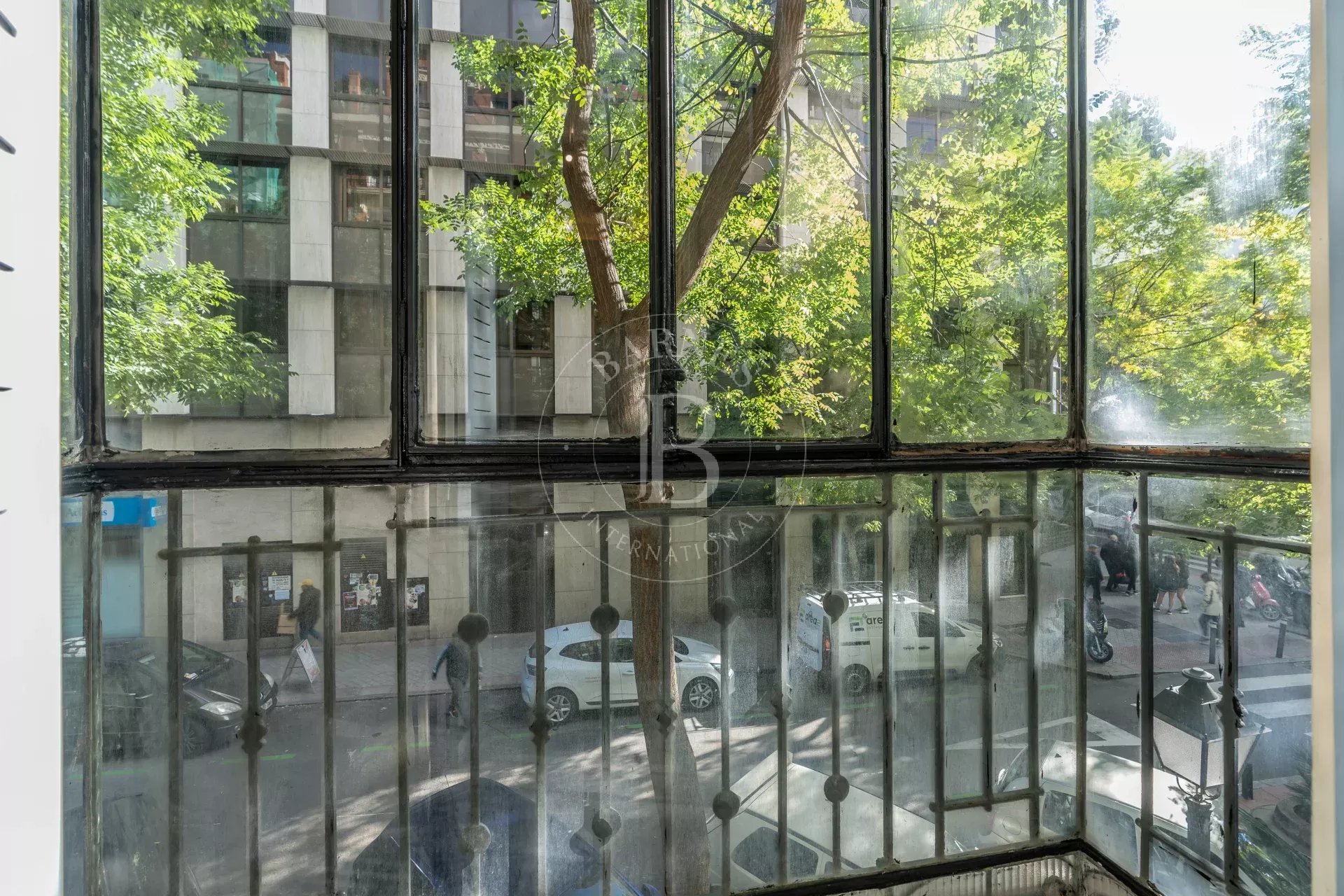 BARNES Madrid presenta este elegante piso exterior completamente reformado, ubicado en un edificio señorial con ascensor y servicio de portero. Situado en una primera planta, la vivienda destaca por su encanto y luminosidad, gracias a sus dos balcones y un agradable mirador con vistas a la calle, que aportan amplitud y una conexión única con el entorno.