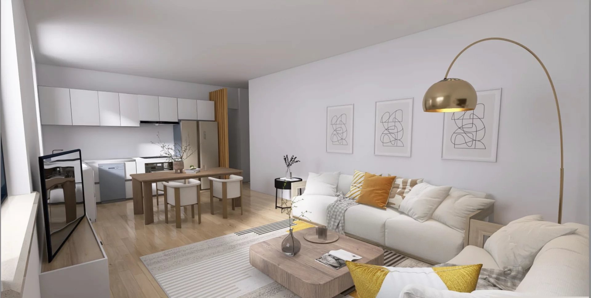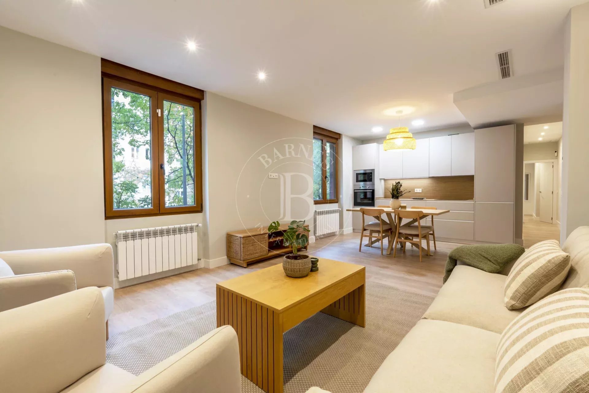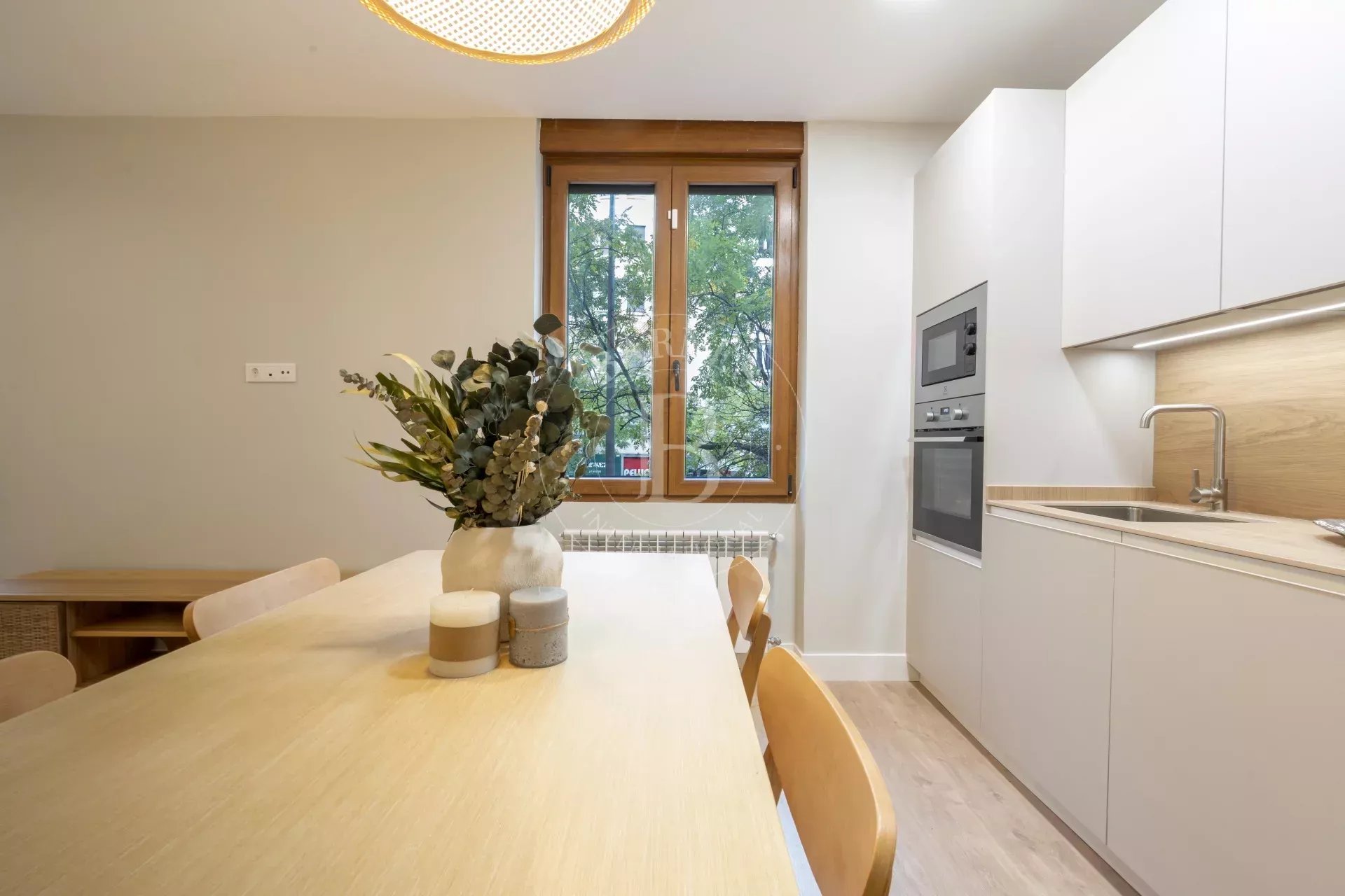 El inmueble es totalmente exterior y se beneficia de abundante luz natural gracias a sus siete ventanales que bañan sus 113 m². La zona de día cuenta con un espacio abierto de más de 30 m² que integra salón, comedor y cocina de diseño con electrodomésticos de alta gama. Una distribución moderna y fluida, ideal tanto para la vida diaria como para recibir invitados.