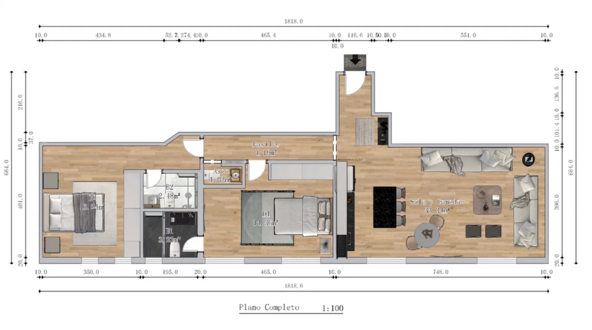 Materiales de primera calidad, suelos de madera natural y carpintería a medida subrayan la excelencia de la reforma, actualmente en su fase final. El futuro propietario podrá disfrutar de un hogar completamente nuevo, con estética moderna y funcional.