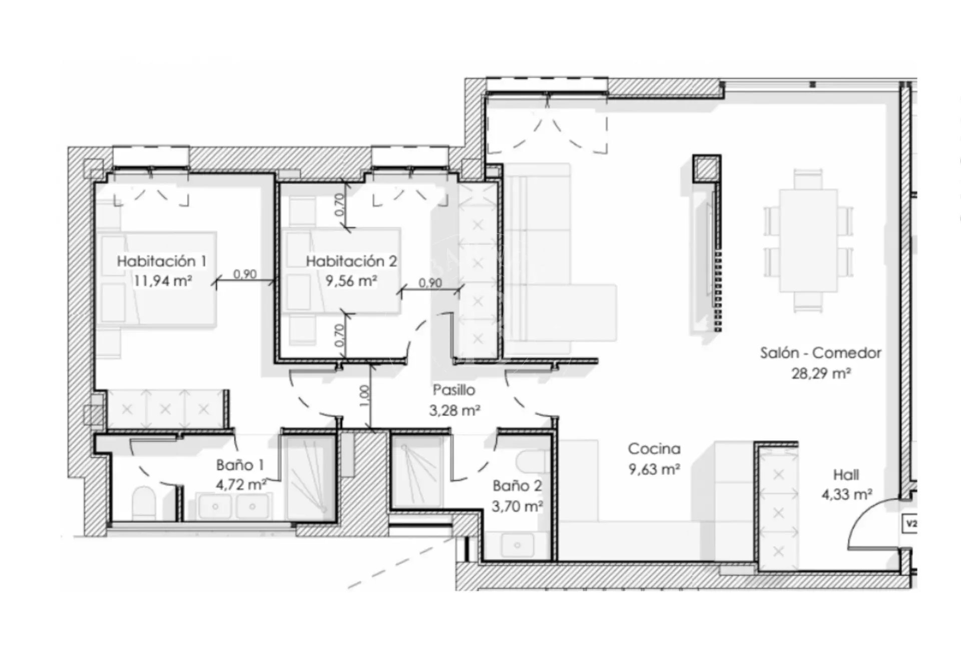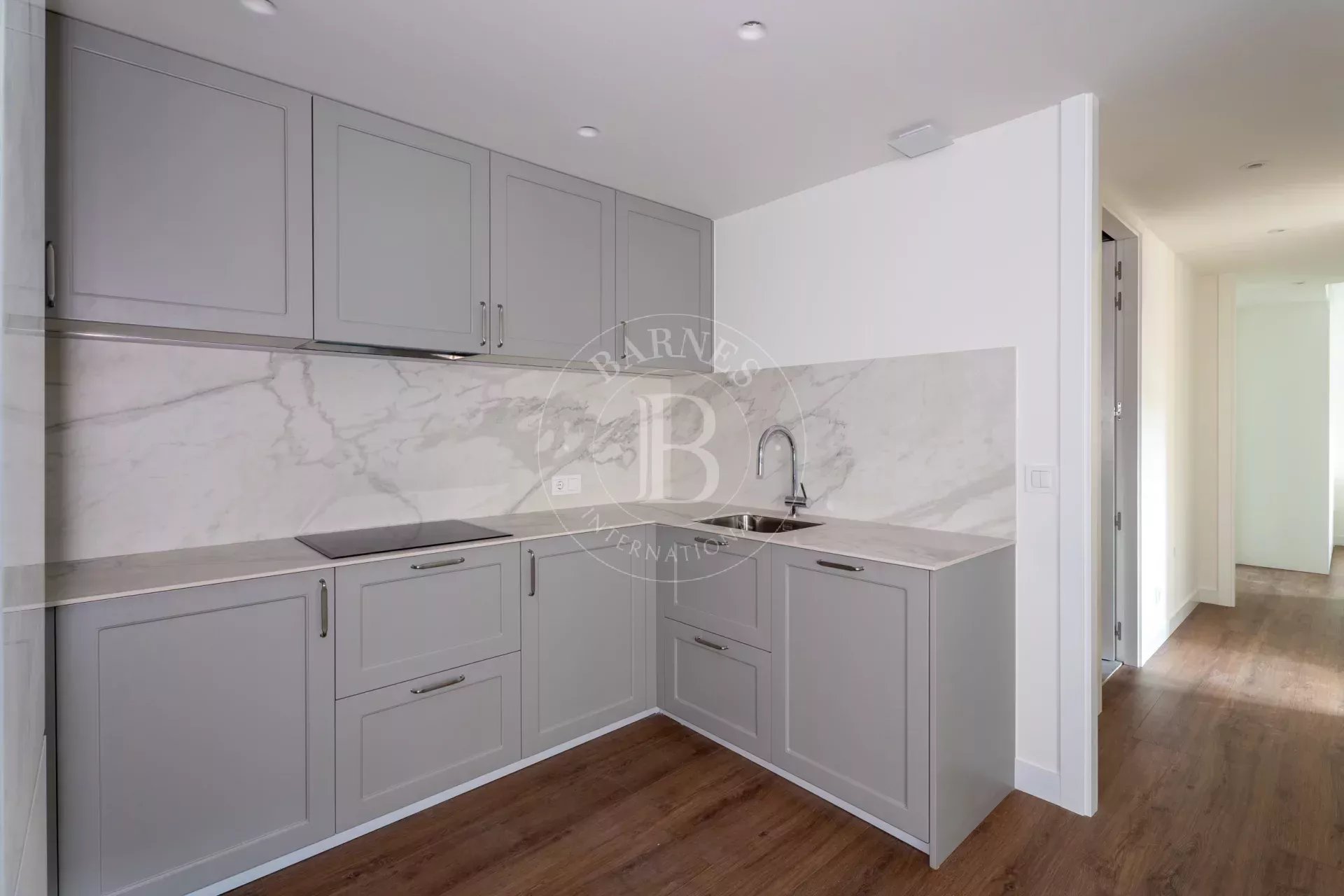 Con una superficie aproximada de 115 m², la propiedad destaca por su diseño contemporáneo y funcional. Dispone de dos amplios dormitorios, dos baños completos y una agradable zona de día que integra un espacioso salón-comedor con grandes ventanales y una cocina abierta equipada con electrodomésticos integrados y acabados de primera calidad. La reforma ha sido realizada con atención al detalle, combinando materiales nobles, tonos neutros y una iluminación cuidadosamente planificada para potenciar la amplitud y la luminosidad.