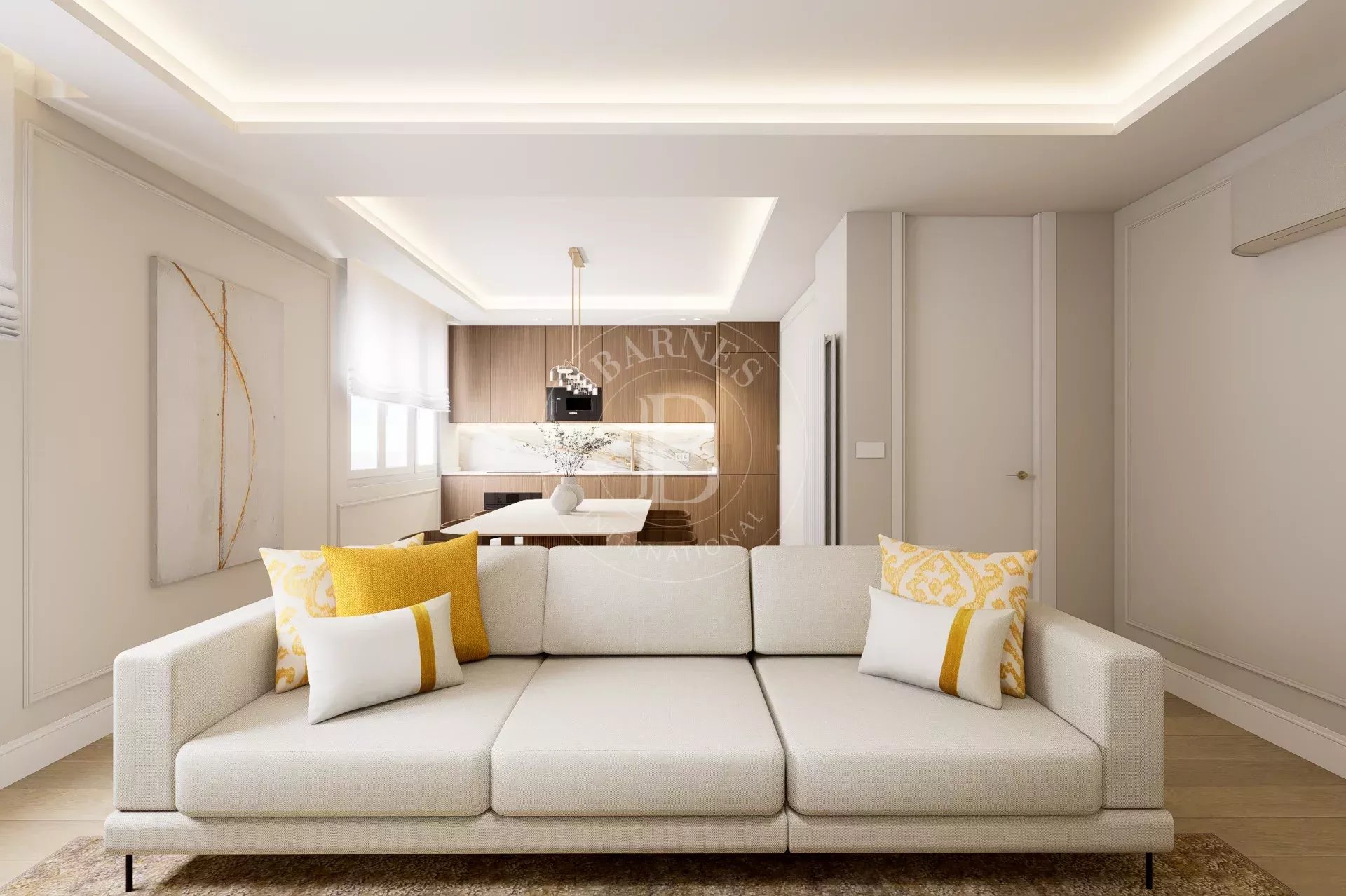 Barnes Madrid presenta esta vivienda íntegramente reformada y amueblada en una séptima planta exterior con orientación sureste. Con 115 m² catastrales y 92 m² útiles, su distribución es uno de sus grandes atractivos, claramente organizada para ofrecer comodidad, privacidad y funcionalidad.
