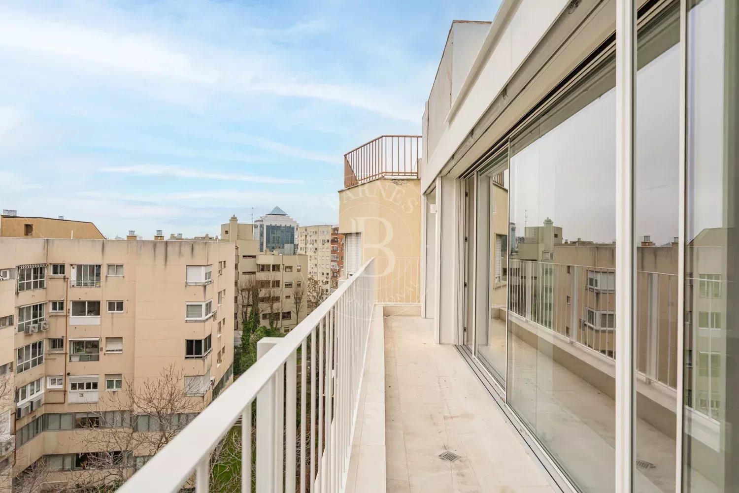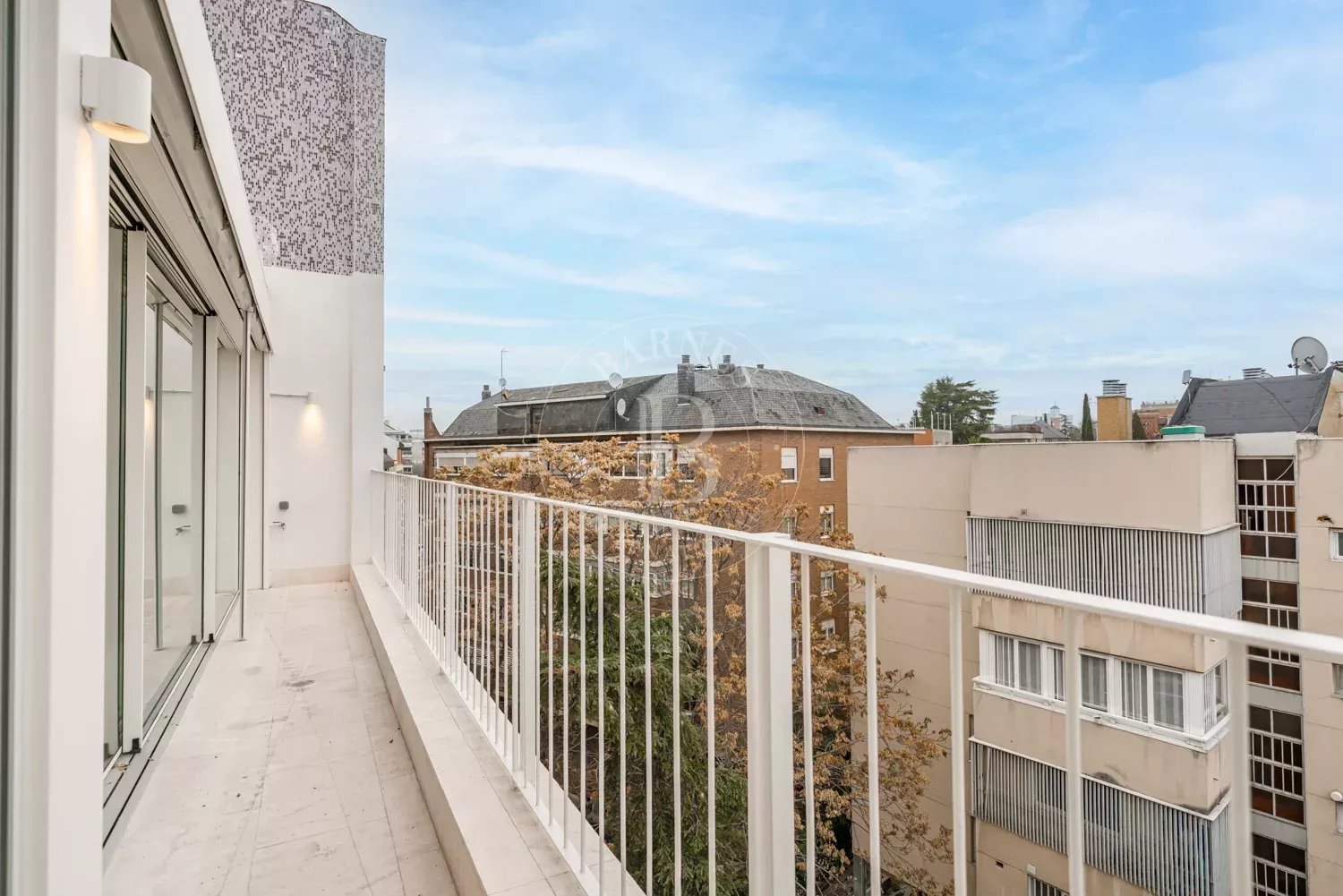 El inmueble se ubica en la última planta de un edificio residencial de 1958, representativo de la arquitectura de calidad del barrio, que conserva elementos originales como su fachada de piedra caliza y una cuidada integración urbana. En esta planta se desarrolló un ático con una superficie total construida de 112m2, con terraza orientada al suroeste que garantiza una excelente iluminación natural, ventilación cruzada y vistas despejadas, aportando un alto nivel de confort y privacidad.
