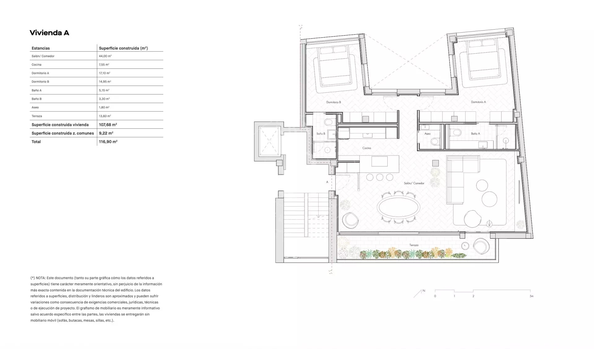 El proyecto de reforma integral, diseñado por NOEMA, transforma el espacio en dos viviendas contemporáneas de aproximadamente 105 m² cada una, concebidas para ofrecer funcionalidad, elegancia y amplitud. Cada ático dispone de dos dormitorios con baño en suite y un aseo de cortesía, además de una generosa zona de salón-comedor con cocina integrada, abierta al exterior mediante grandes ventanales que conectan directamente con la terraza privada, reforzando la relación interior-exterior.