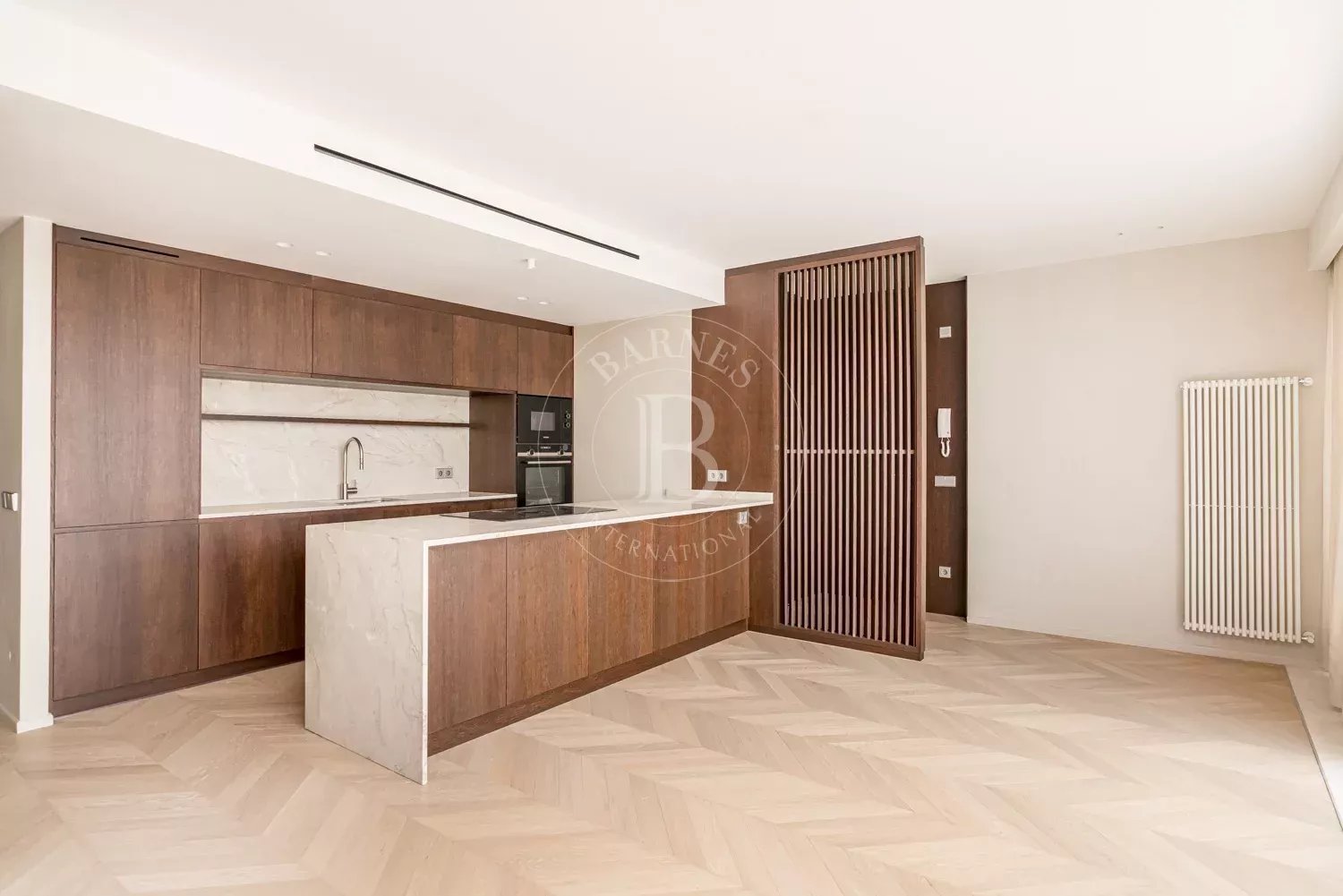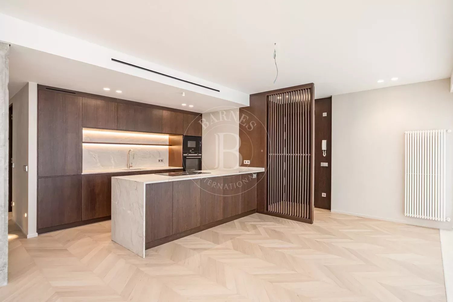 La vivienda destaca por sus altas calidades y un enfoque claro en sostenibilidad y eficiencia energética. Se han empleado materiales nobles y duraderos como madera de roble natural, piedra caliza y microcemento, junto con sistemas avanzados de aislamiento, climatización por conductos, control sectorizado y carpinterías de altas prestaciones. El resultado es un ático exclusivo, luminoso y atemporal, que combina diseño, confort y eficiencia en una de las localizaciones más exclusivas de Madrid.