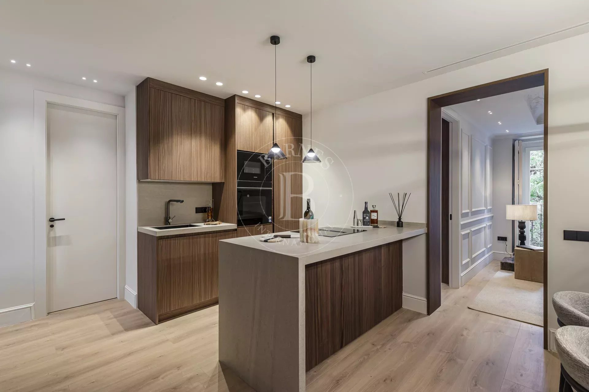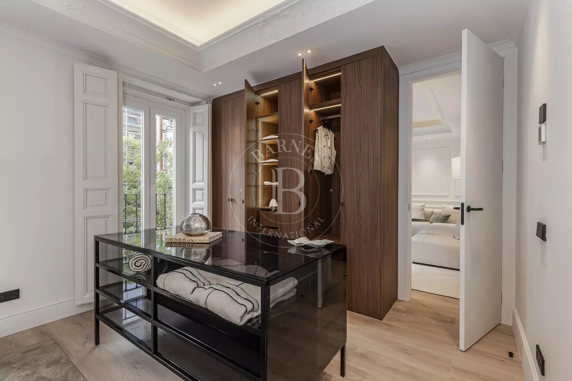 La zona de descanso se compone de tres dormitorios, todos con armarios empotrados, dos baños completos y un aseo de cortesía. Los suelos de madera natural y los acabados de calidad confieren al conjunto una atmósfera elegante y acogedora.