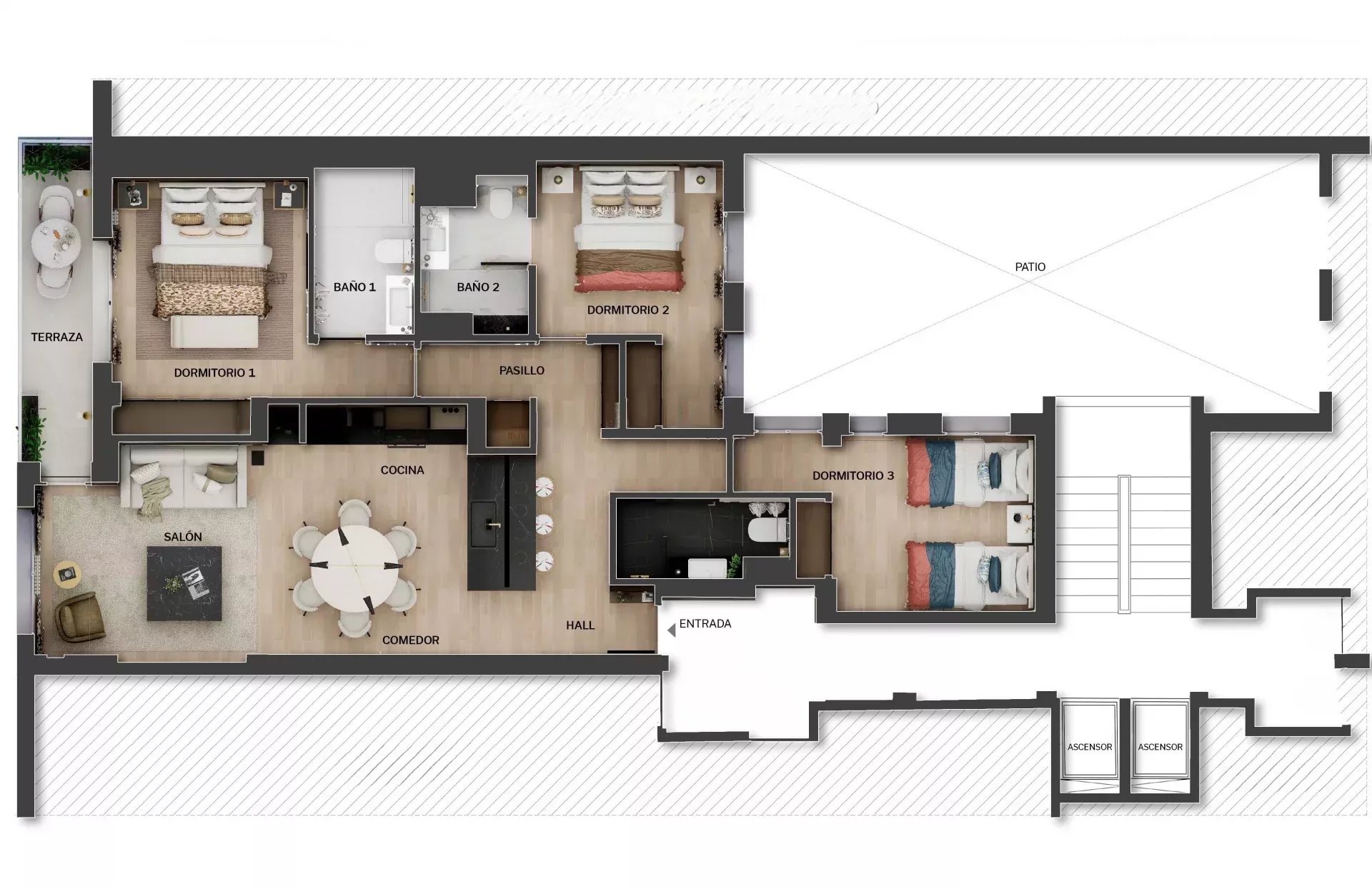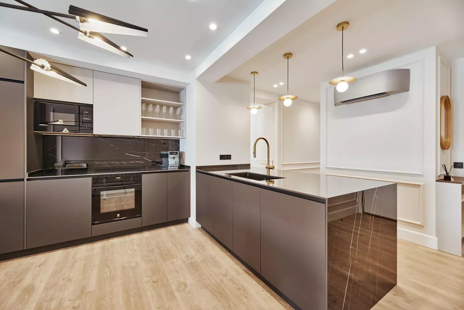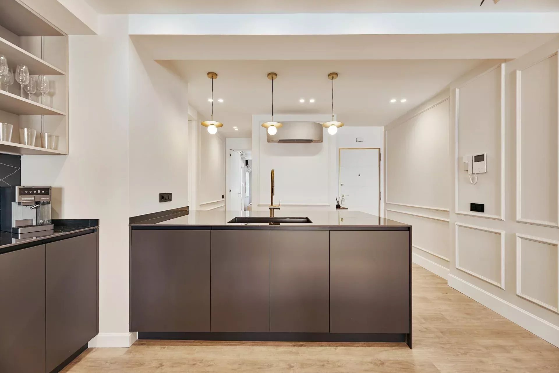 El piso se distribuye en tres amplios dormitorios y tres baños, una cocina totalmente equipada con electrodomésticos de alta gama y una cómoda zona de estar que conecta con un espacio exterior de seis metros cuadrados, ideal para disfrutar del aire libre sin renunciar a la privacidad. La reforma ha cuidado cada detalle, desde los materiales hasta la iluminación, creando un ambiente cálido, elegante y acogedor.
