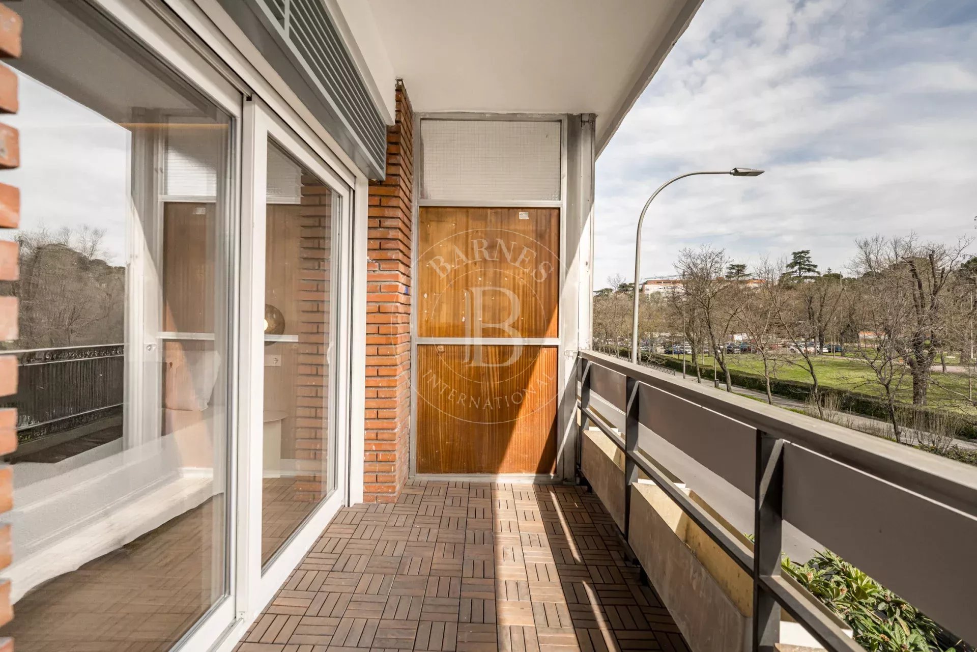 Ubicada en una segunda planta exterior, destaca por su luminosidad y vistas al Parque del Oeste, aportando un ambiente sereno y confortable en un entorno residencial. Su ubicación permite disfrutar de la tranquilidad del barrio sin renunciar a la proximidad a zonas verdes, transporte público, comercios, escuelas y todos los servicios necesarios para una vida cómoda en Madrid.